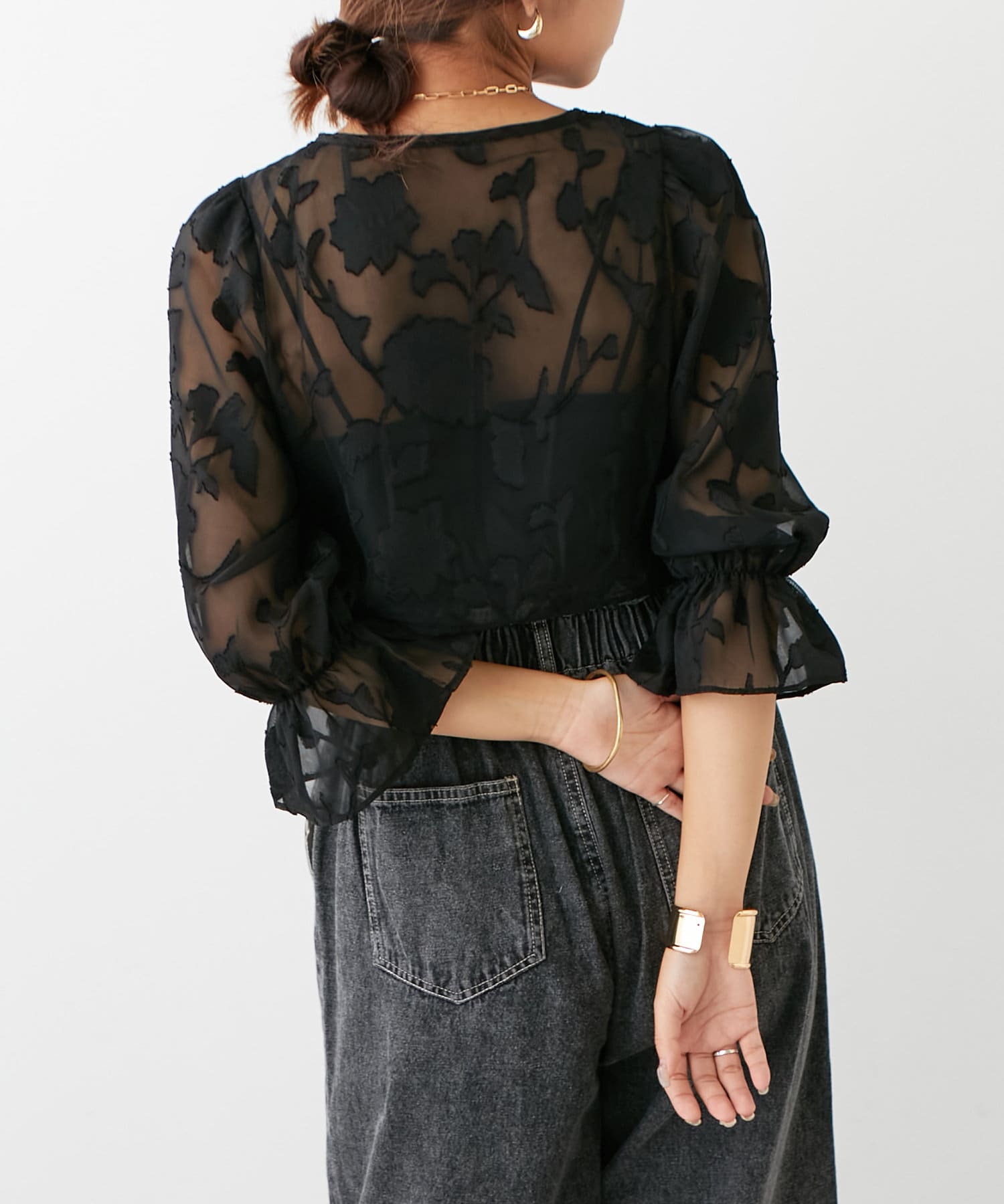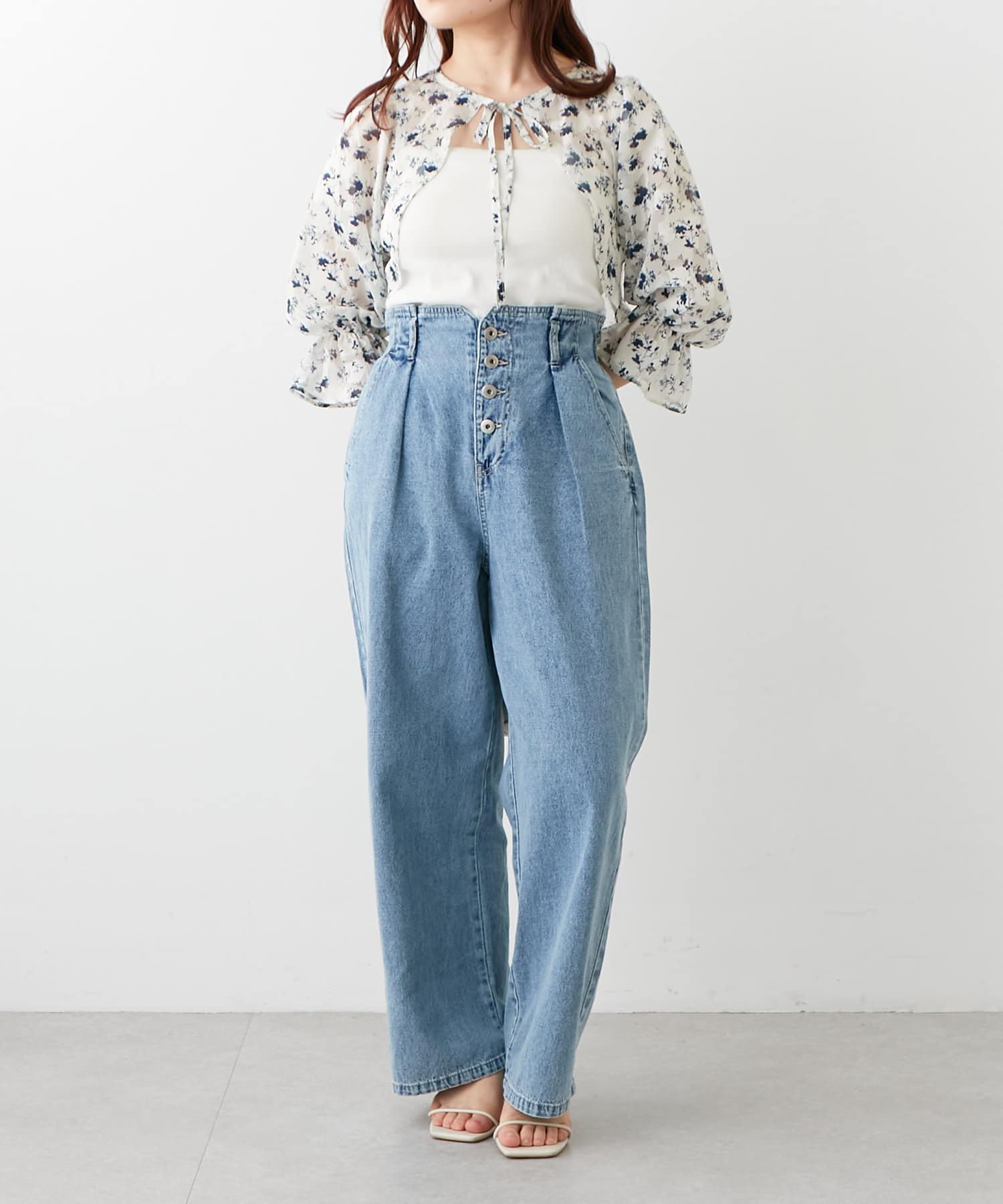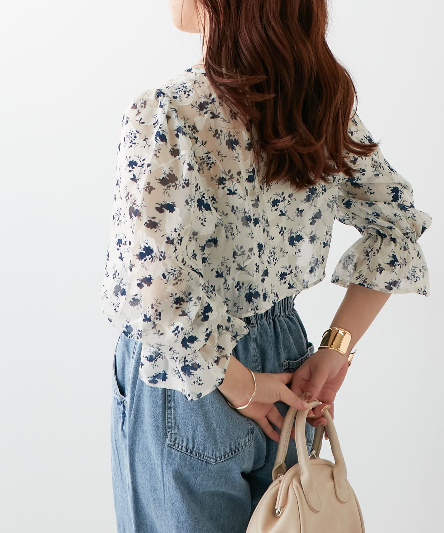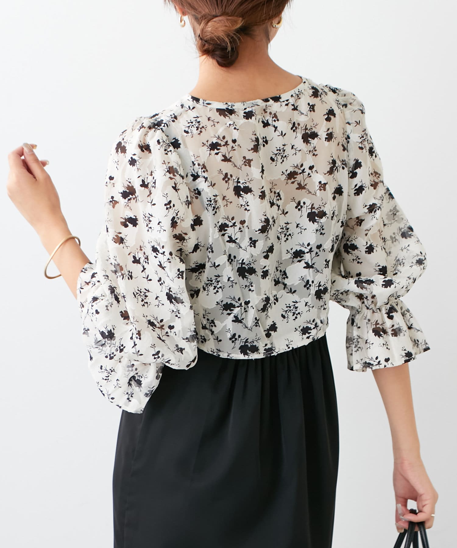 ・小花柄が上品な印象を与えるデザインで、キャミなどに合わせるのがオススメ