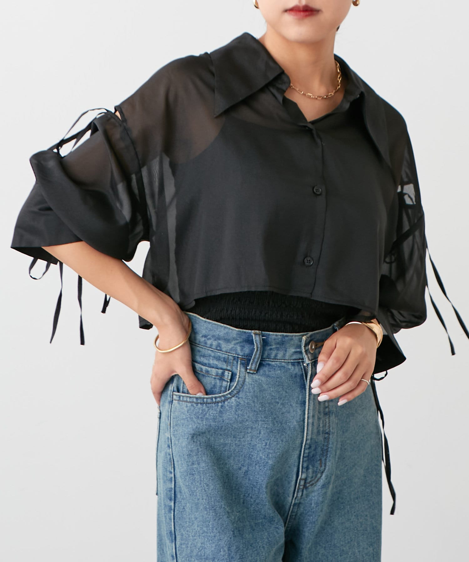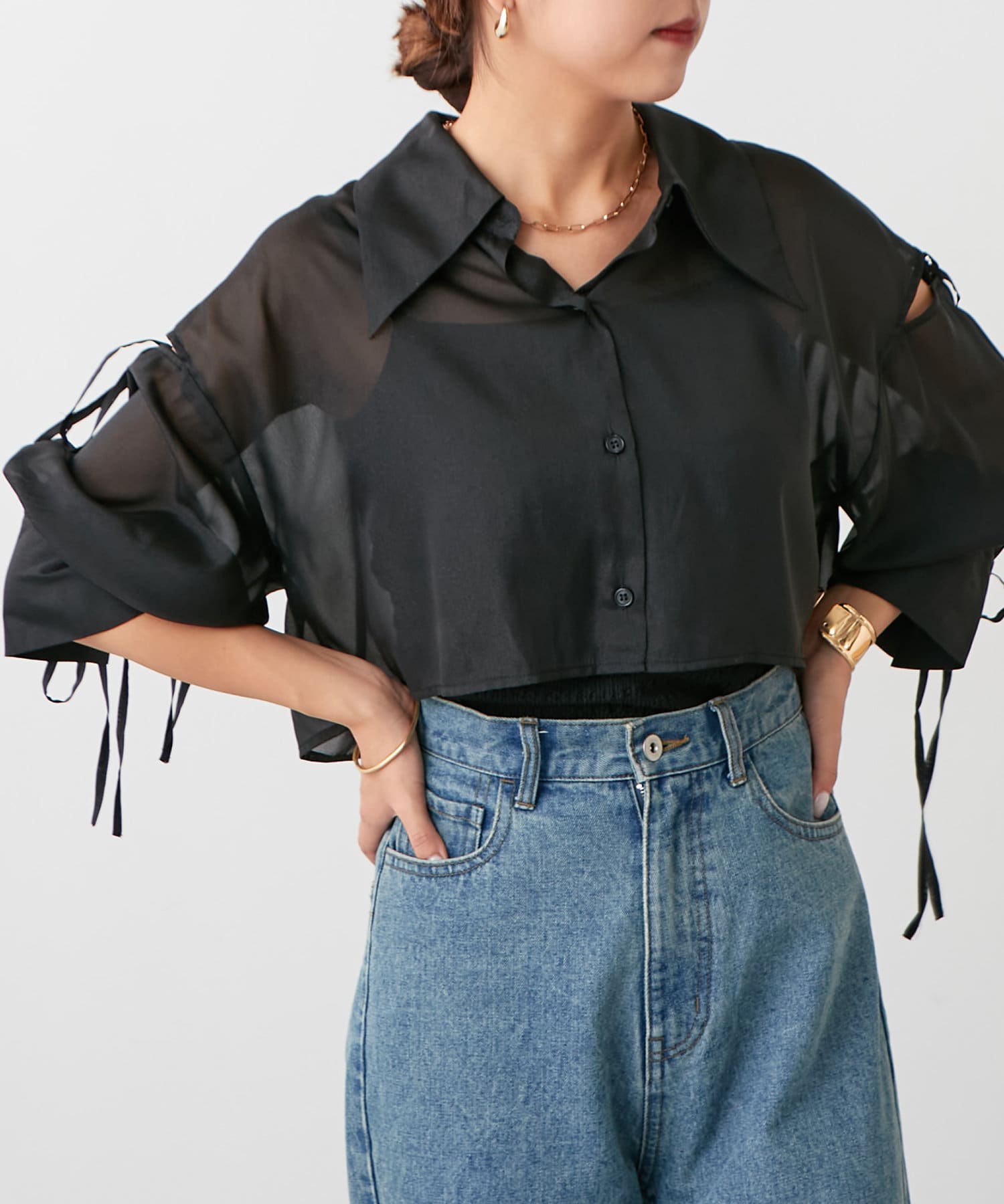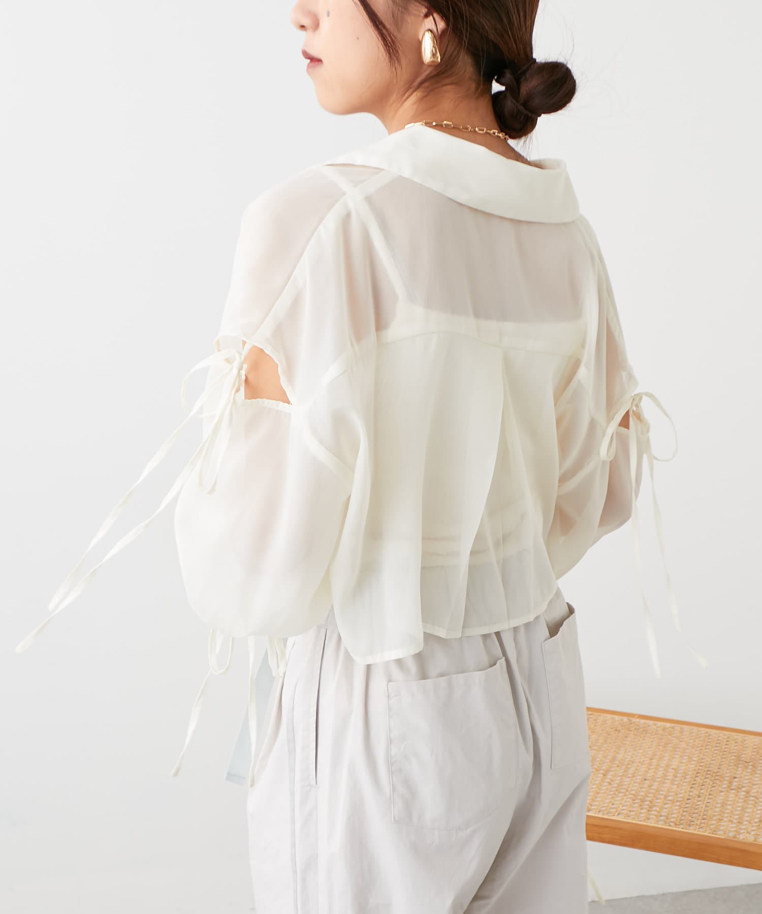 ・人気の袖リボンシャツにシアーバージョンが新登場♪