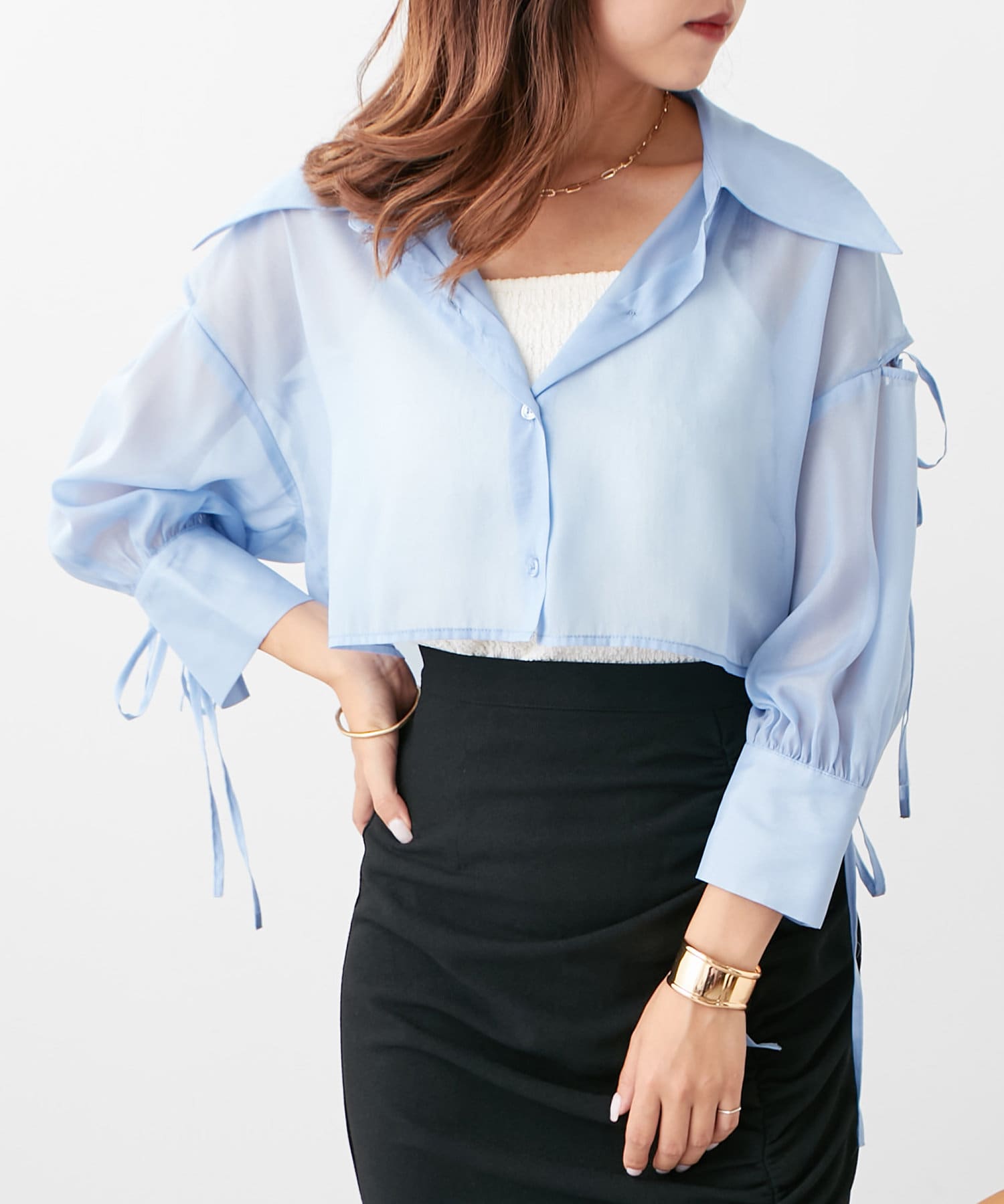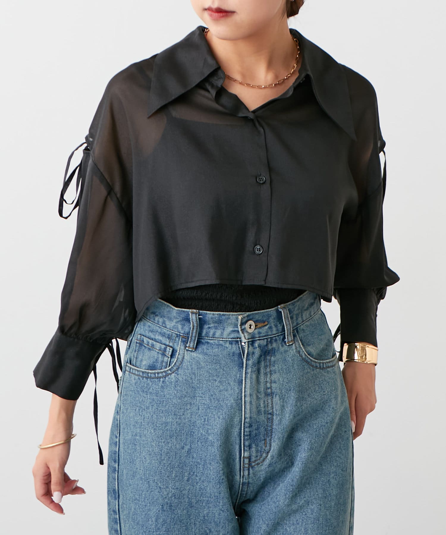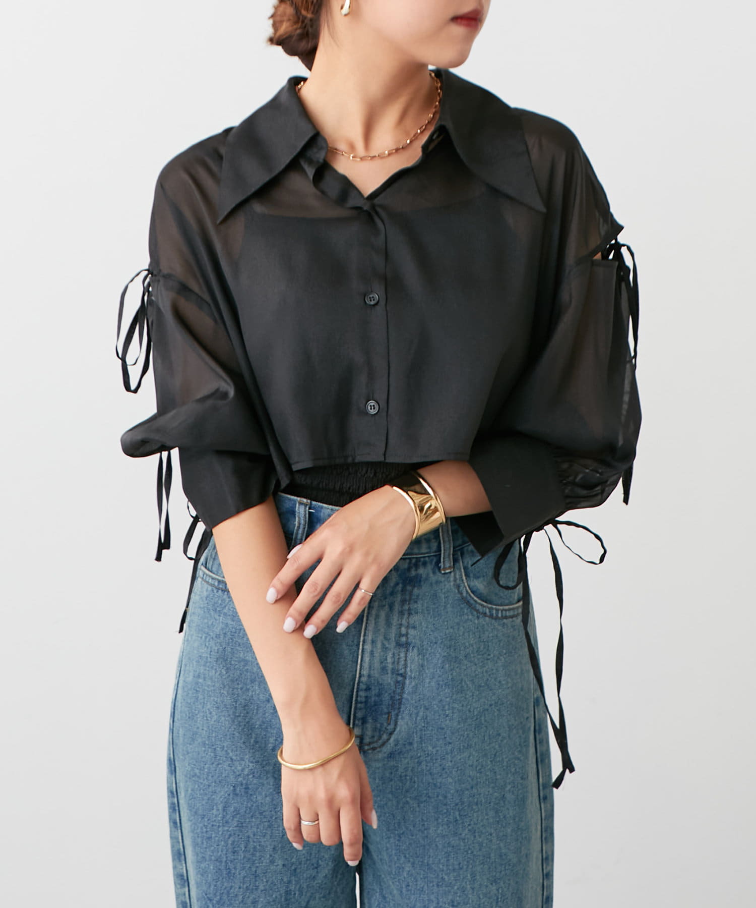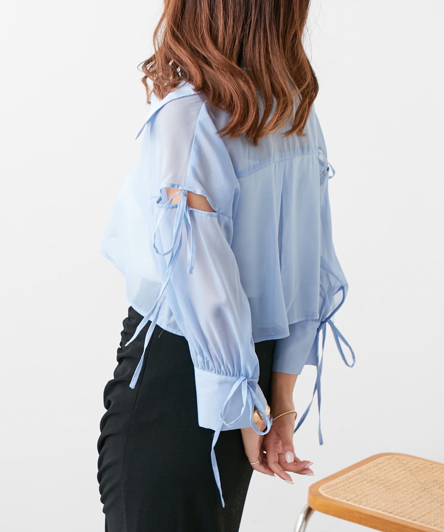・人気の袖リボンシャツにシアーバージョンが新登場♪