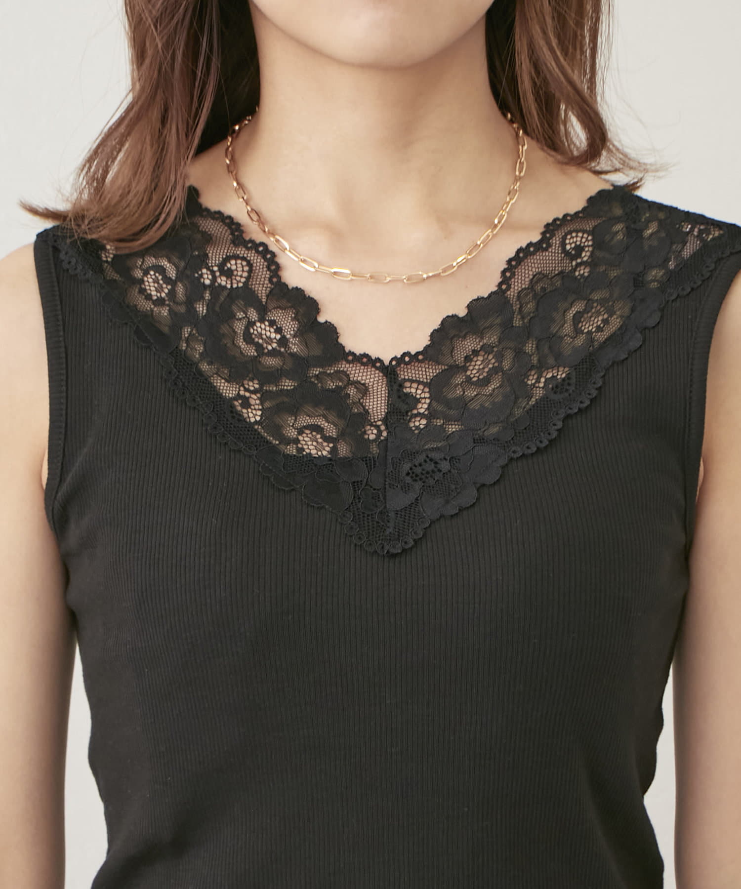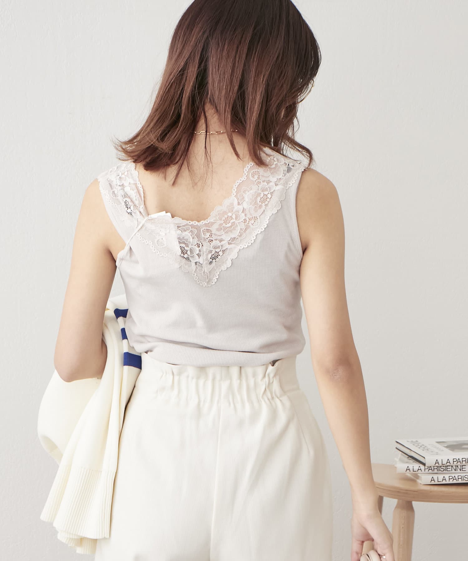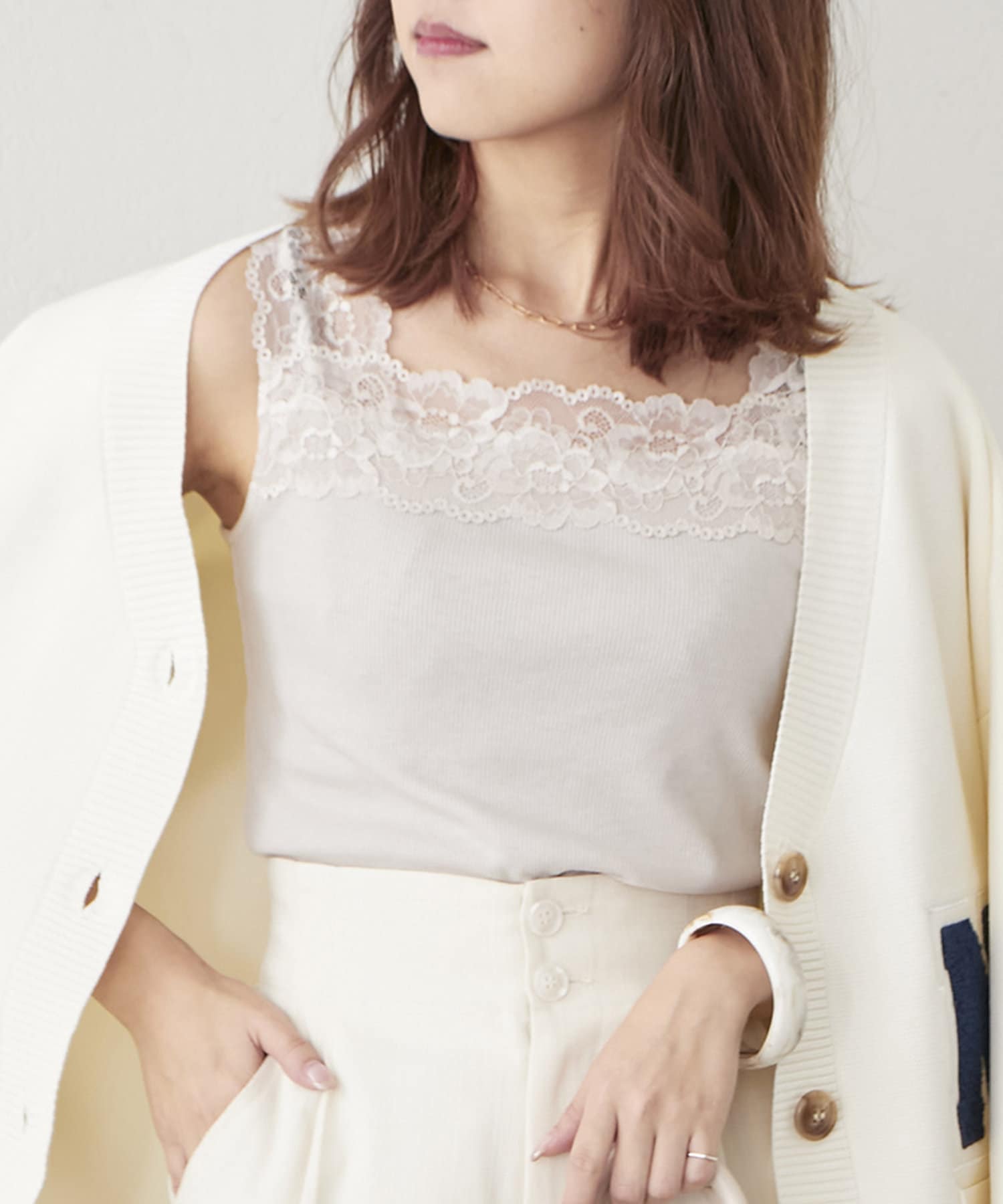 ・襟ぐりのあいたトップスなどのインナーとして最適なレースキャミ