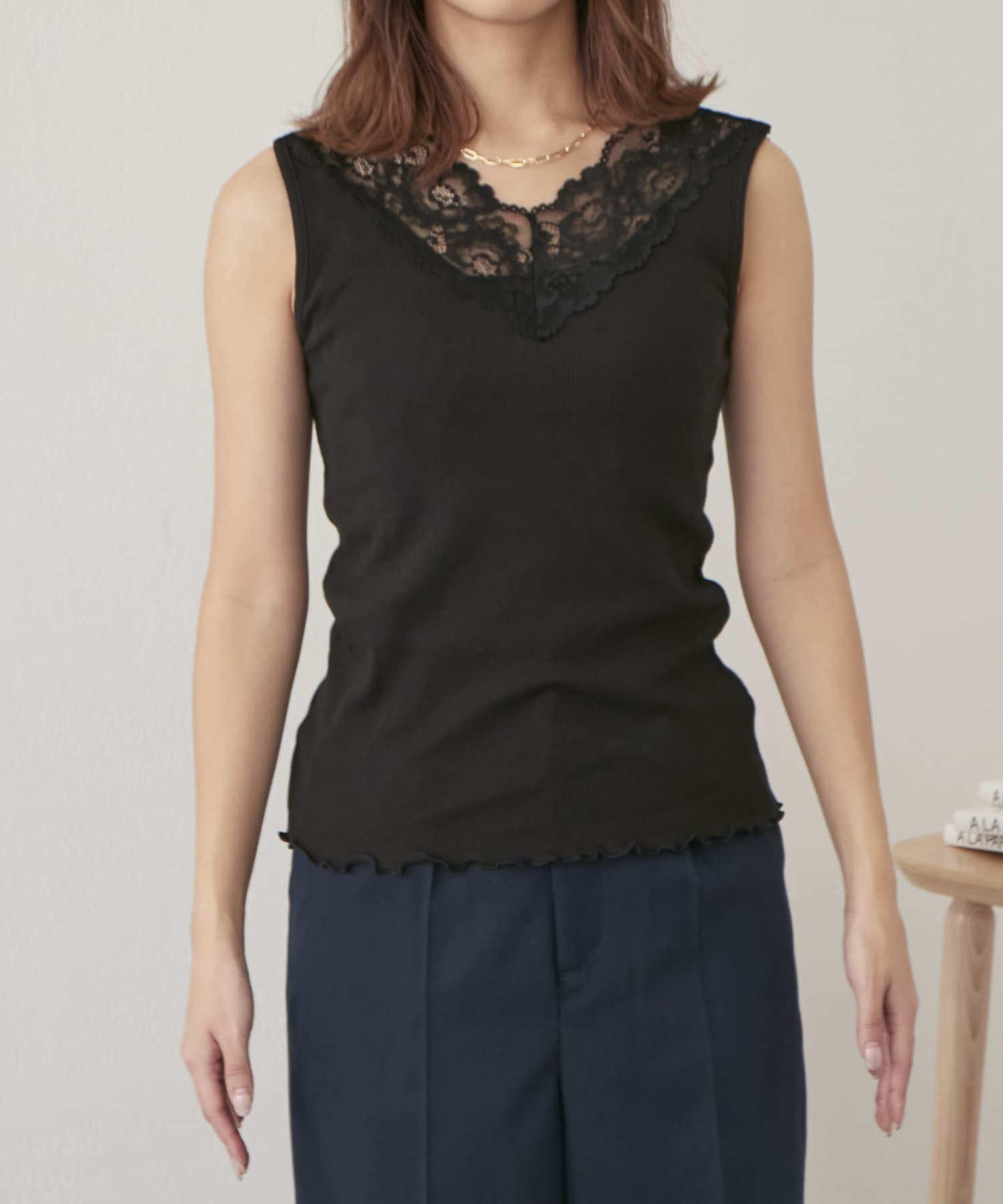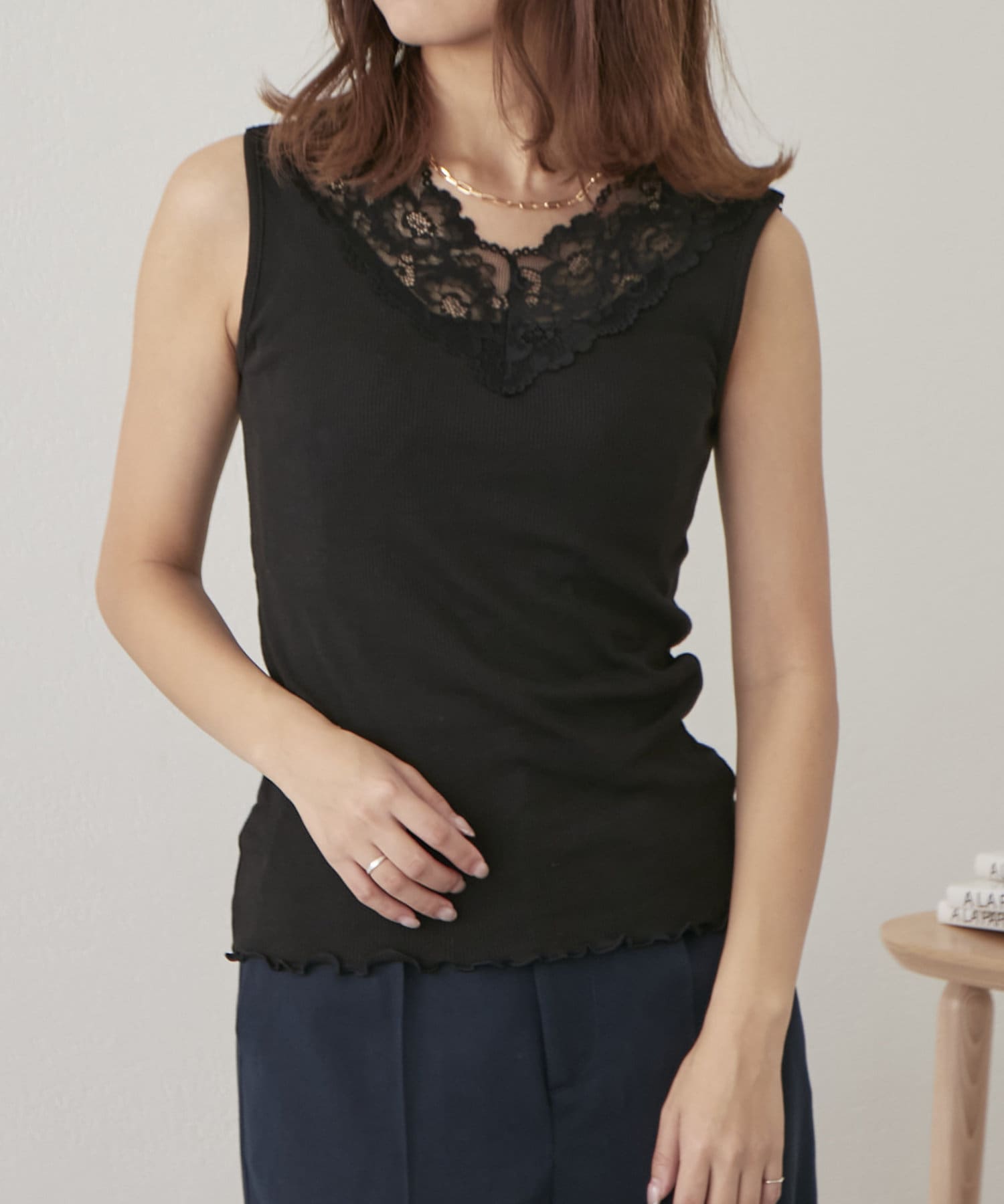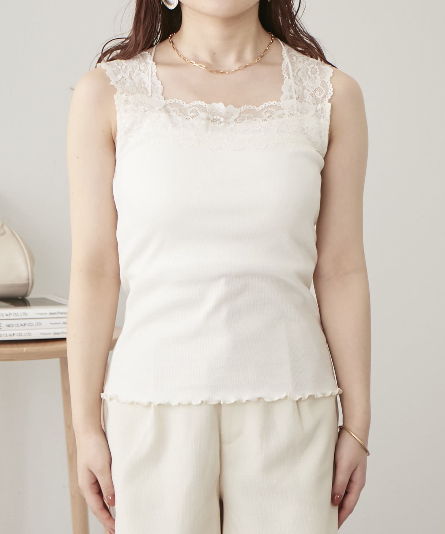 ・襟ぐりのあいたトップスなどのインナーとして最適なレースキャミ