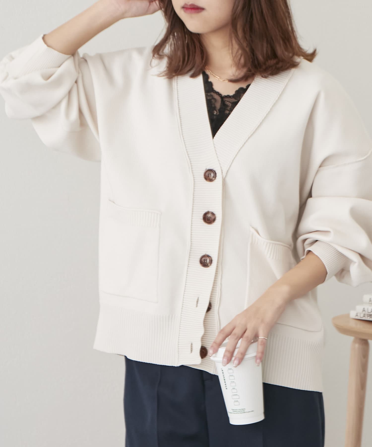 ・肌寒い時にはカーディガンや薄めのアウターを羽織るスタイルが〇