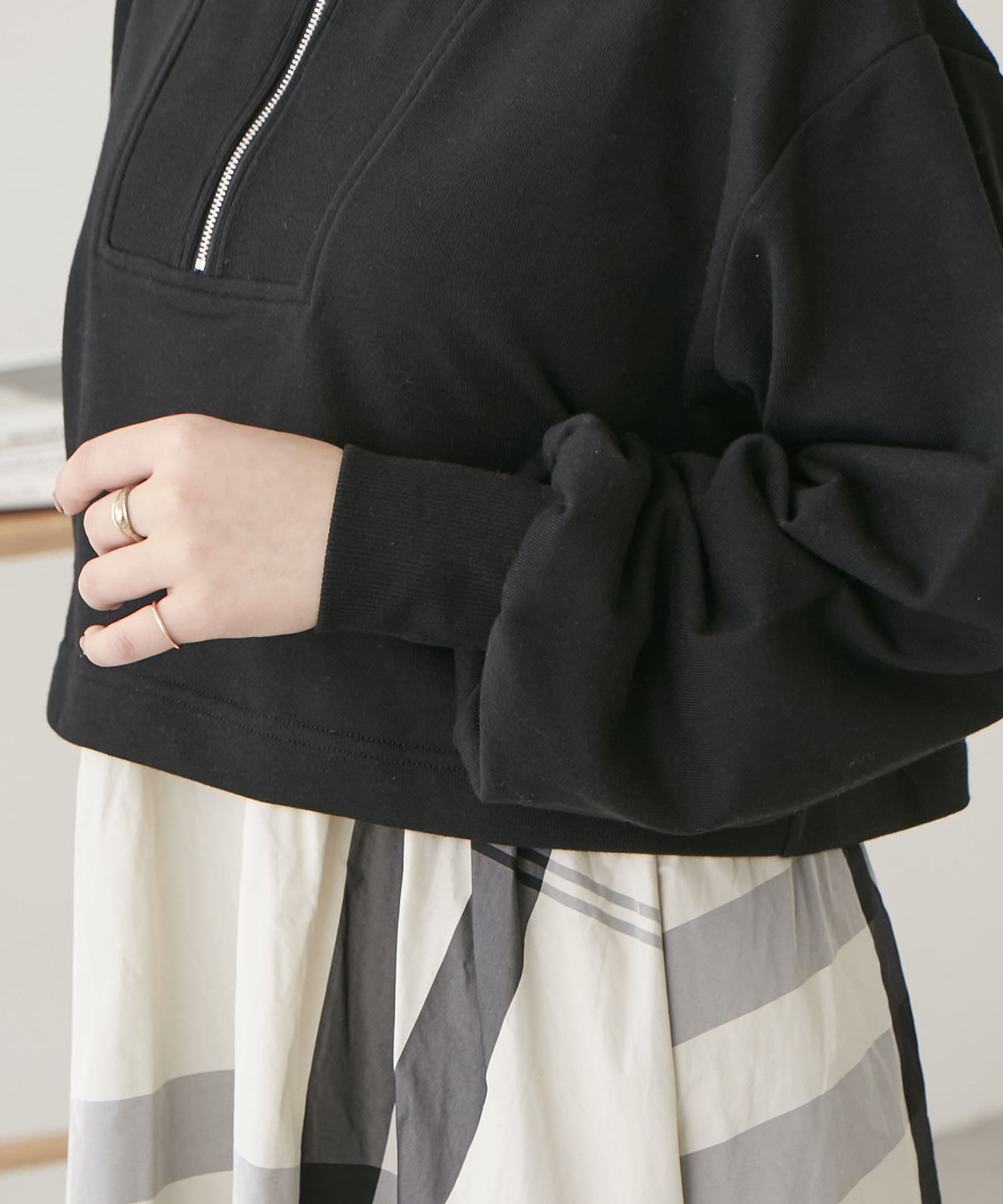 ・ハーフジップは、メンズライクになりすぎないショート丈でお作りしています
