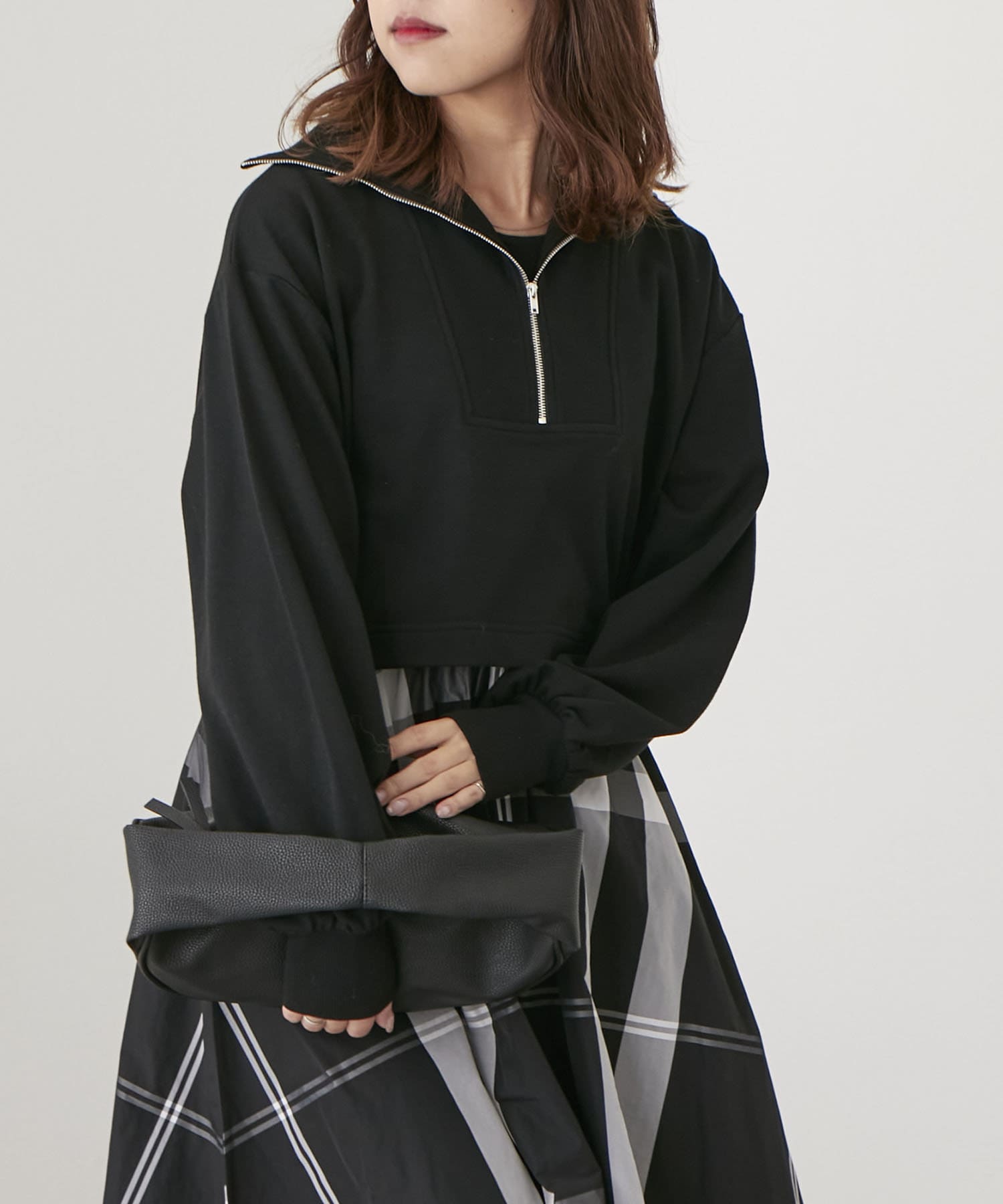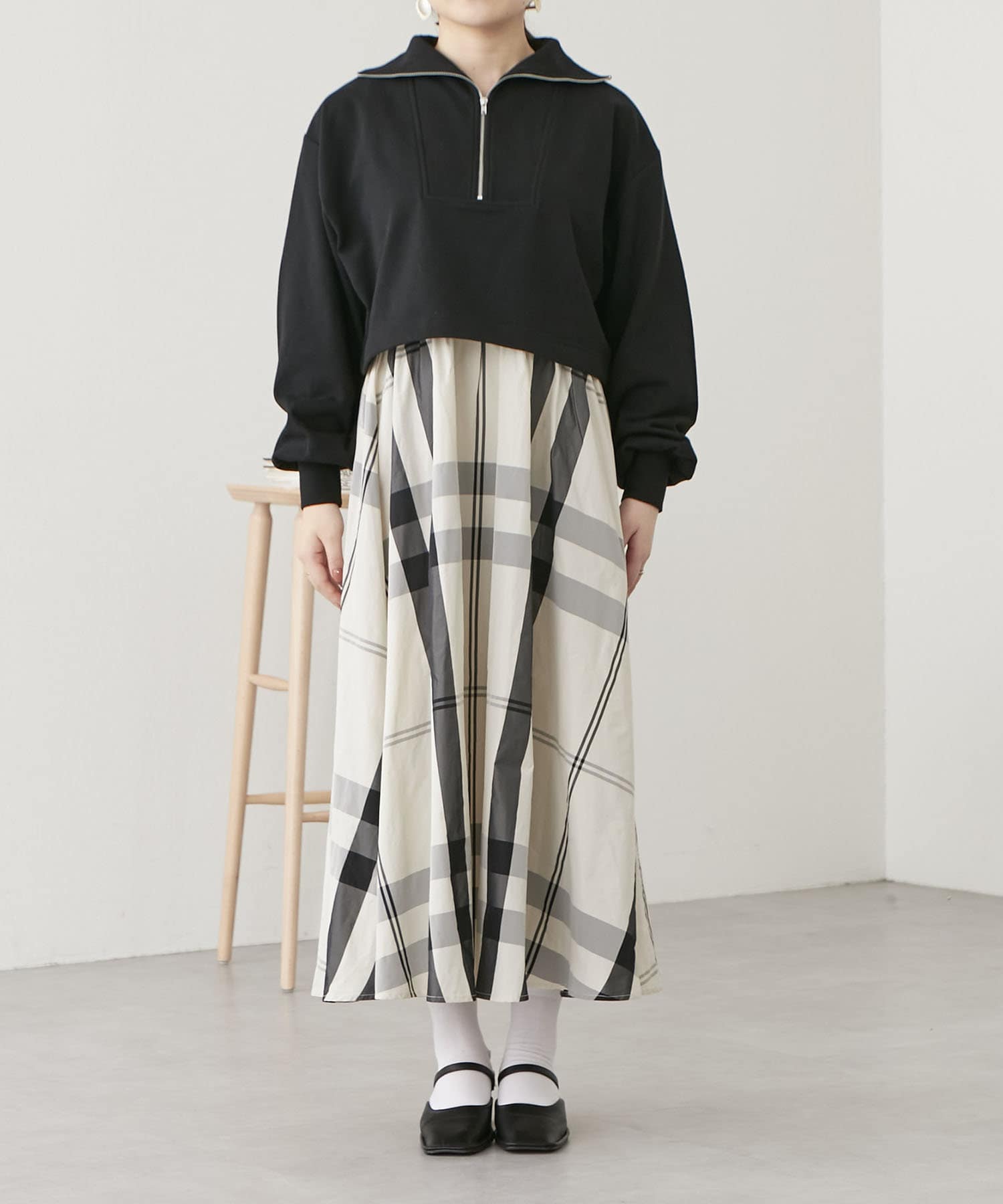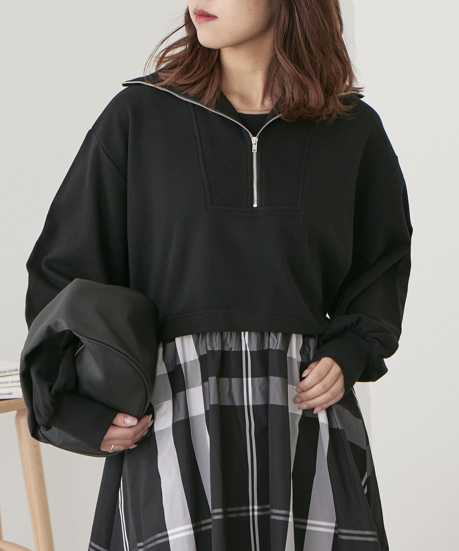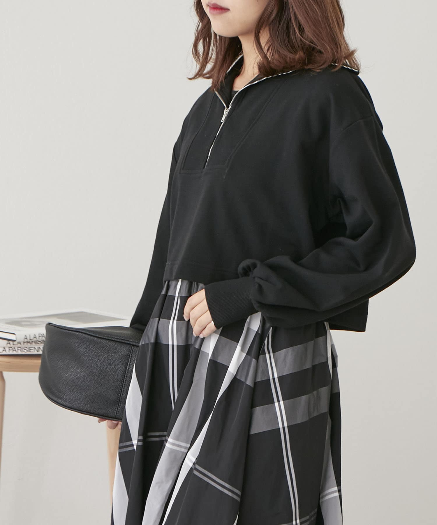 【2023SS】【2枚SET】ハーフZIPプルオーバー+チェックワンピ―ス