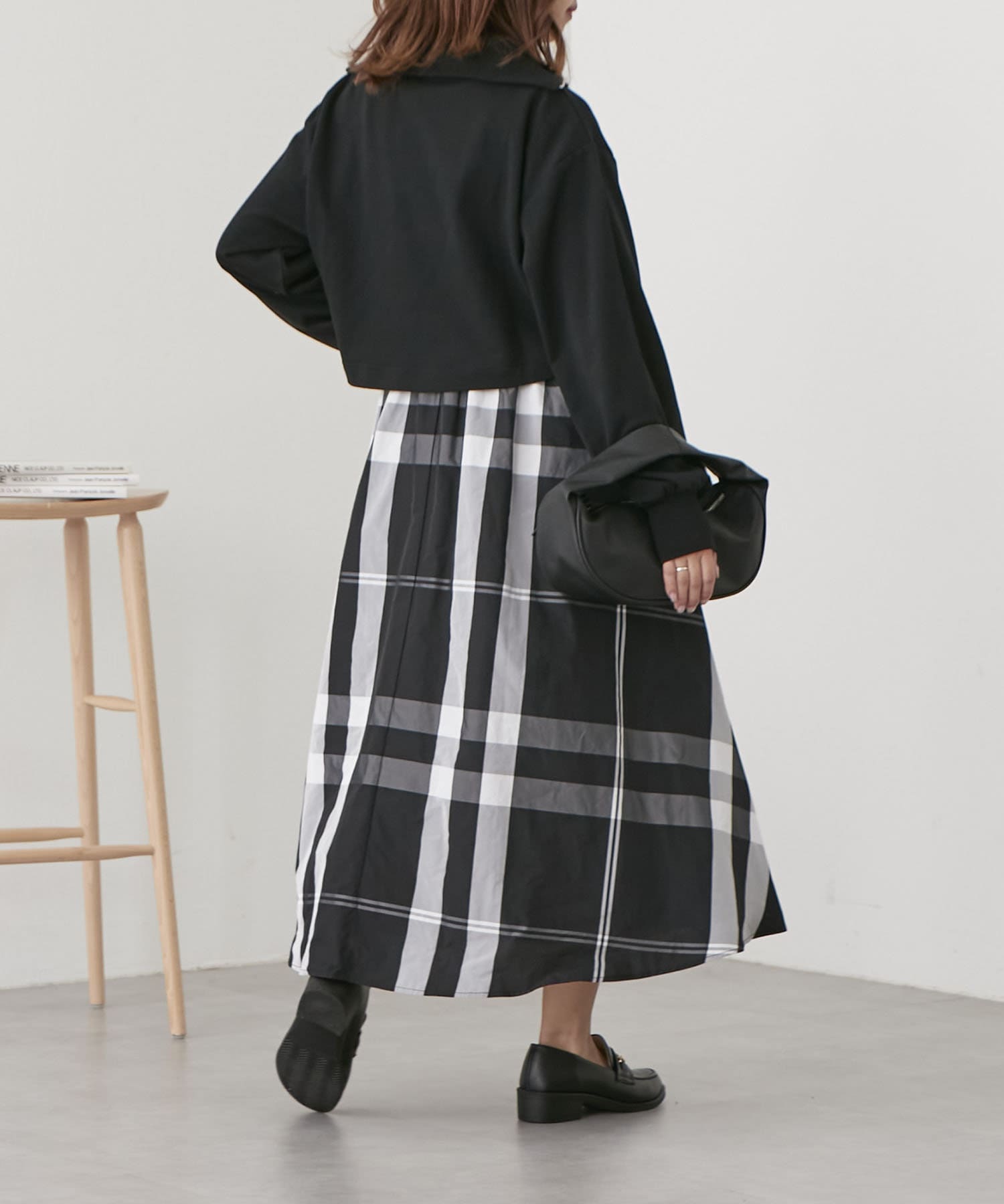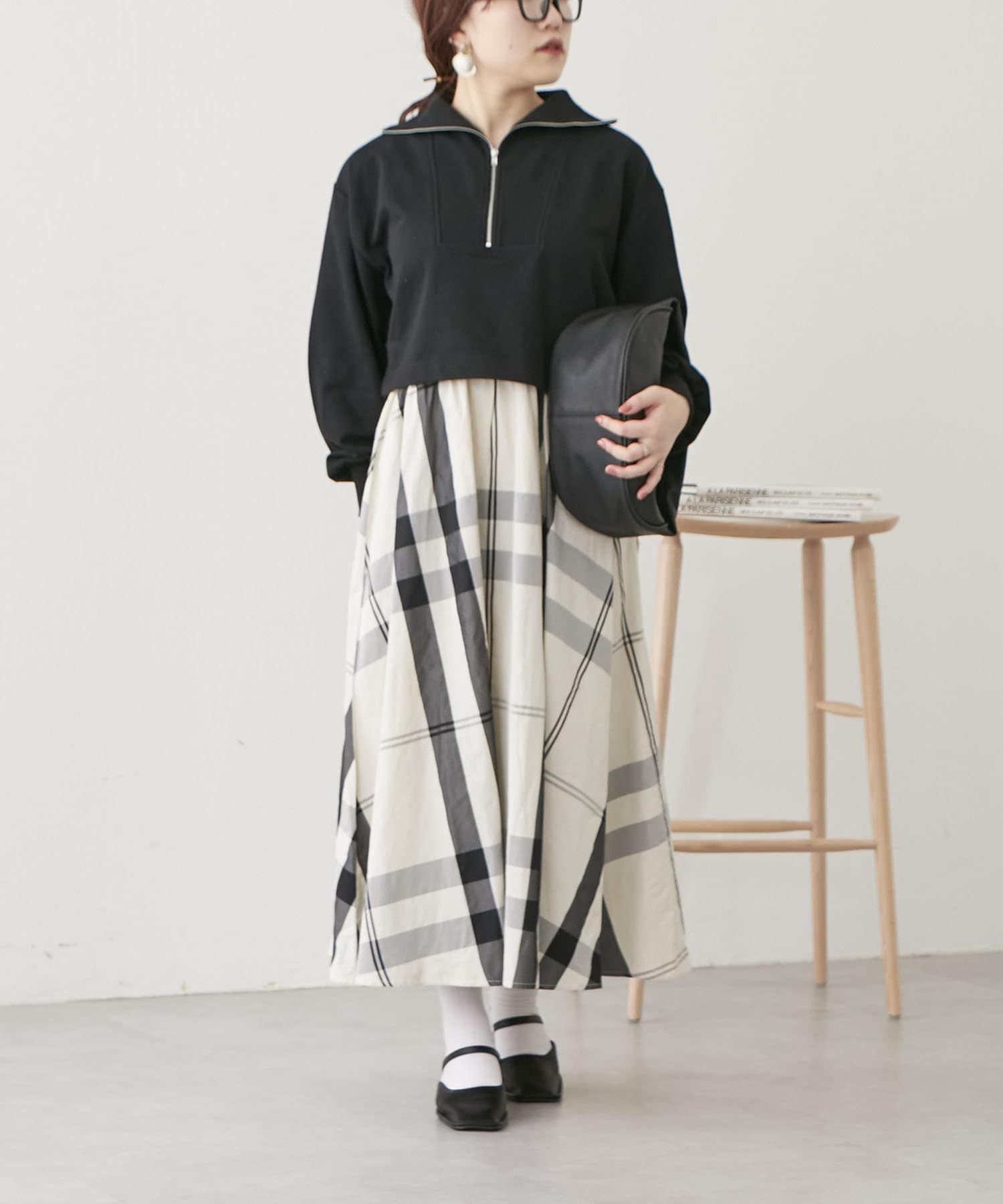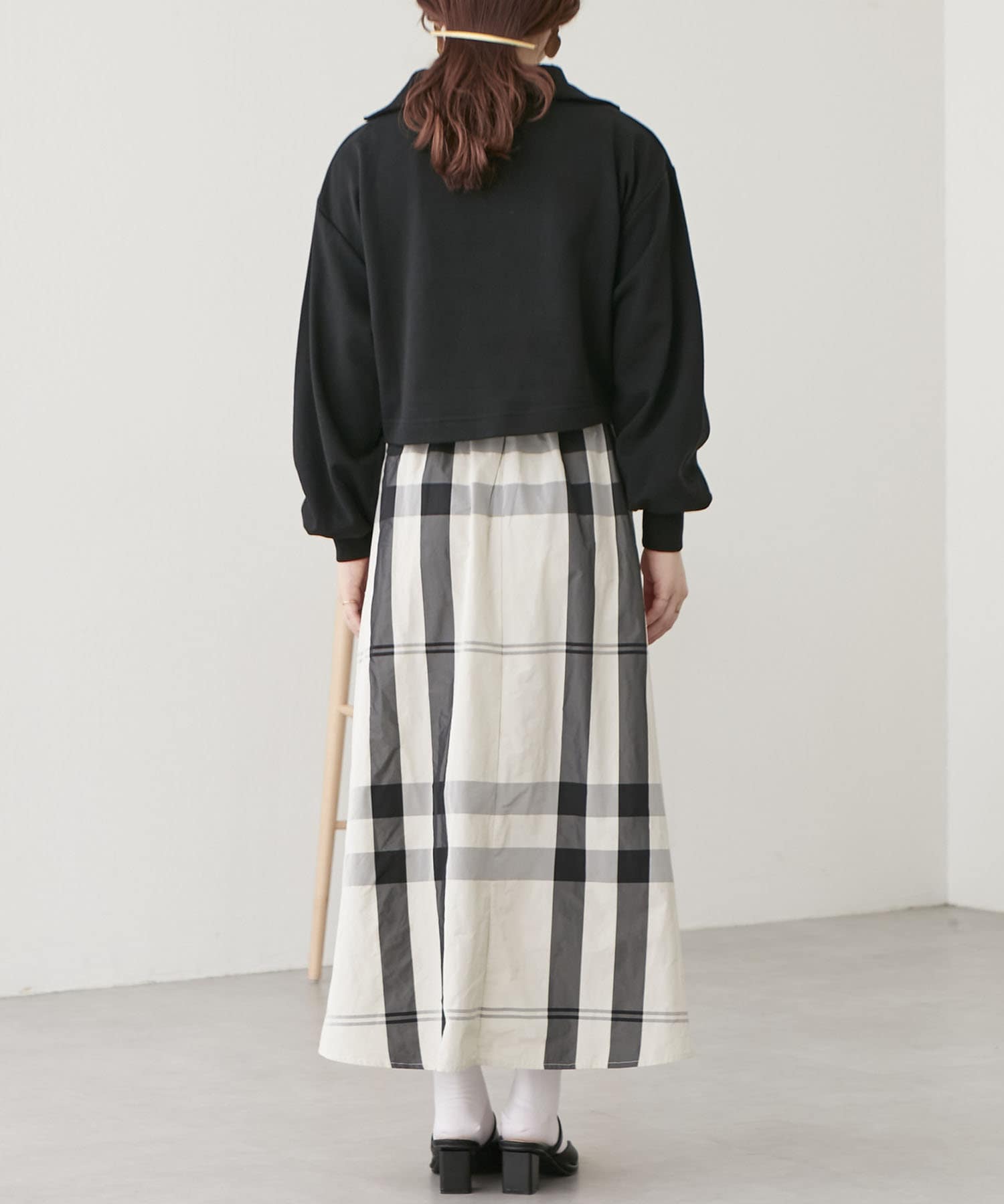 【2023SS】【2枚SET】ハーフZIPプルオーバー+チェックワンピ―ス