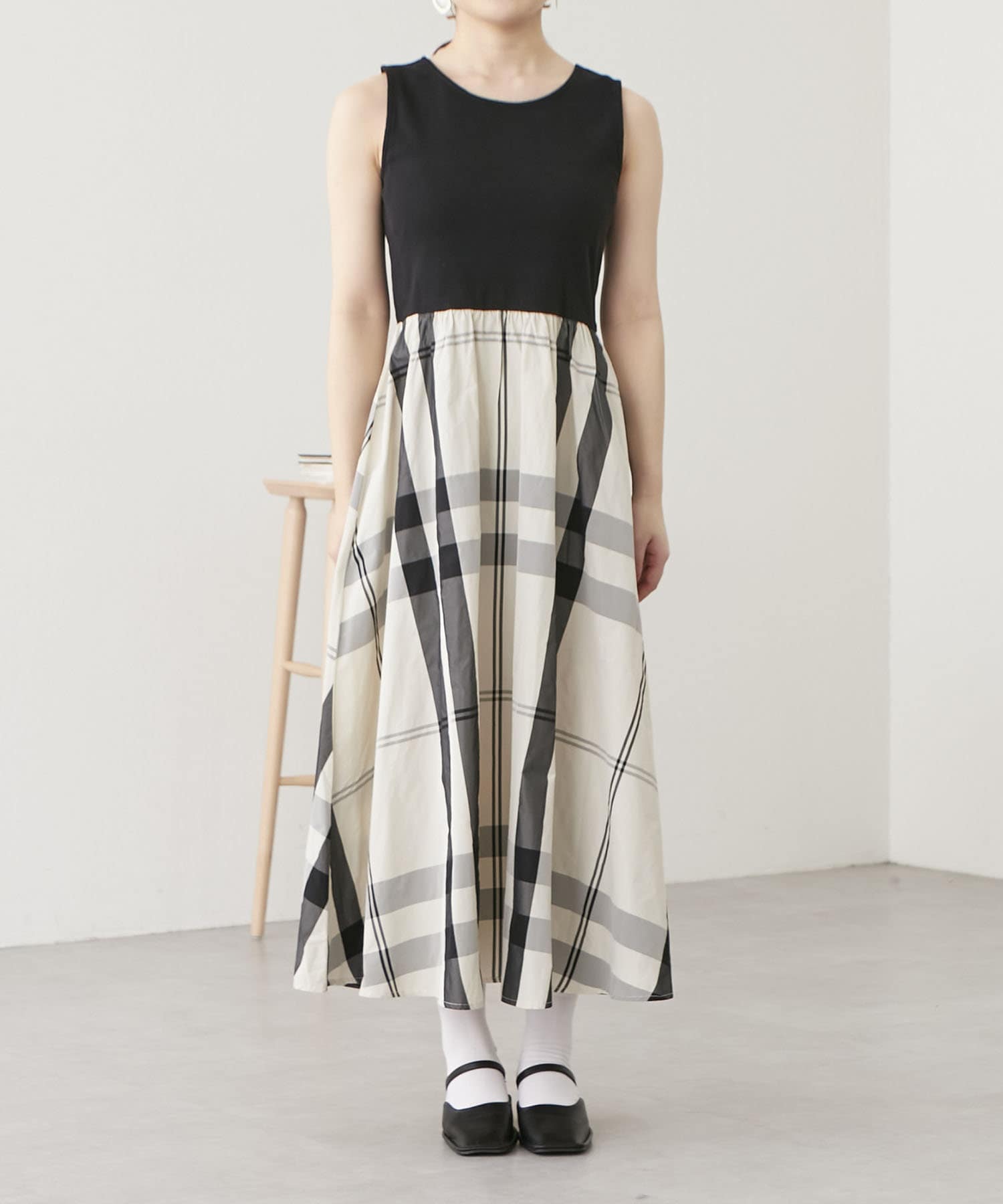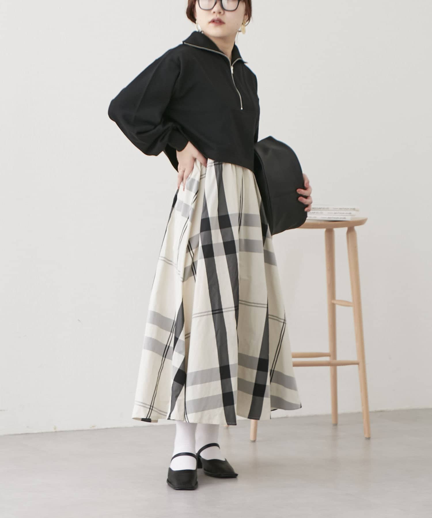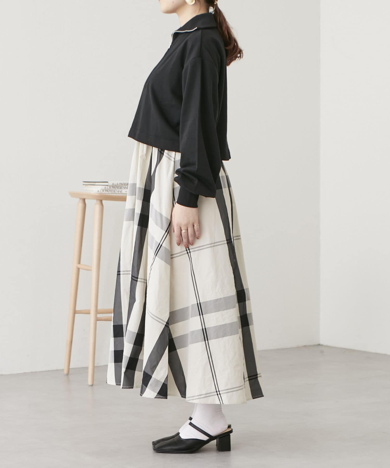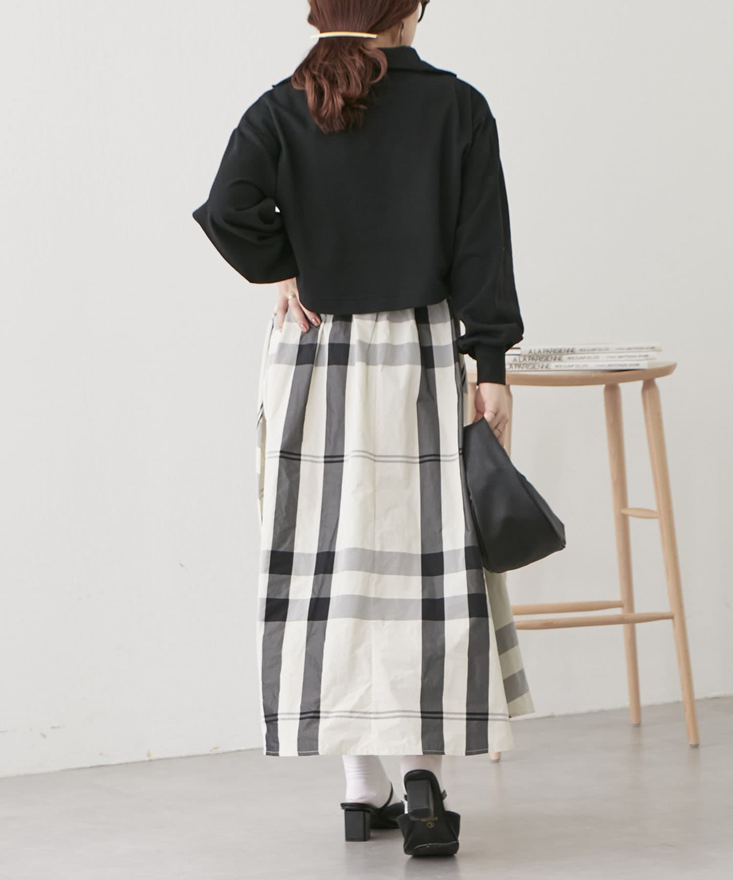 【2023SS】【2枚SET】ハーフZIPプルオーバー+チェックワンピ―ス