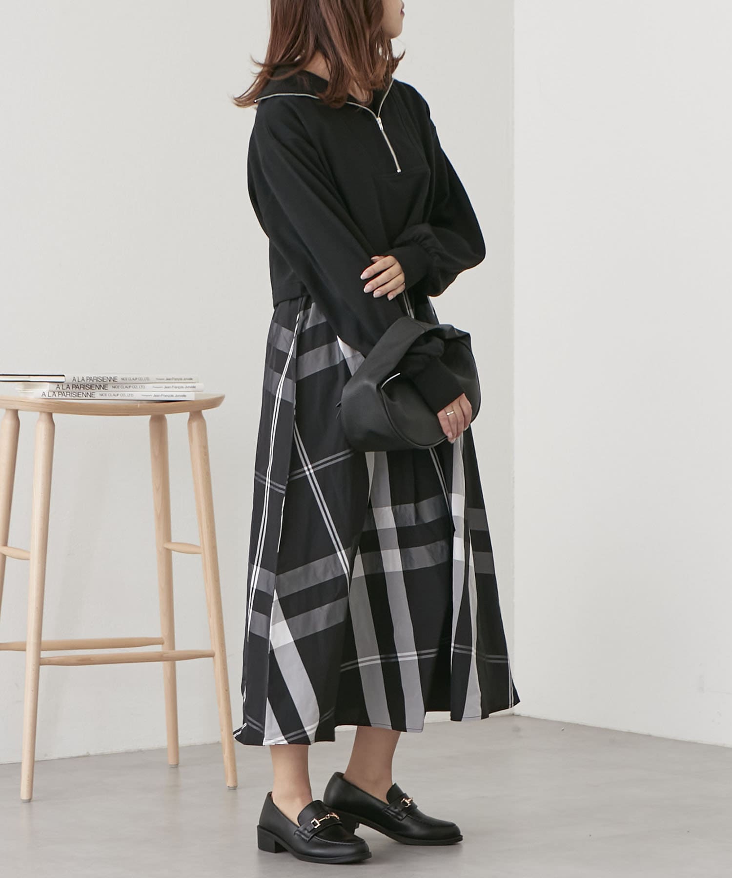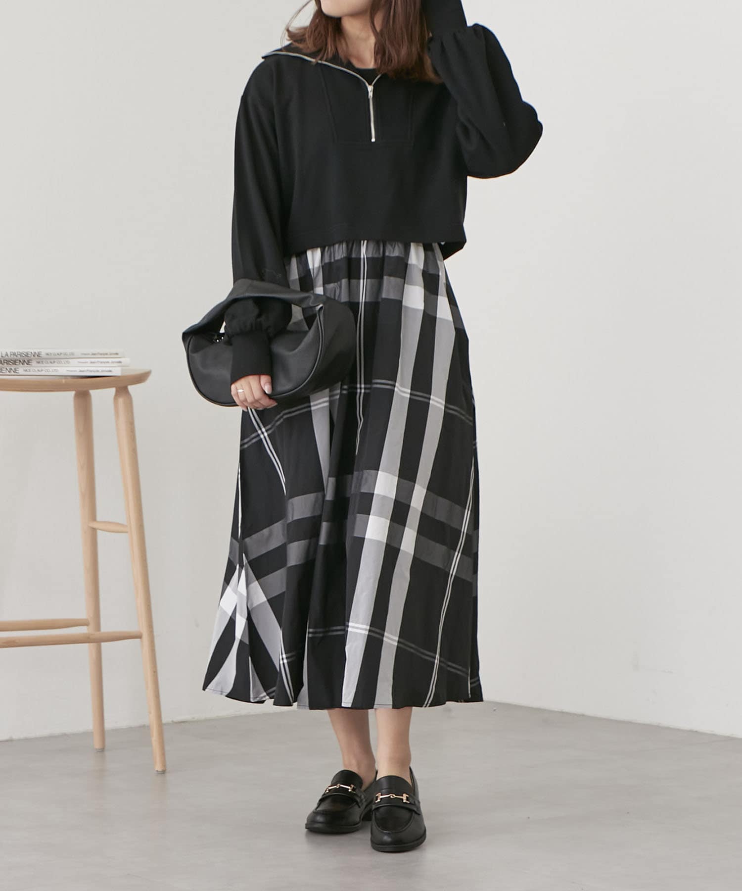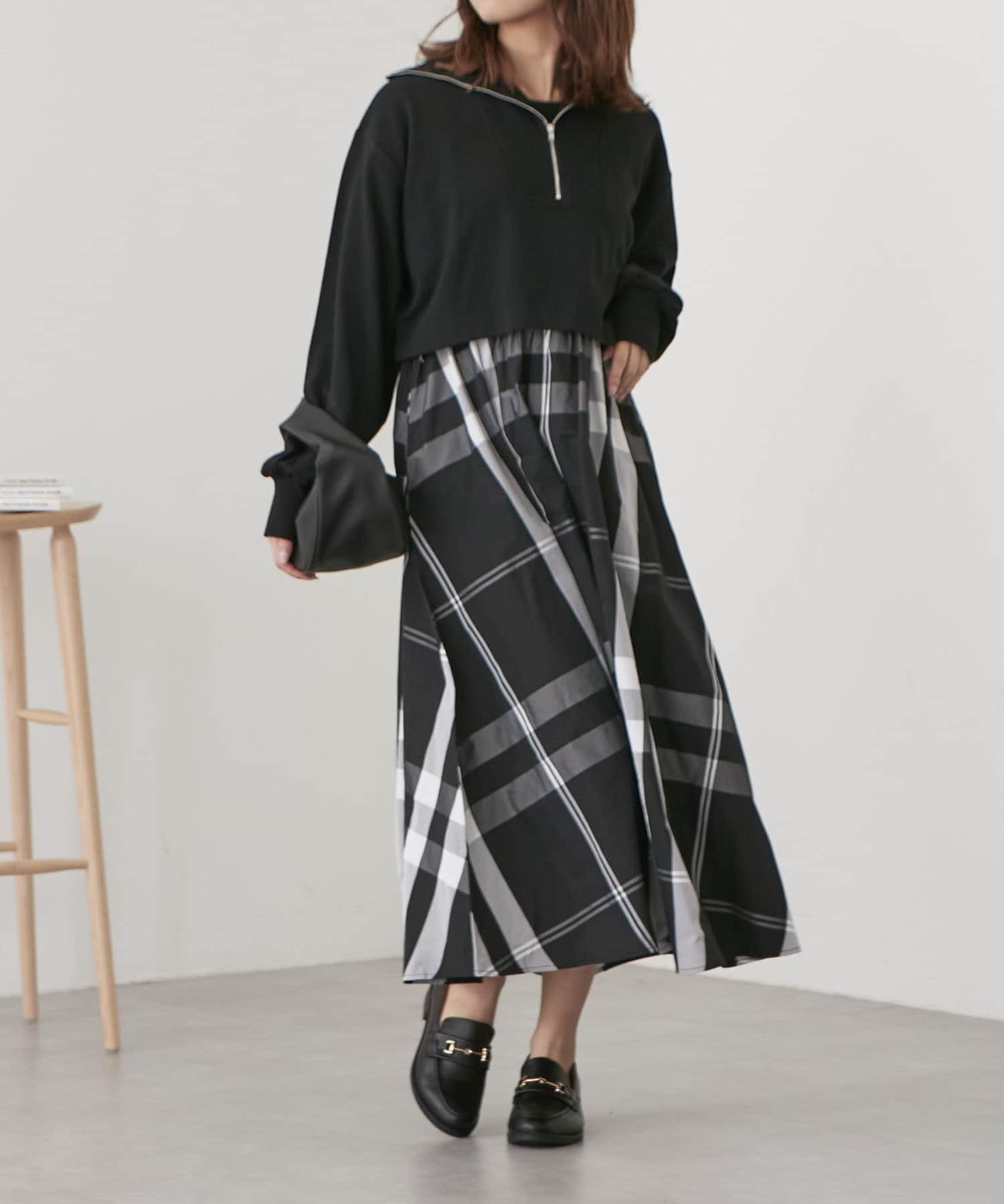 ・大人気ハーフジップとチェックワンピースが2枚セットに
