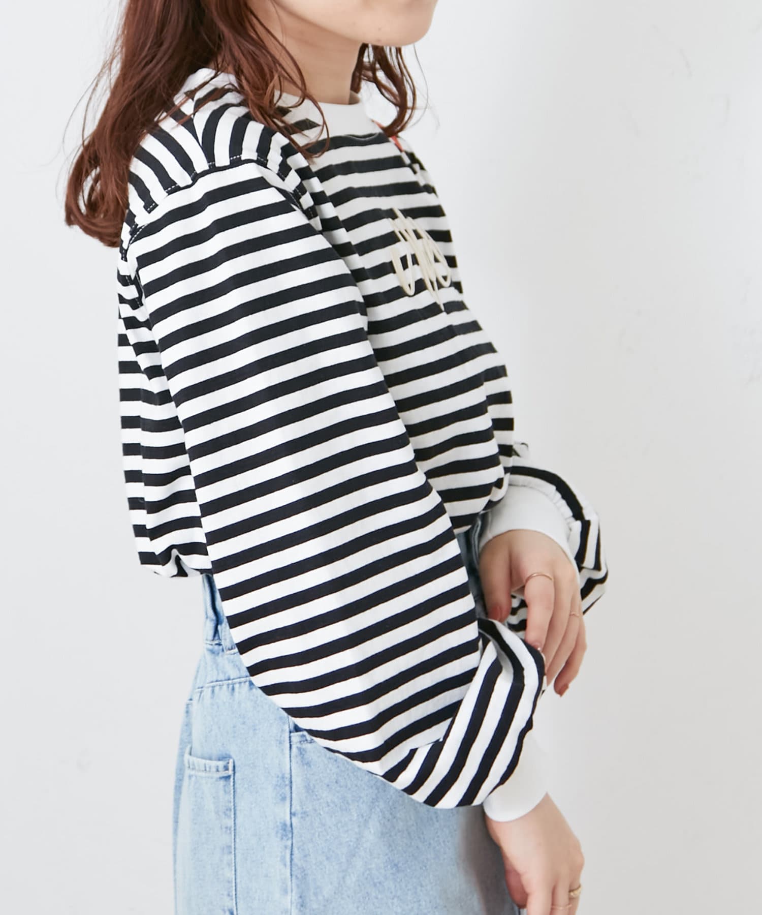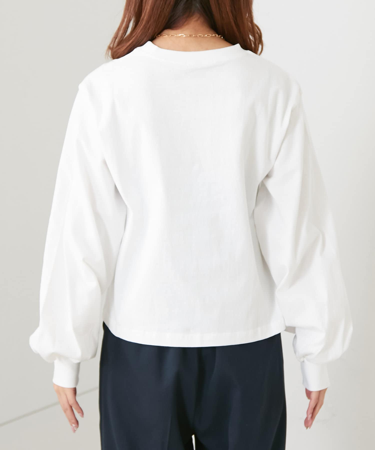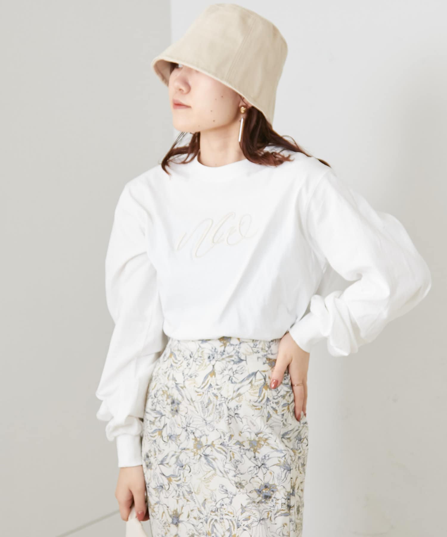 刺繍ロゴ袖ボリュームロンT