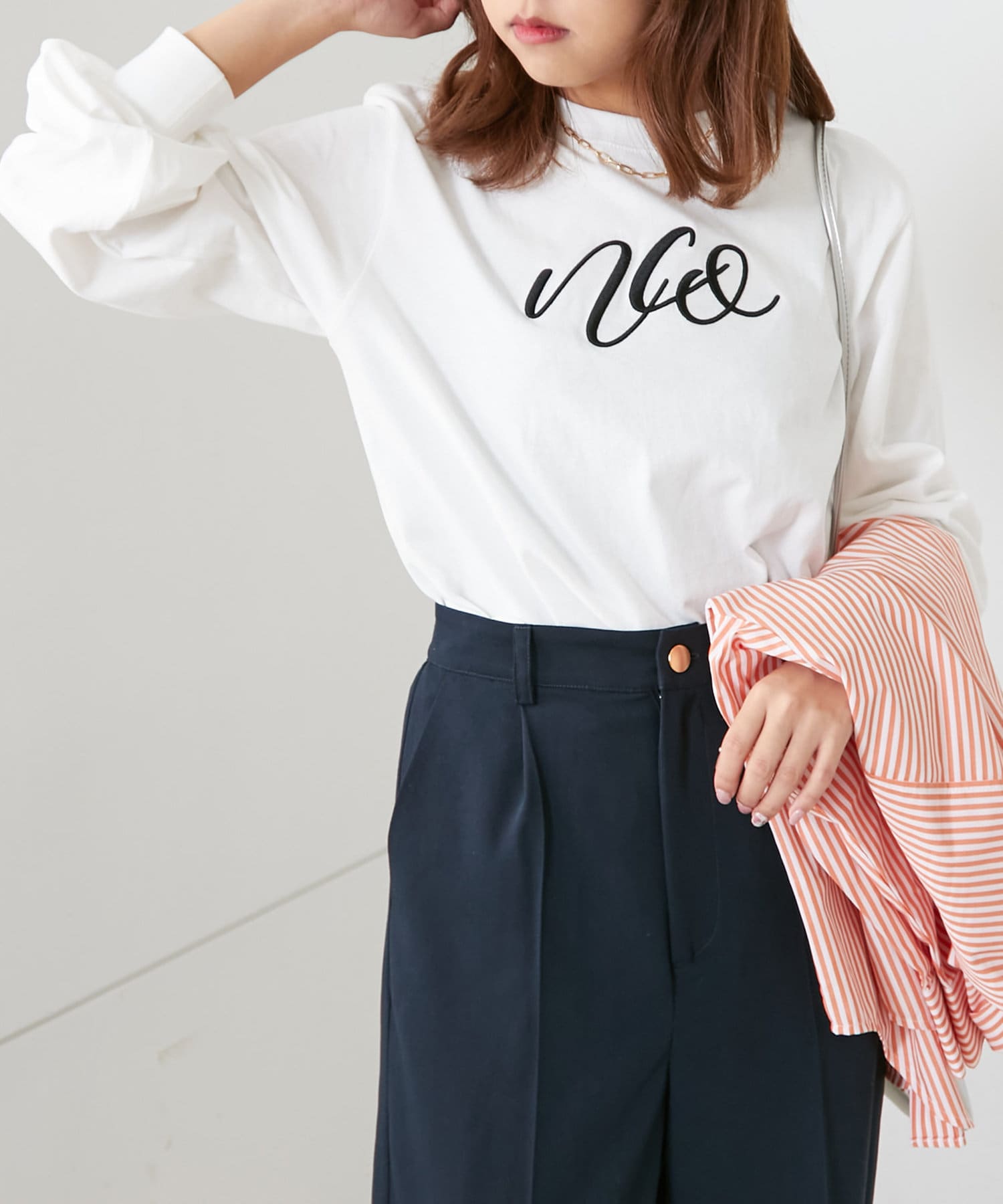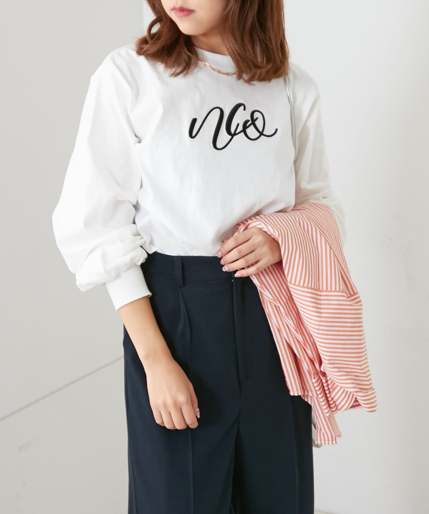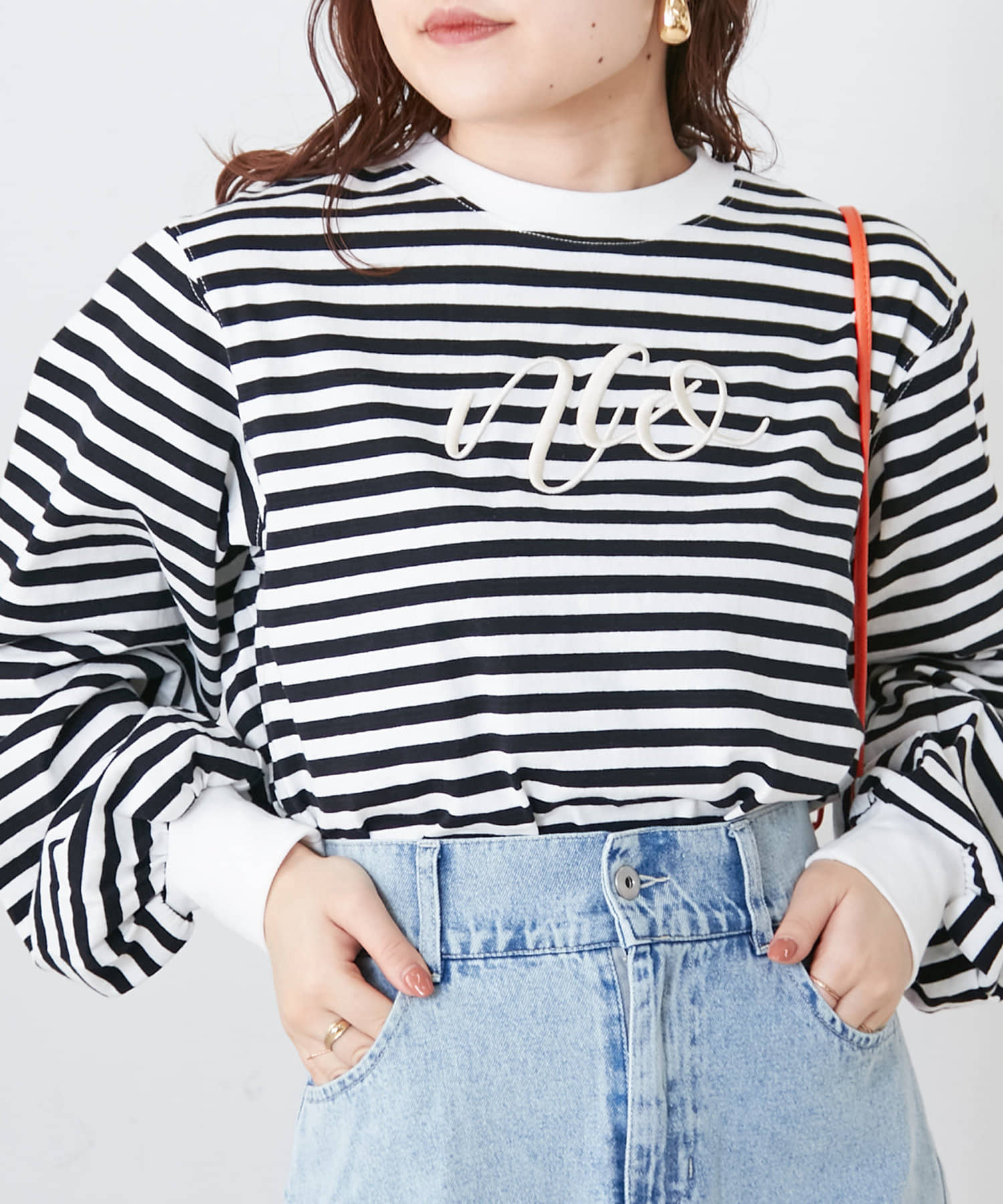 刺繍ロゴ袖ボリュームロンT