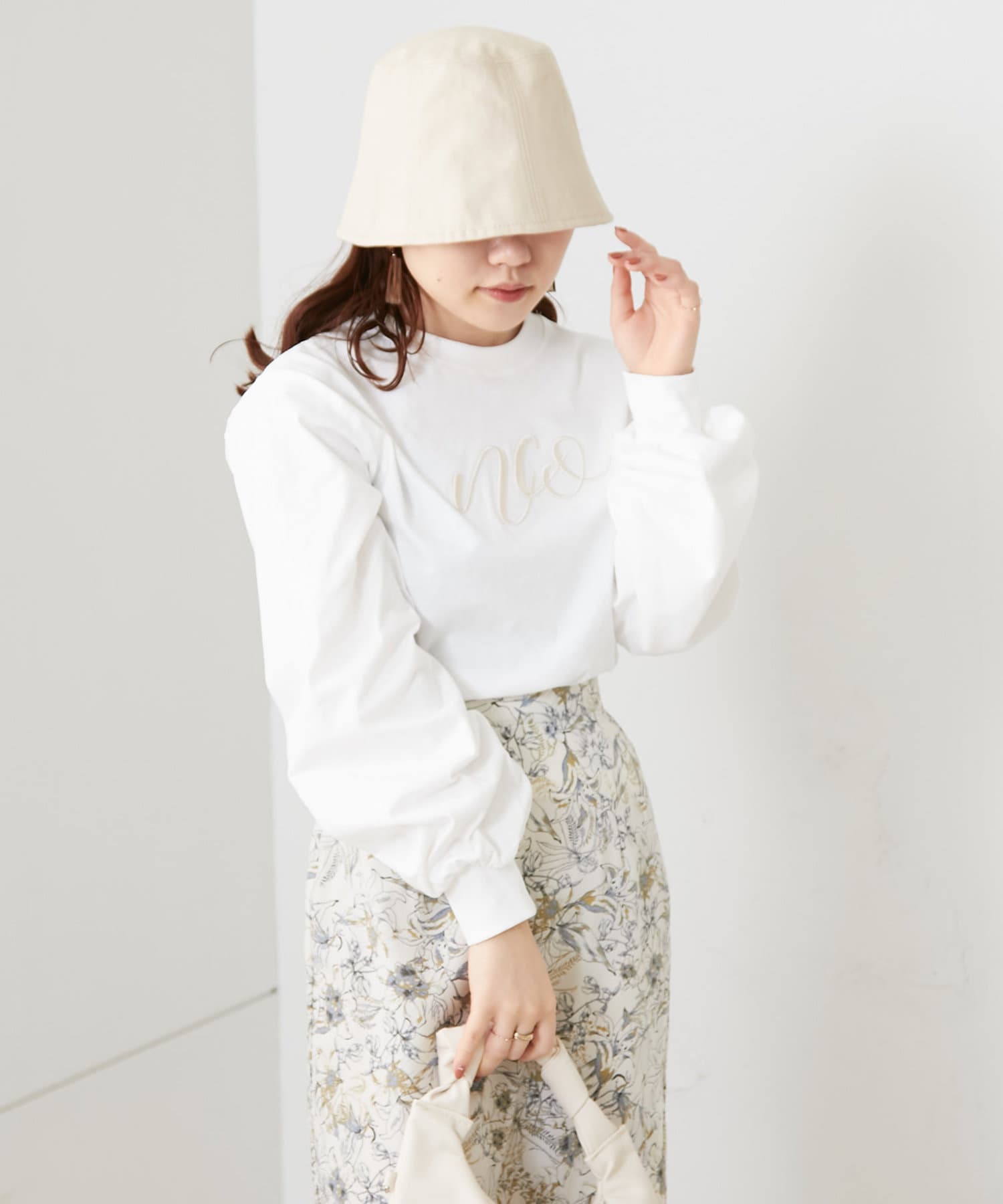 TOP > NICE CLAUP / OLIVE des OLIVE OUTLET > レディース > トップス > Tシャツ/カットソー > 刺繍ロゴ袖ボリュームロンT