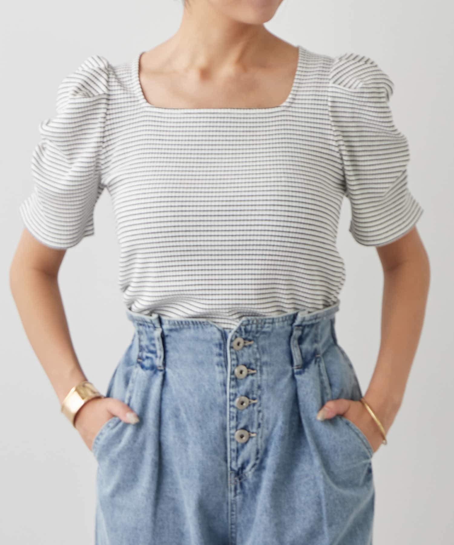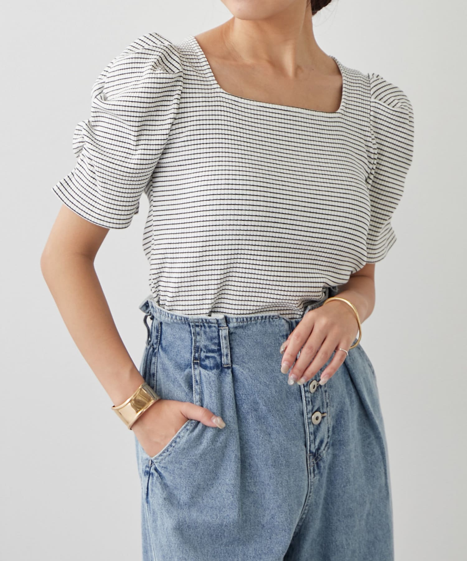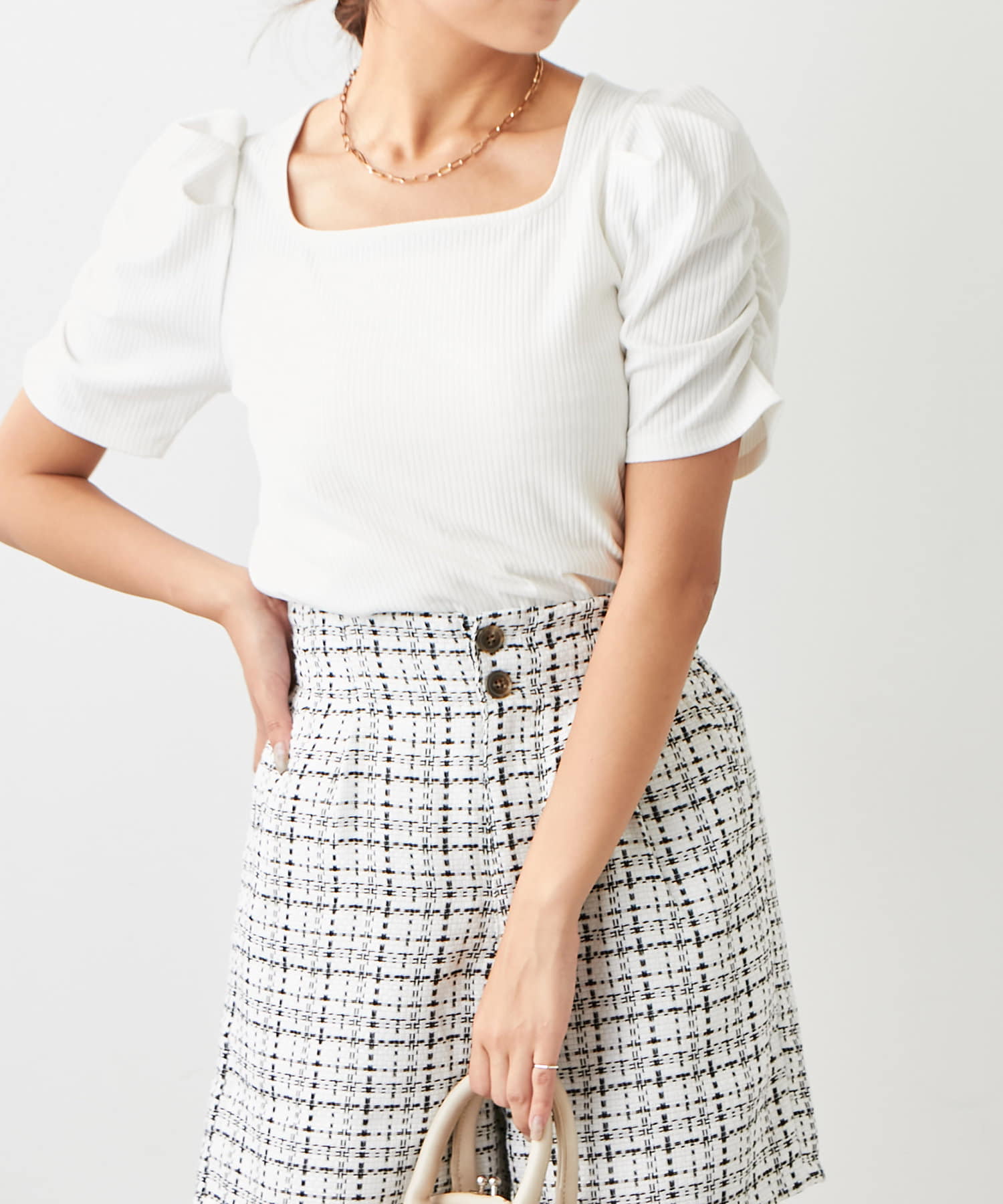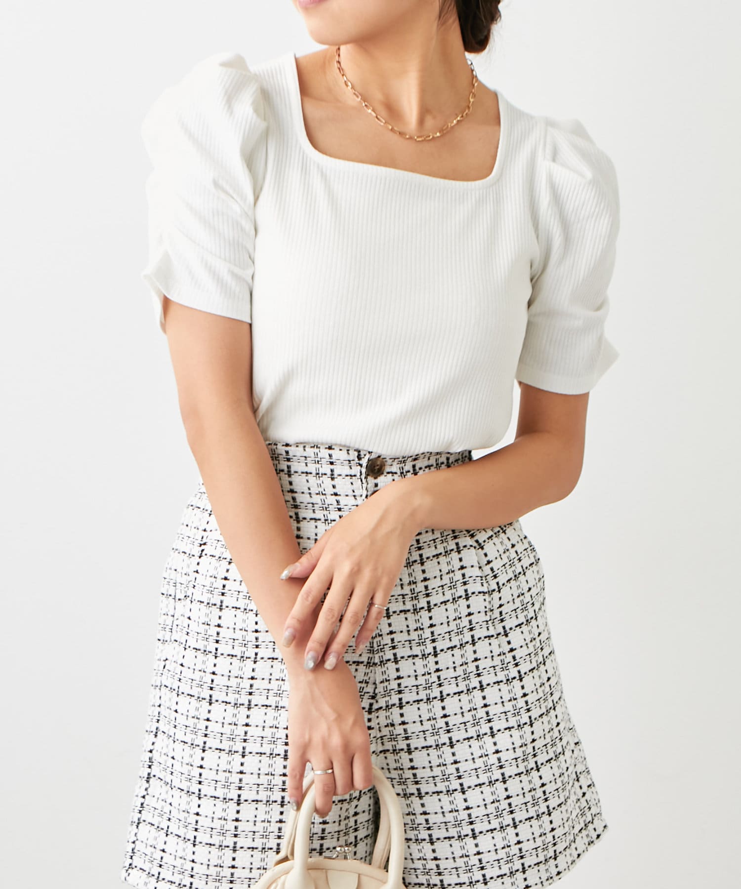 ・スクエアネックでデコルテもきれいに見せてくれるのが嬉しい