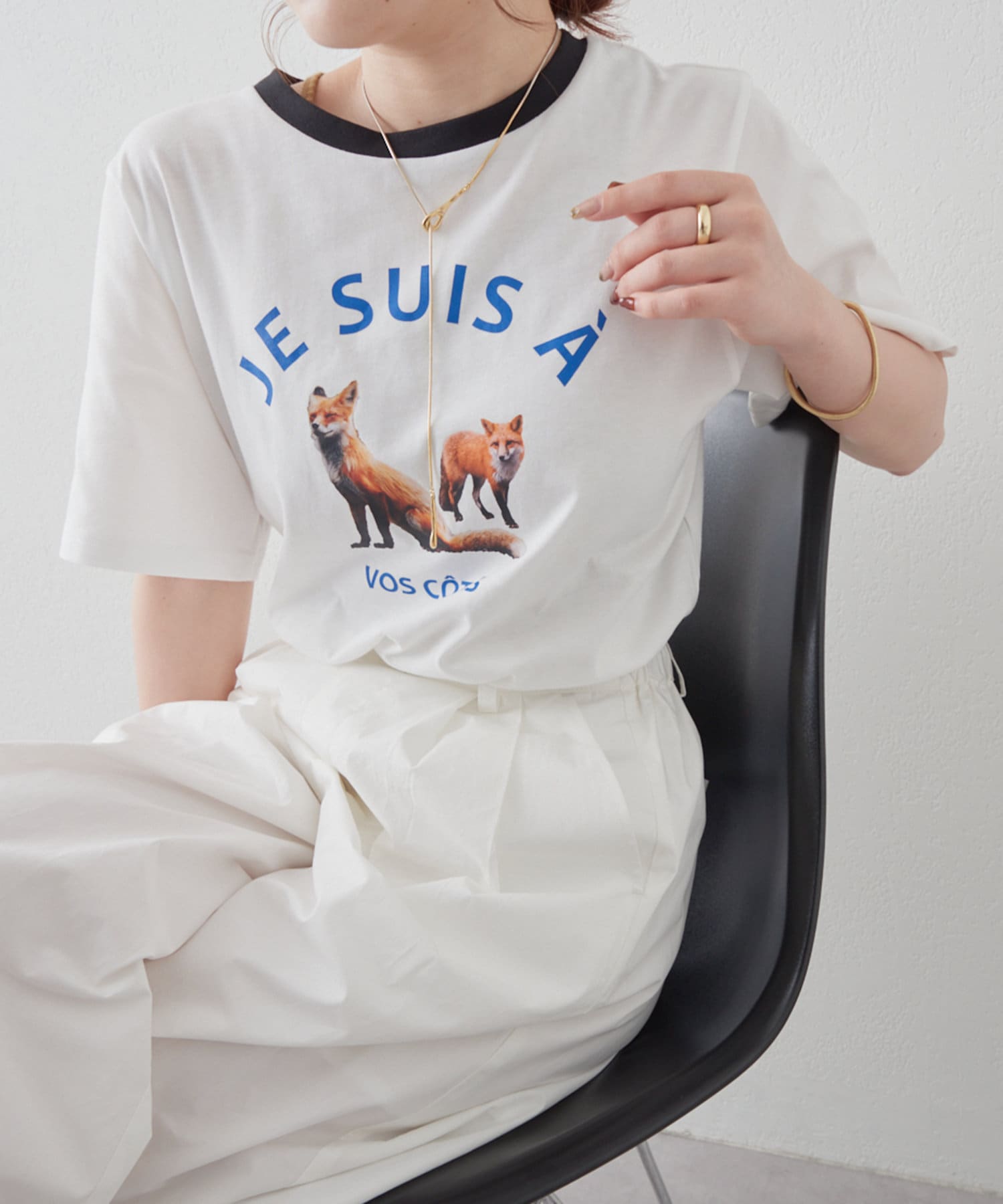 きつねがかわいい!白のスカートにも黒のズボンにも合って最高です。