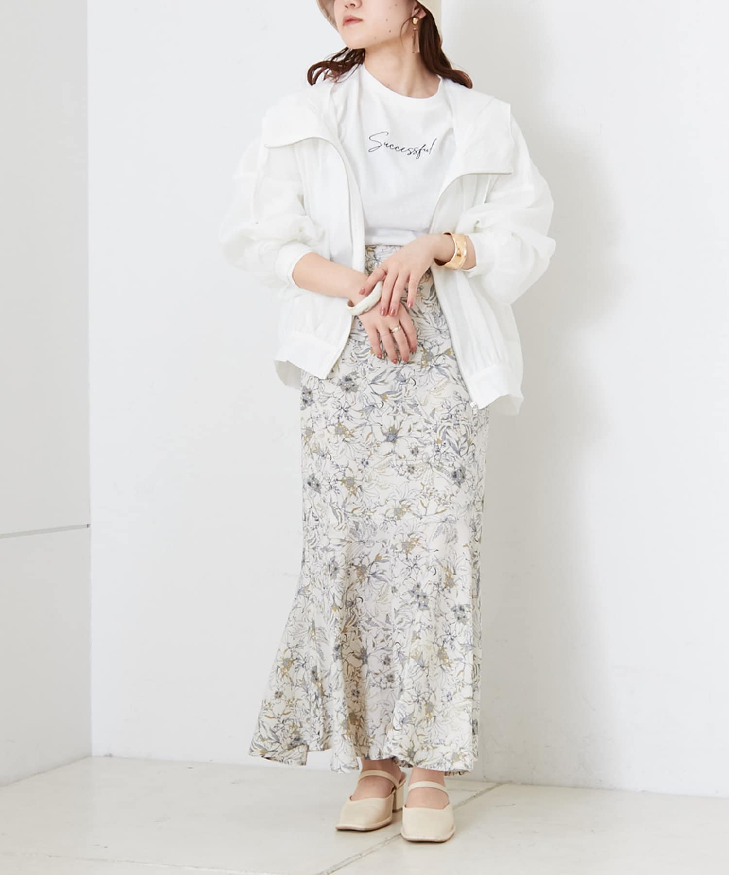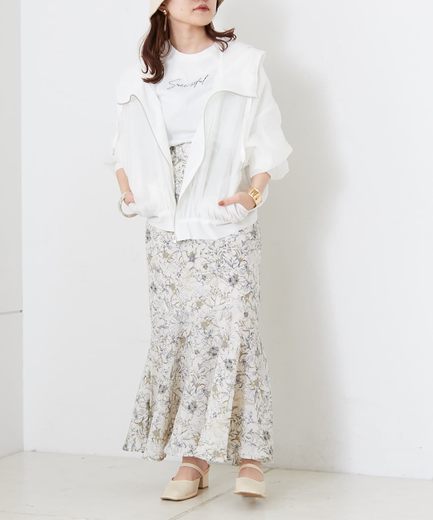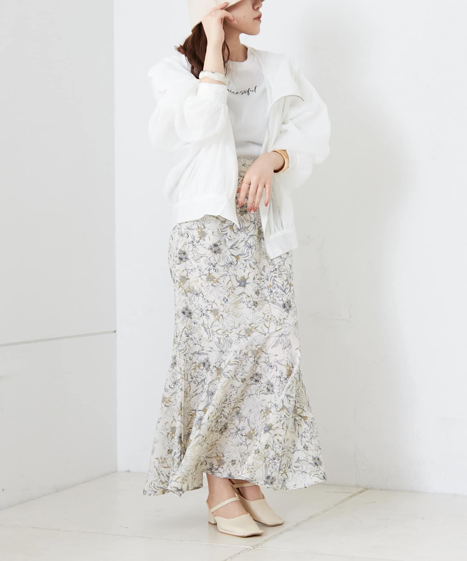 ・モノトーンコーデにシアーの素材感をプラスするスタイリングが可愛い◎