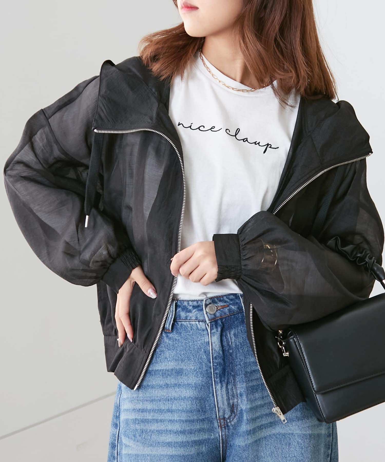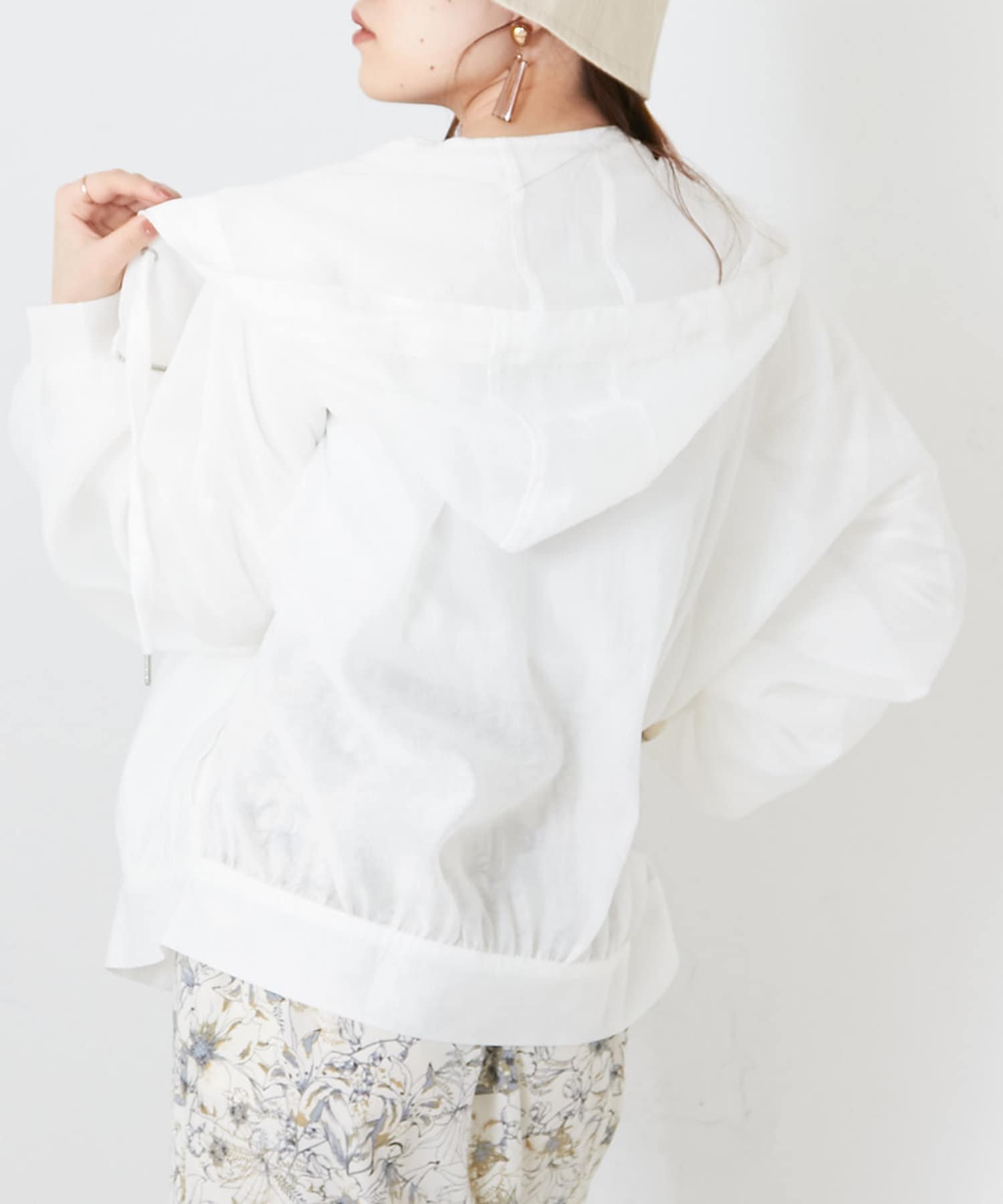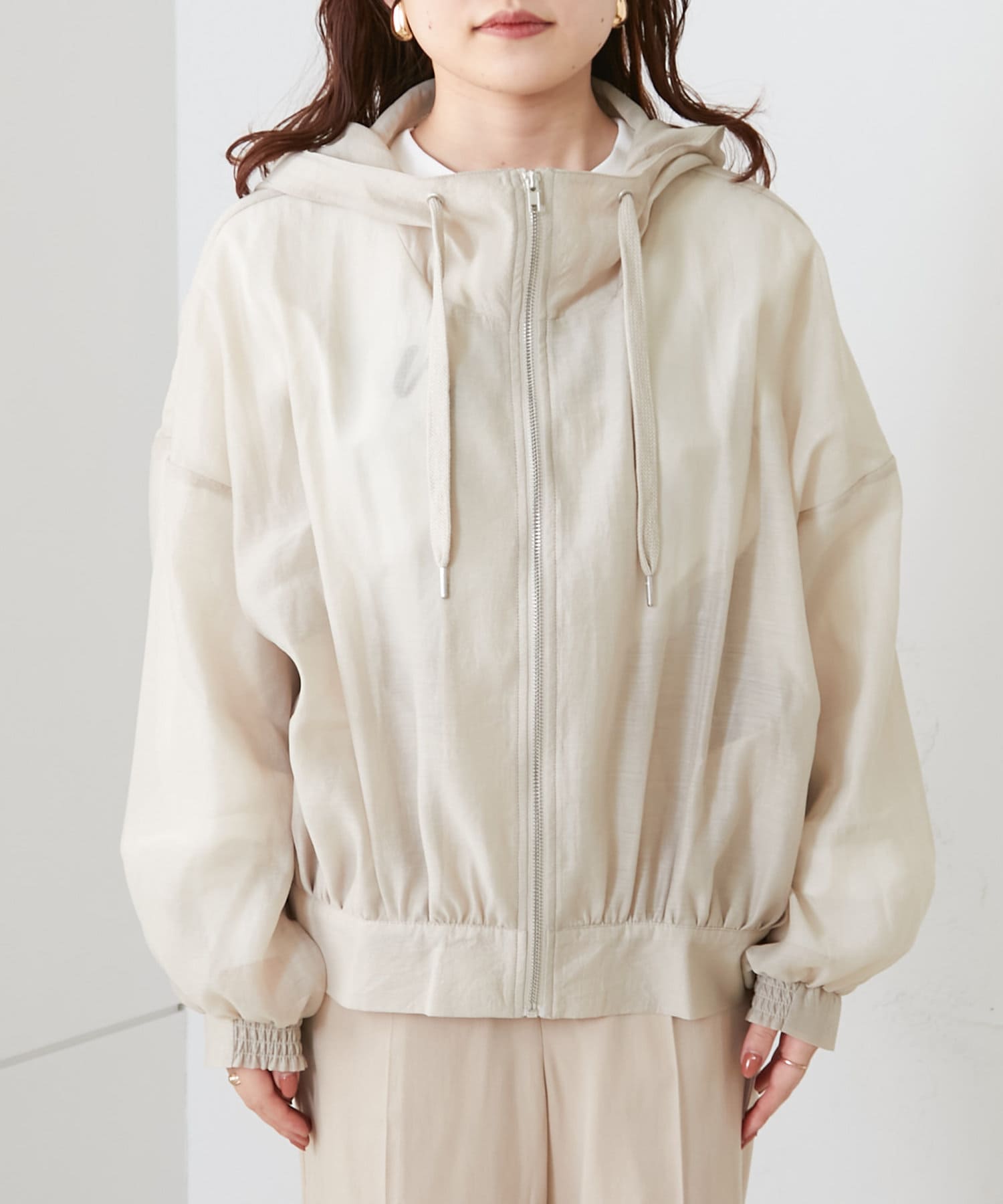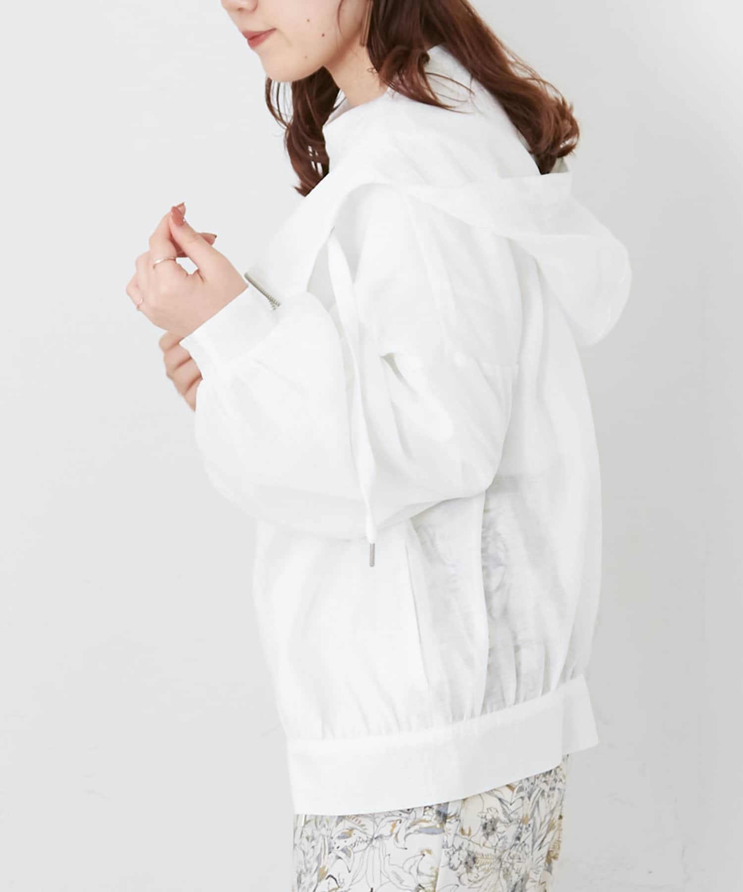 ・透け感のあるフード付きブルゾン