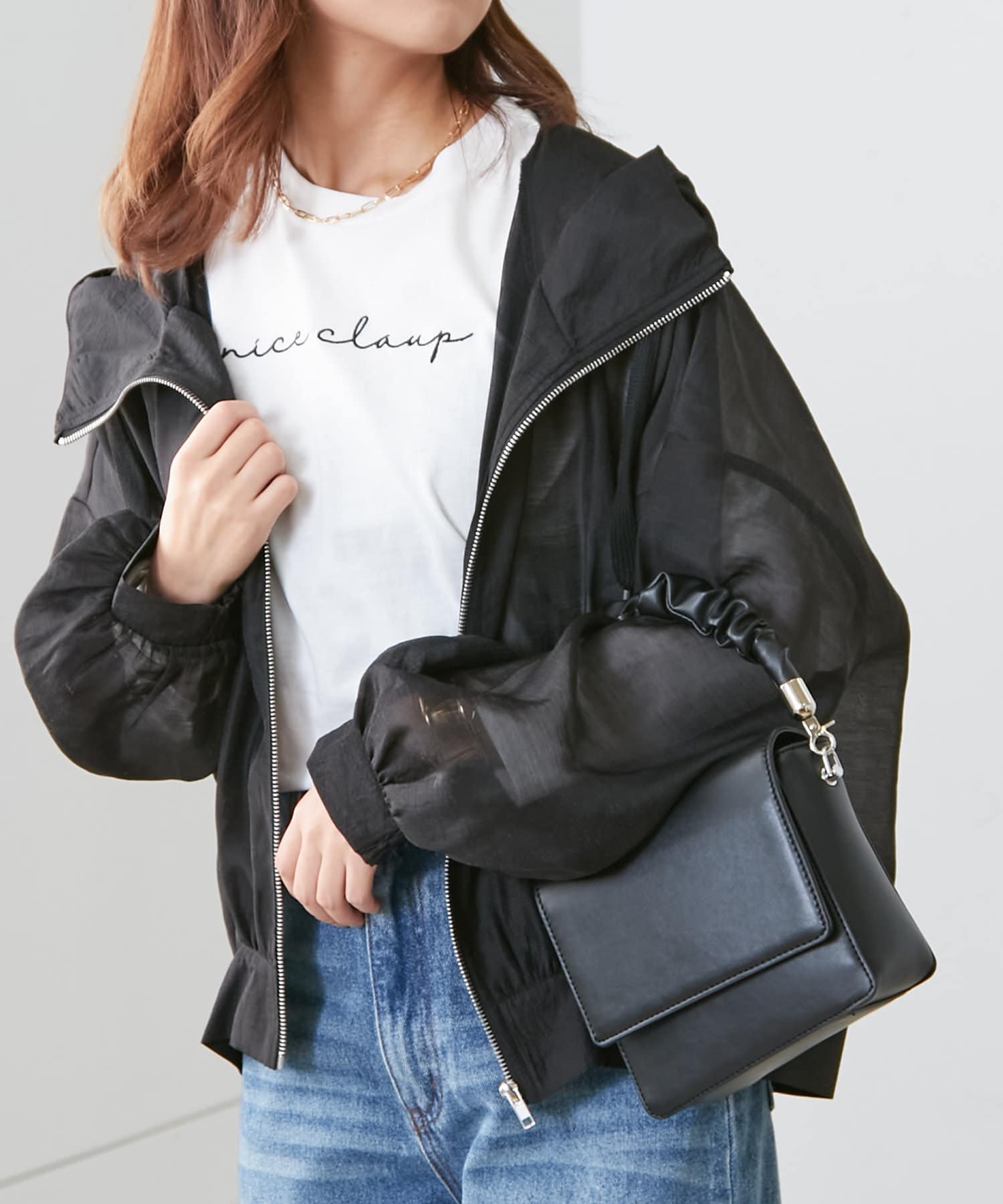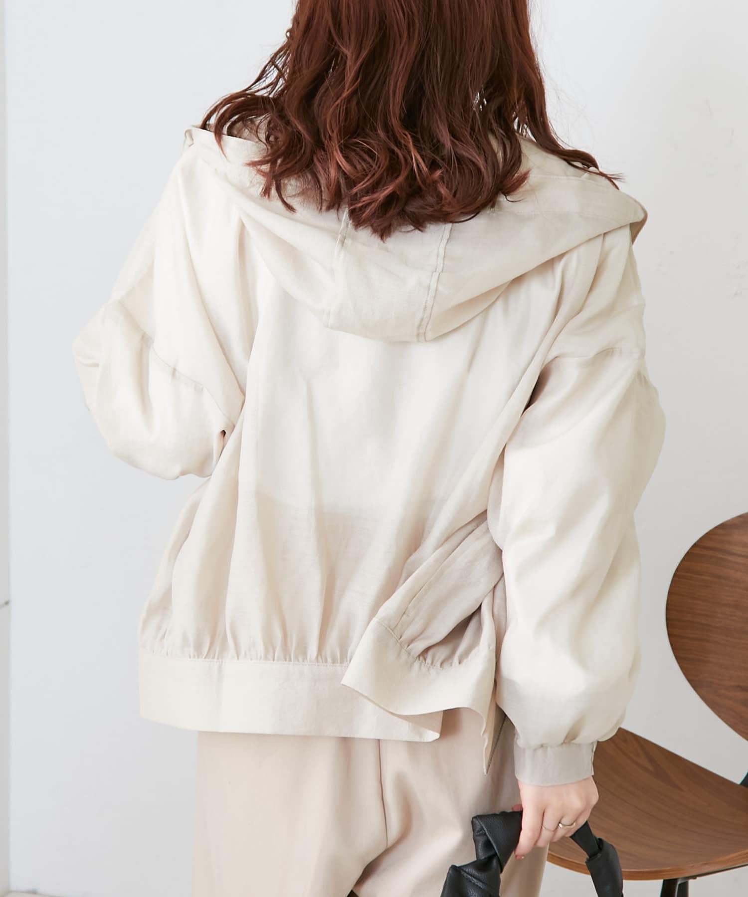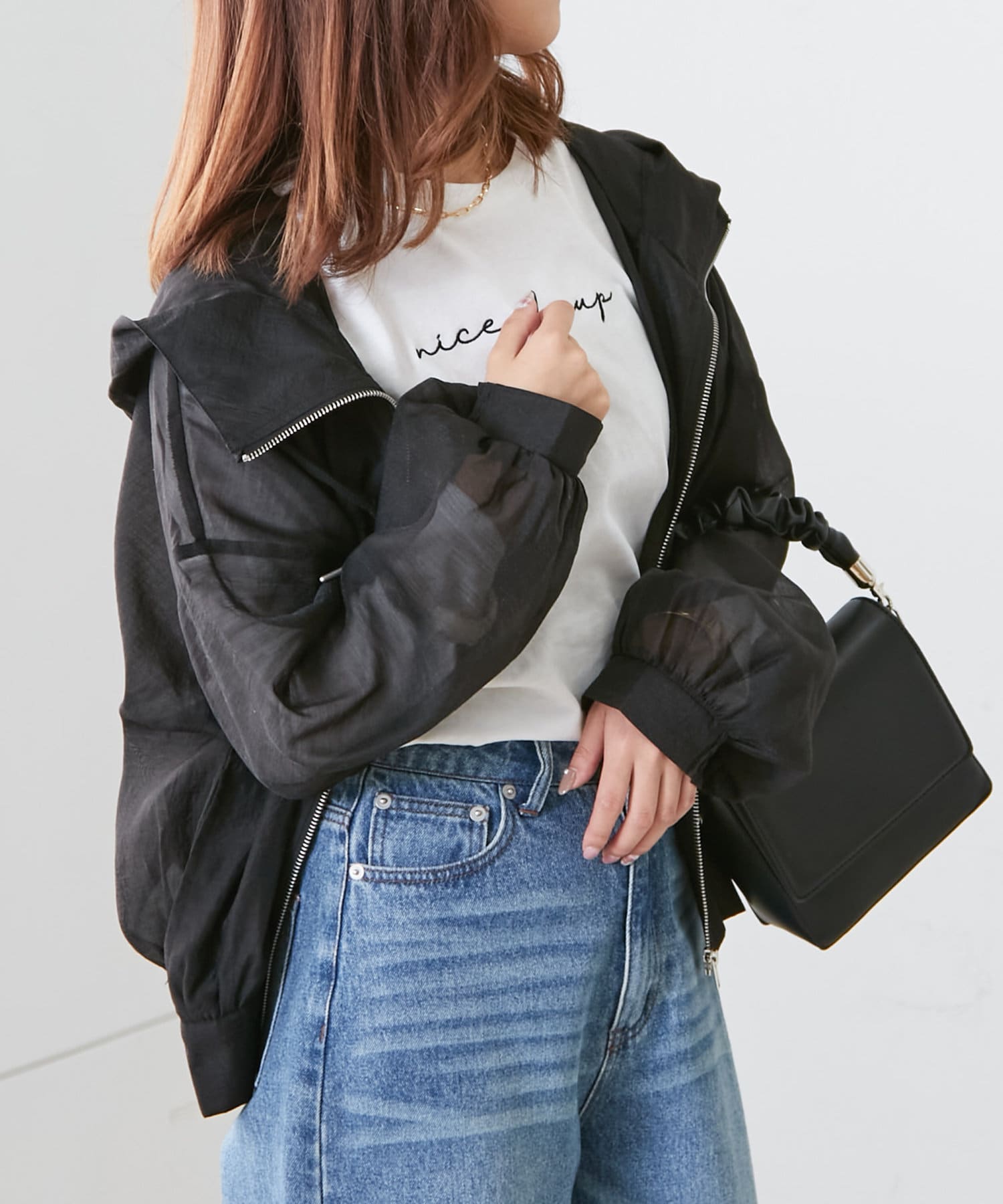 ・透け感のあるフード付きブルゾン
