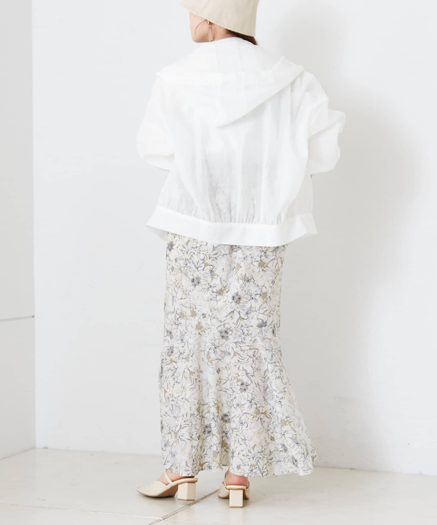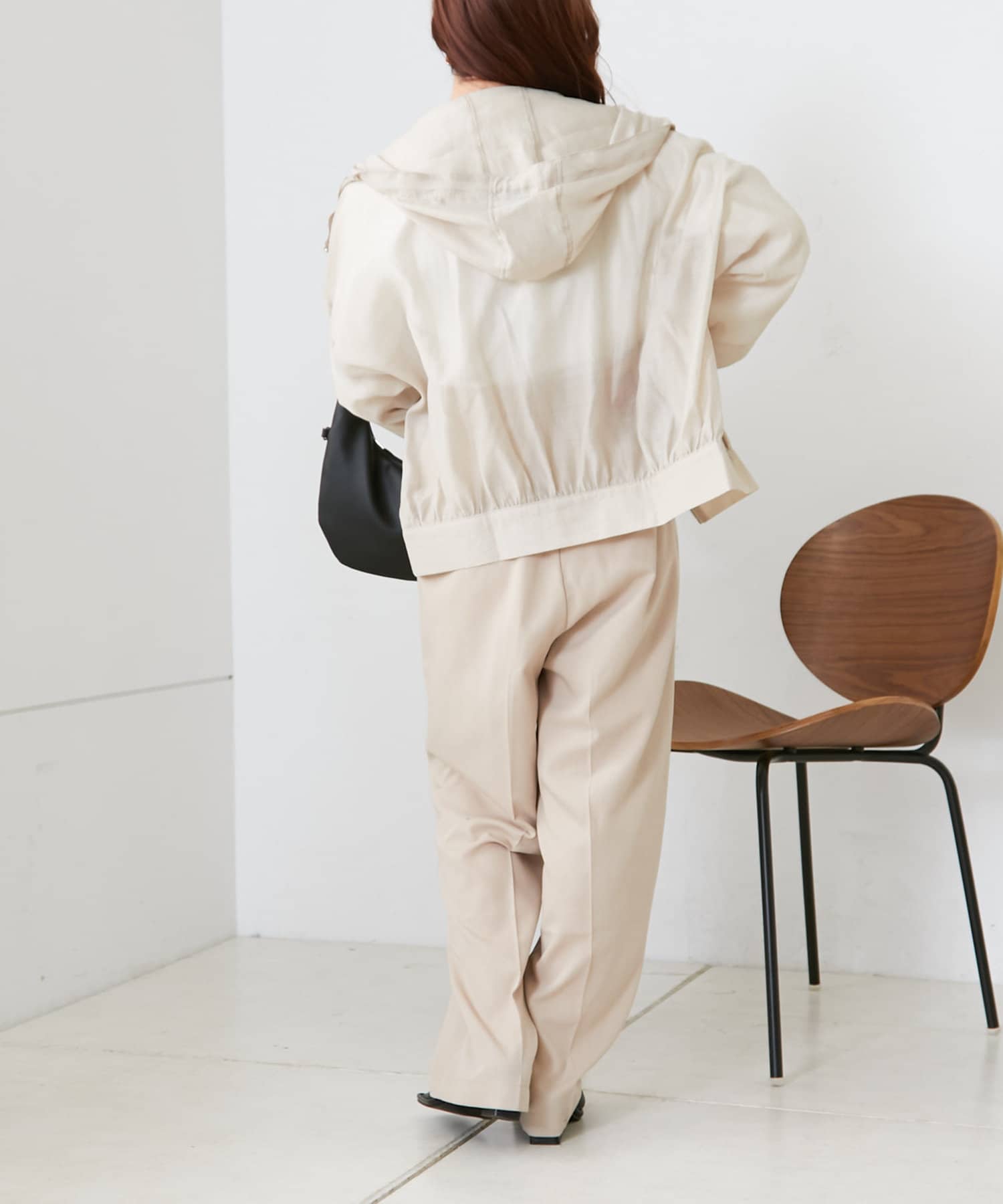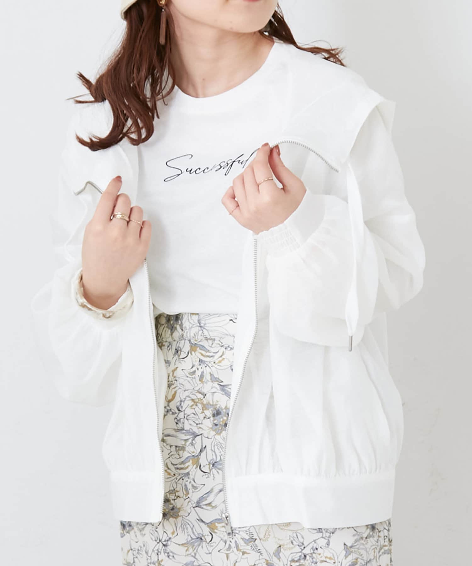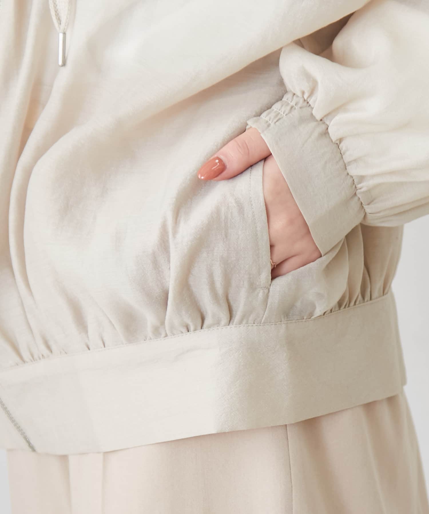 ・透け感のあるフード付きブルゾン