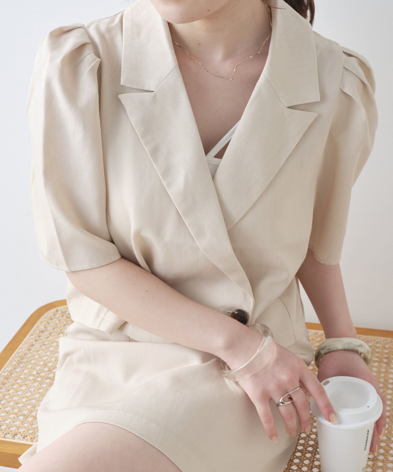 【SETUP対応アイテム】【韓国スタイル】パワショルショート丈ジャケット