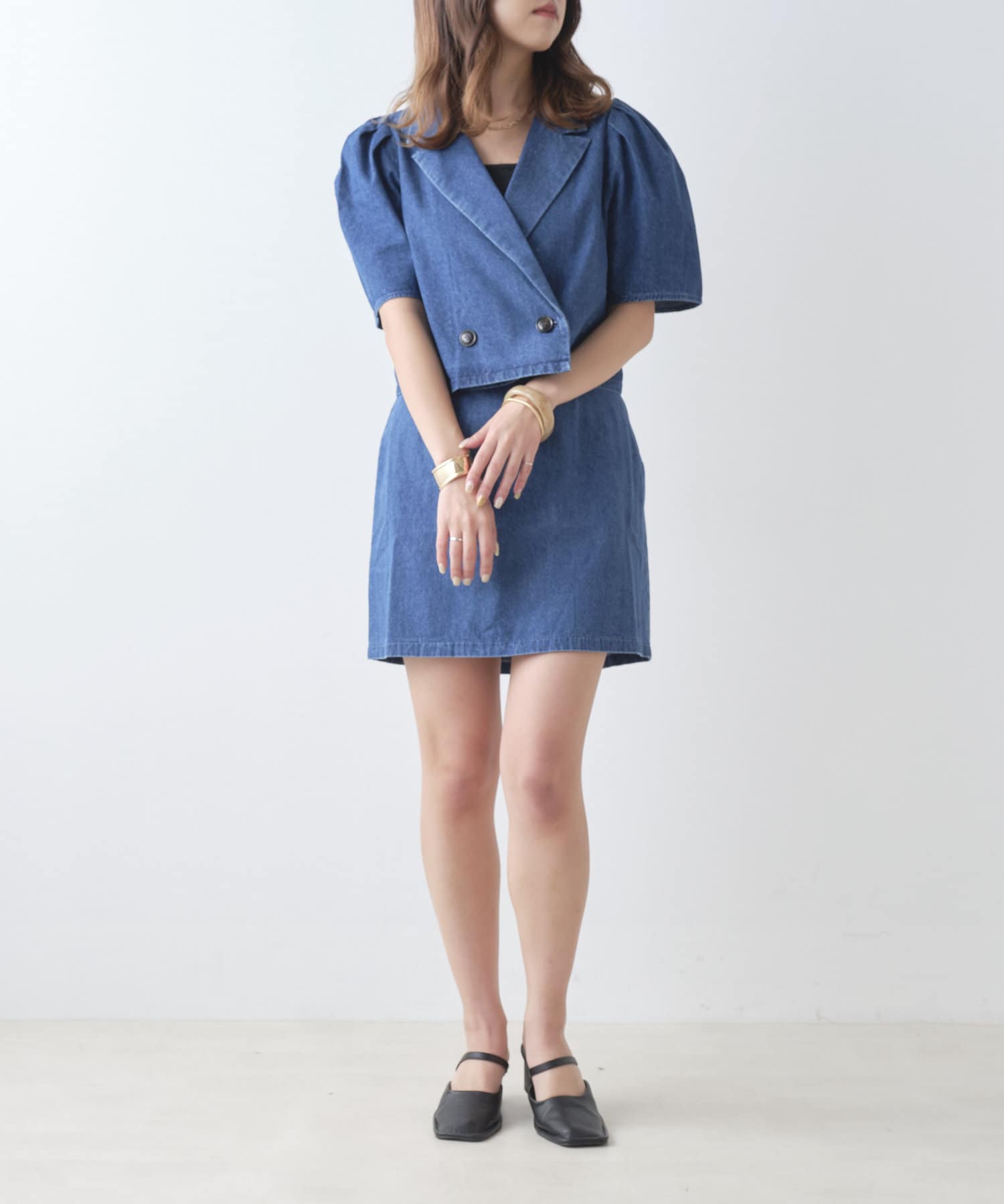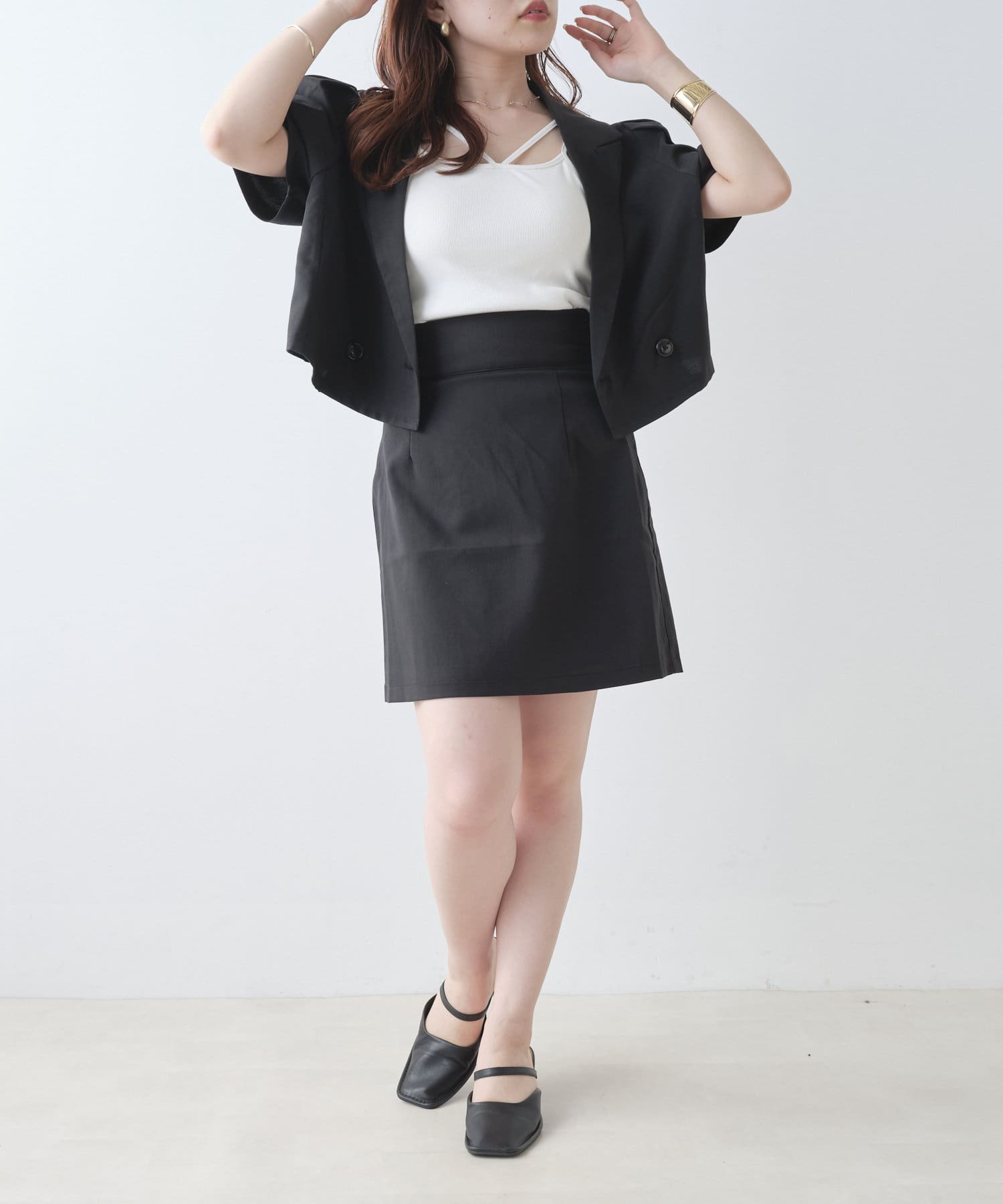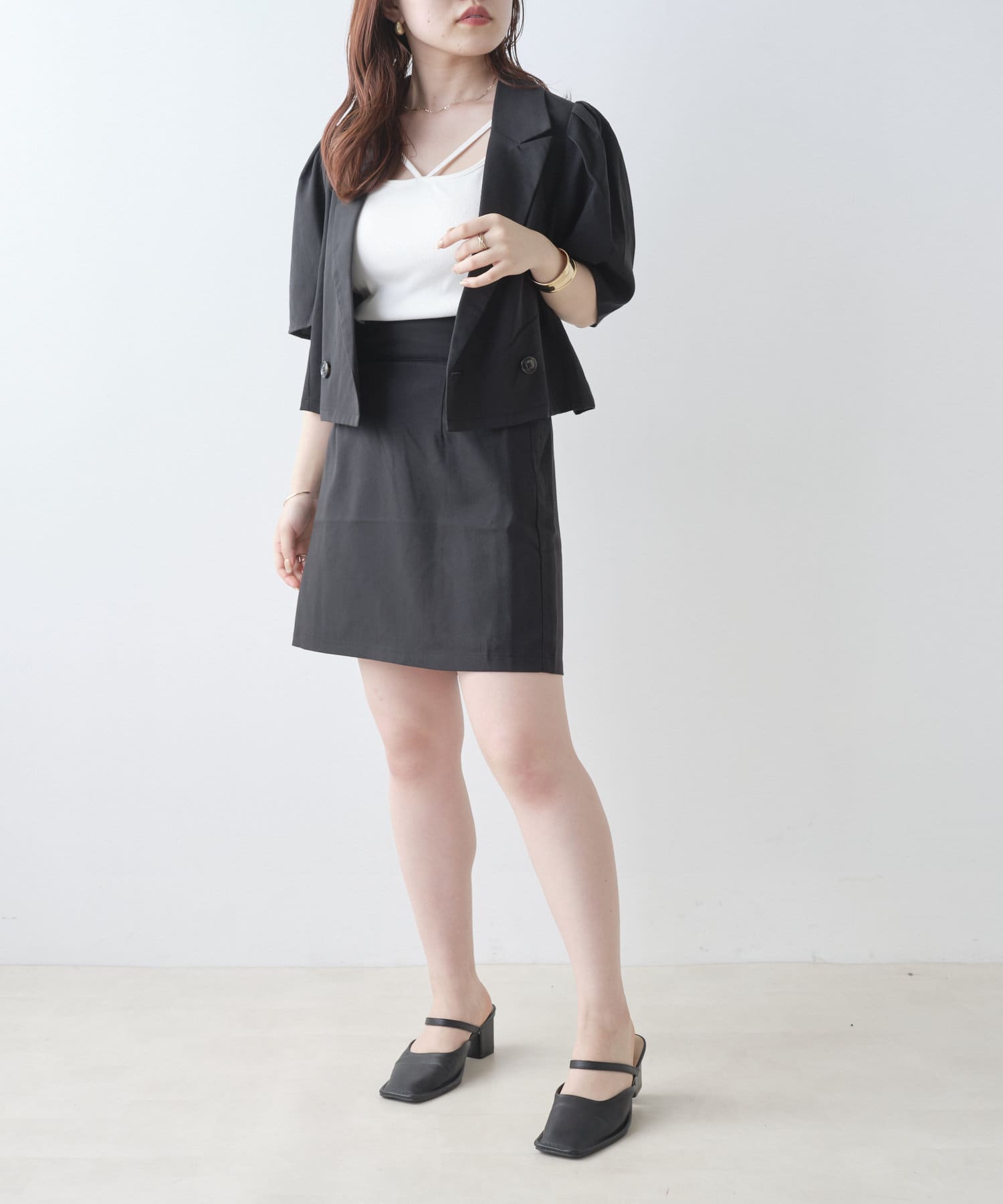 ・短丈アイテムなのでスカートでもパンツでも着回ししやすい。