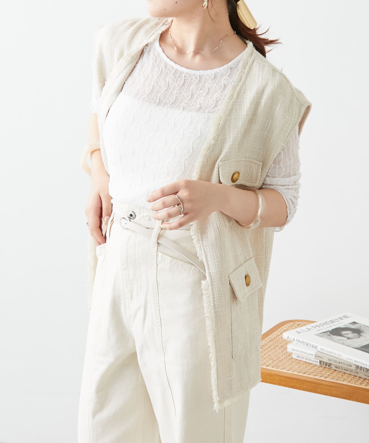・ツイード生地が上品な印象のベスト