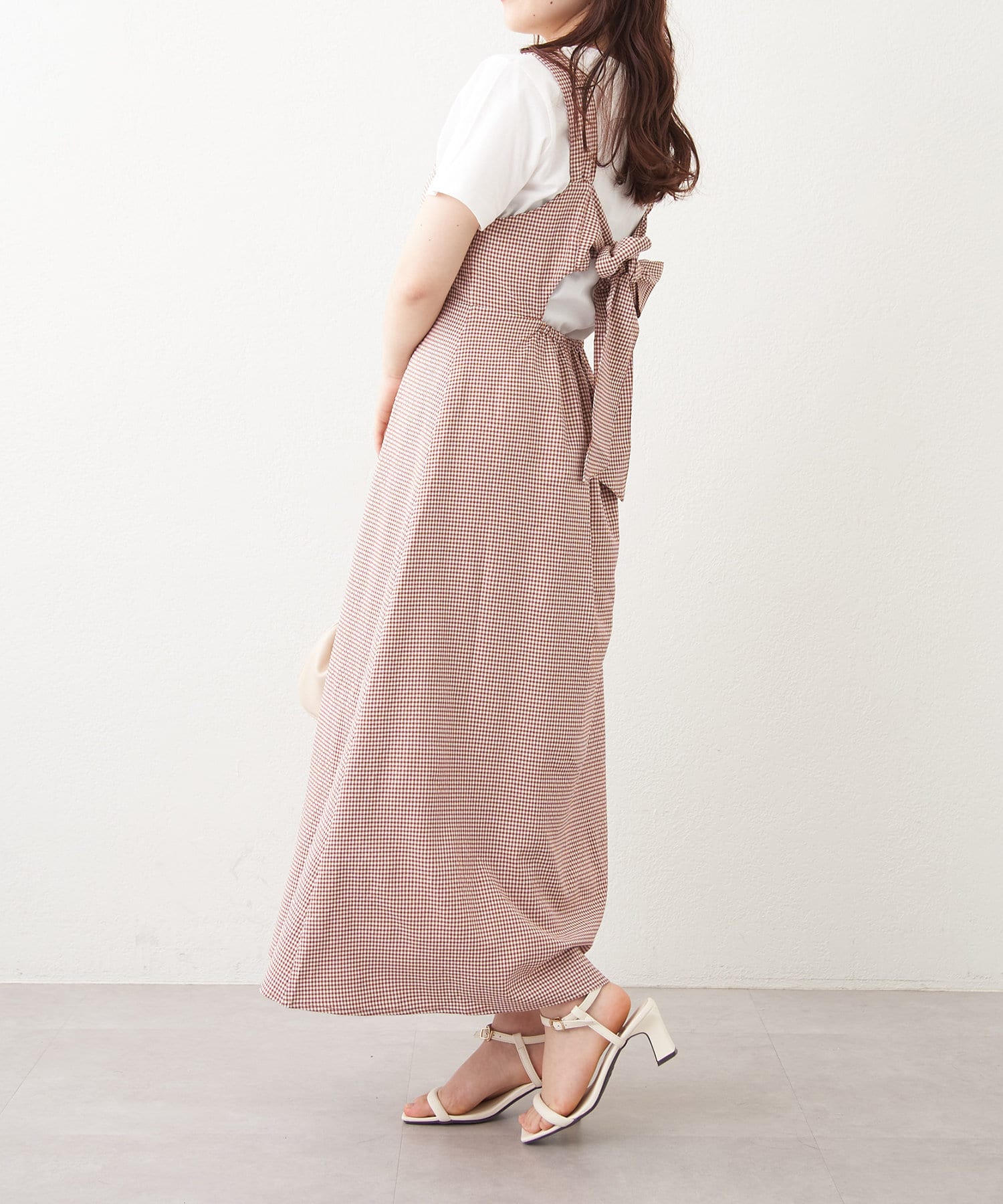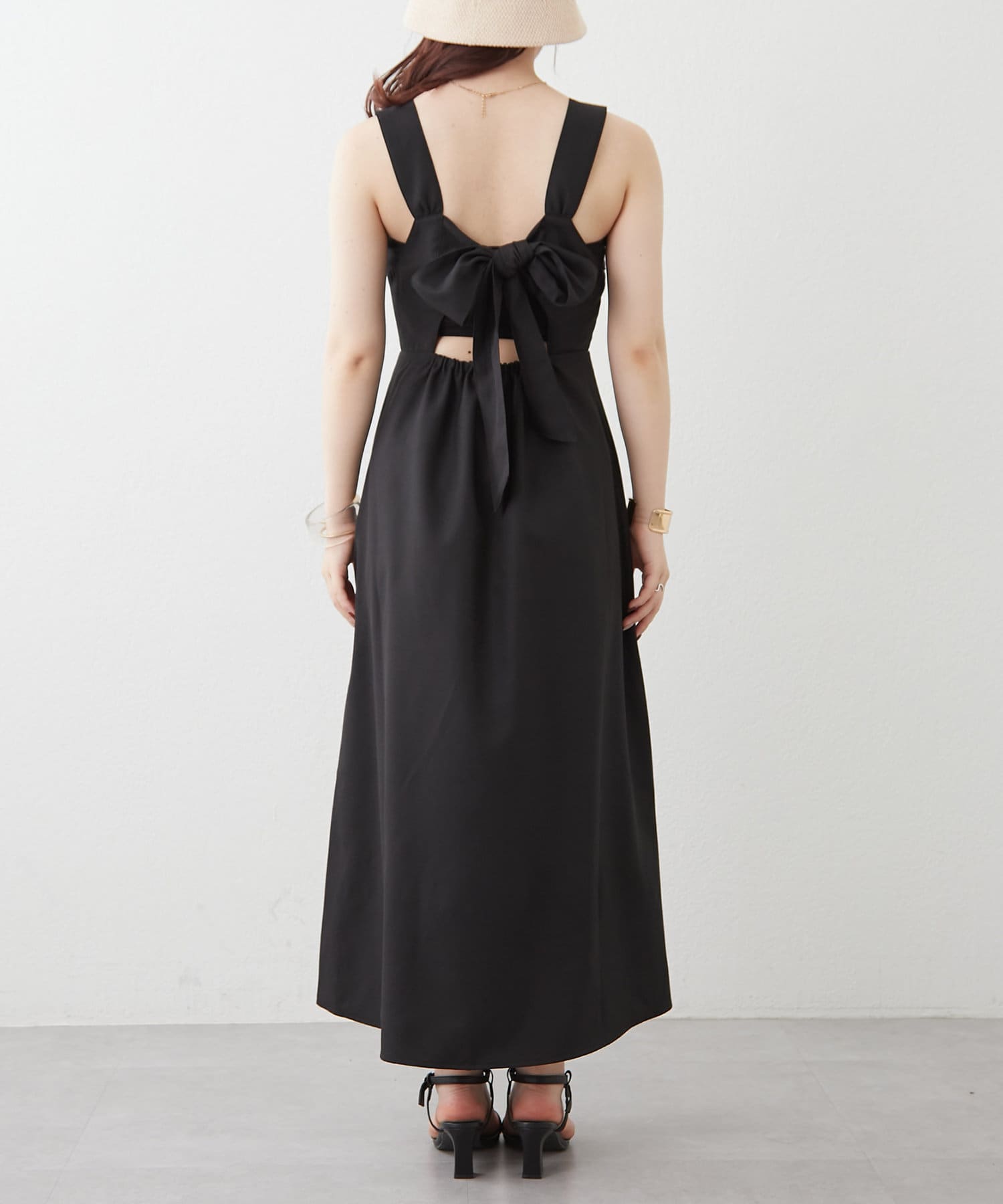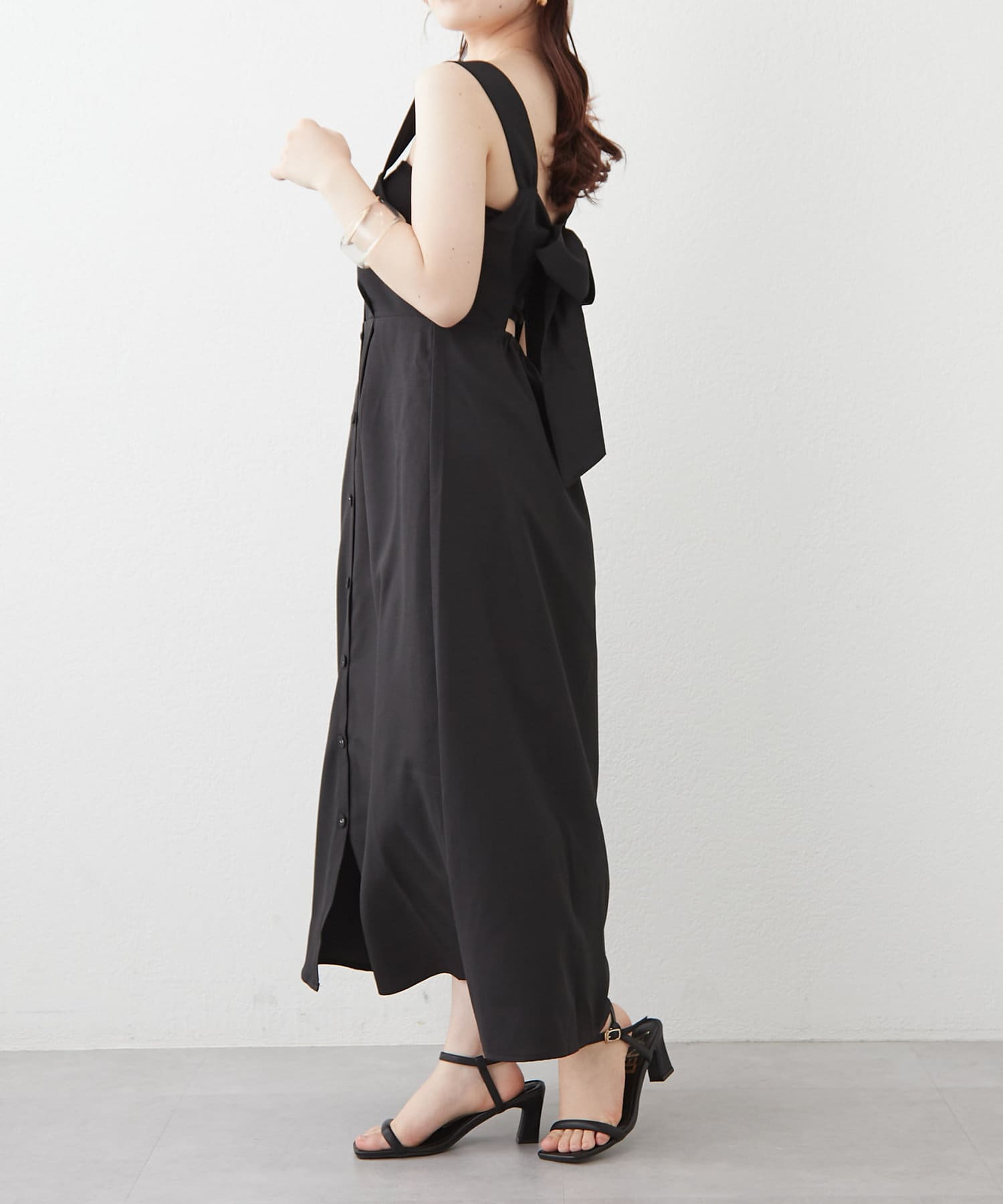 ・バック空きデザインとリボンで後ろ姿も可愛いジャンスカ