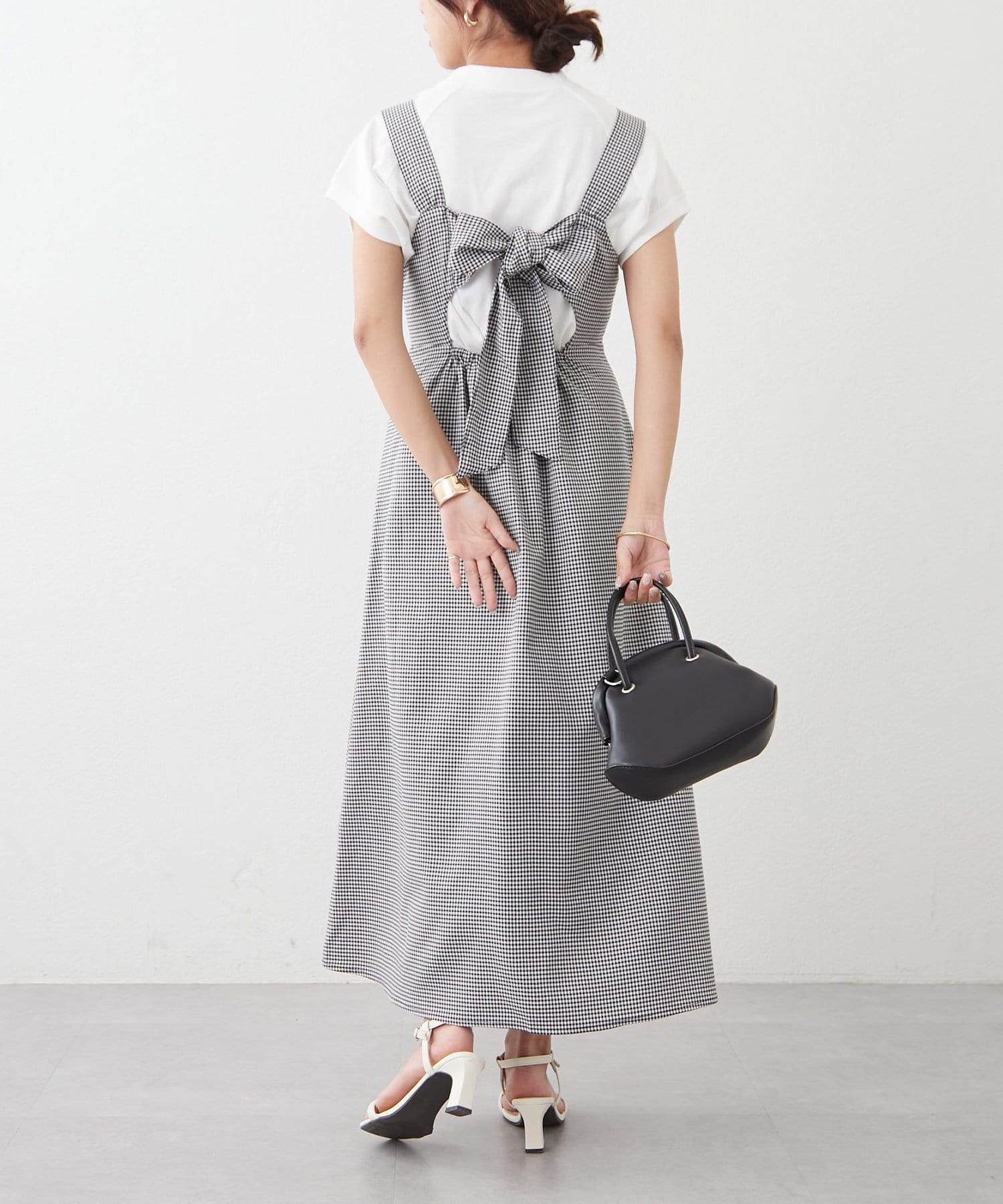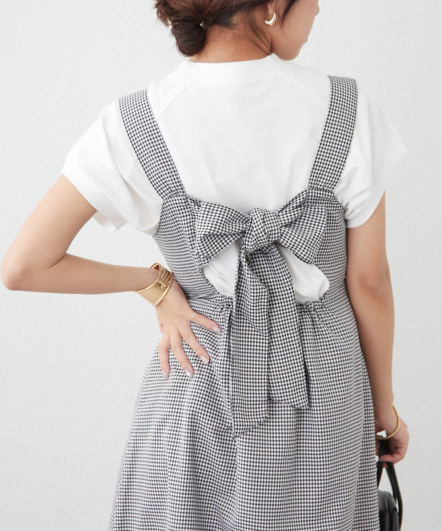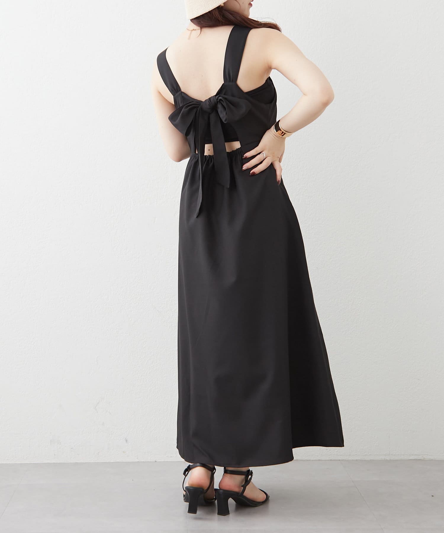 ・バック空きデザインとリボンで後ろ姿も可愛いジャンスカ