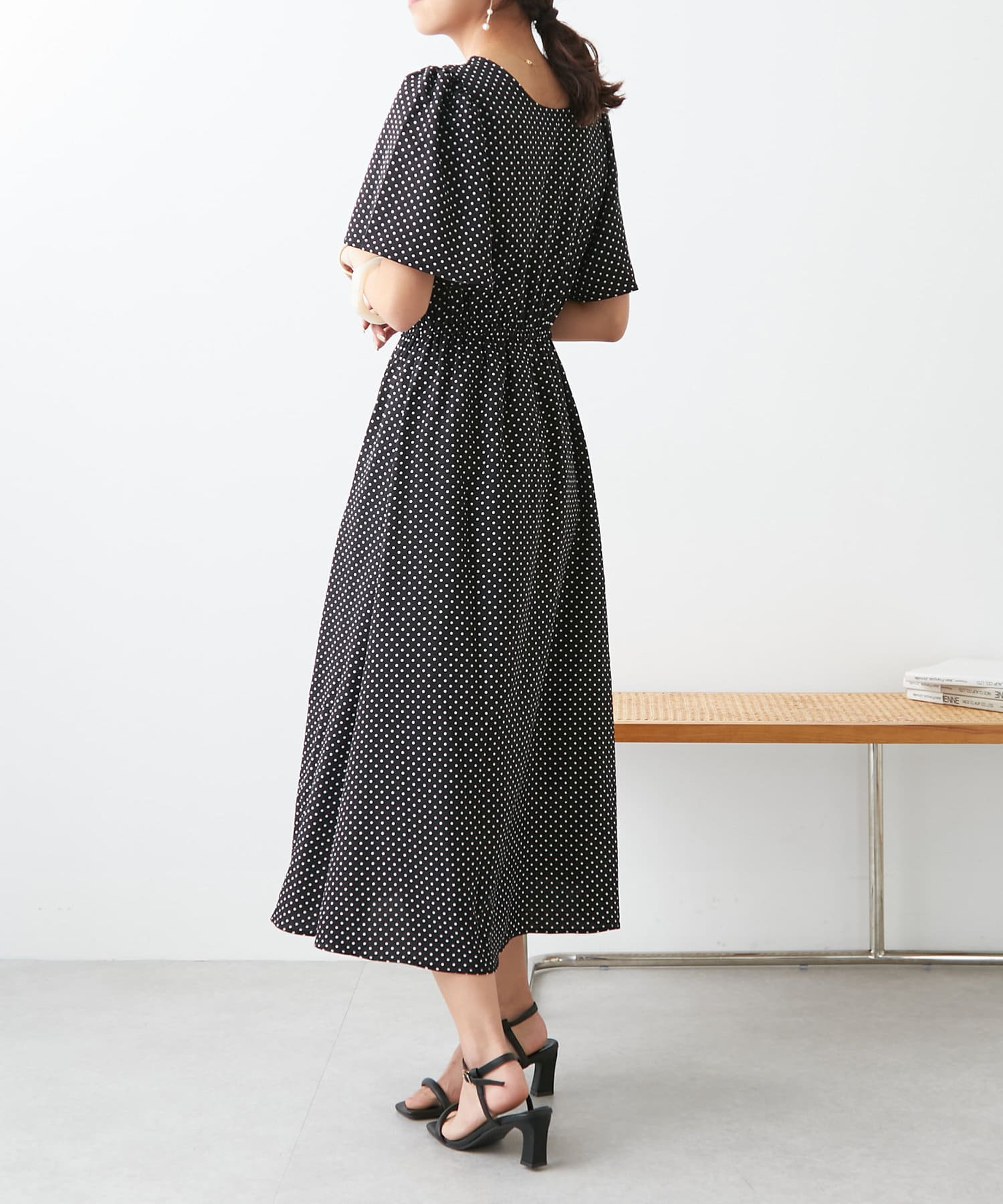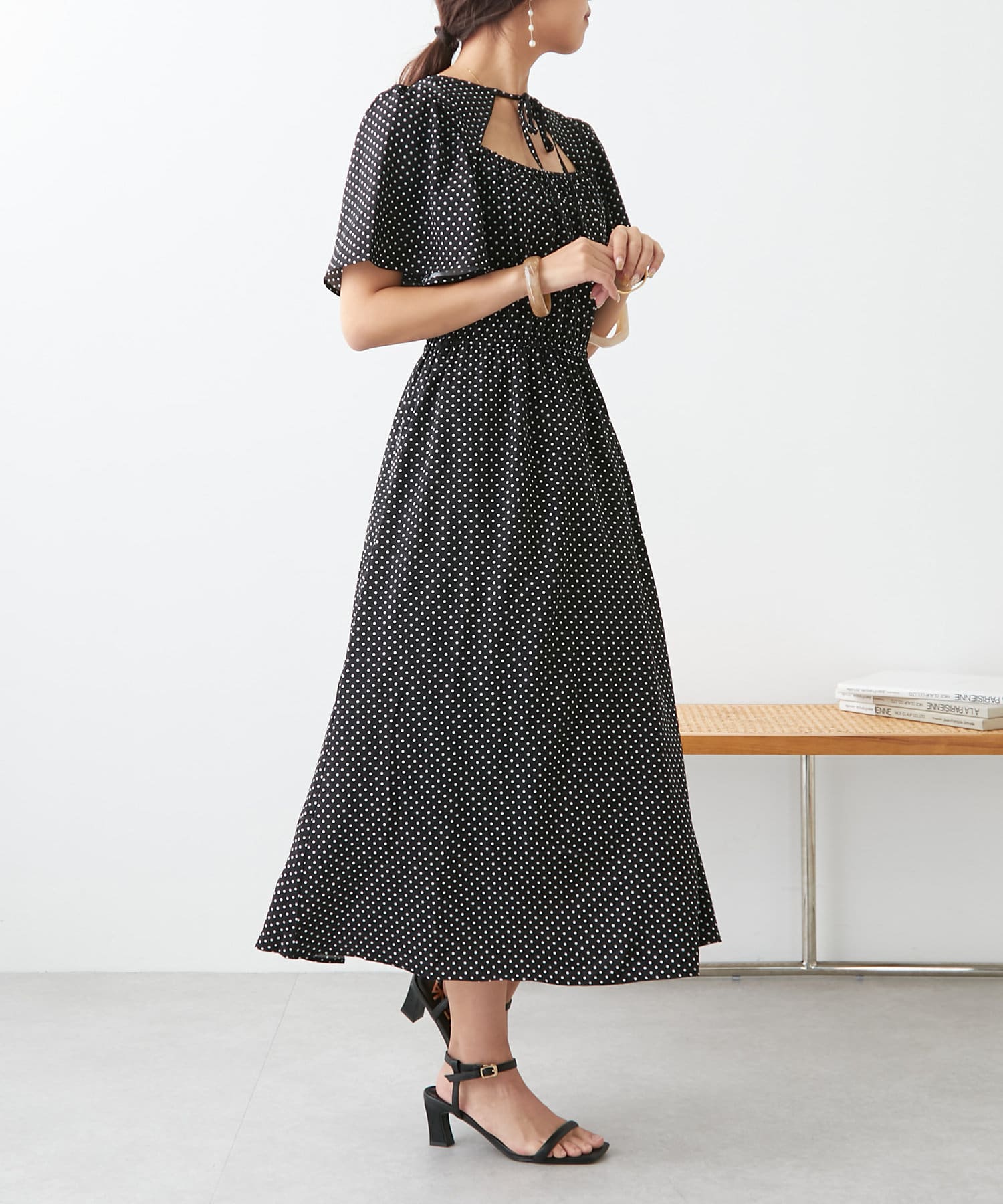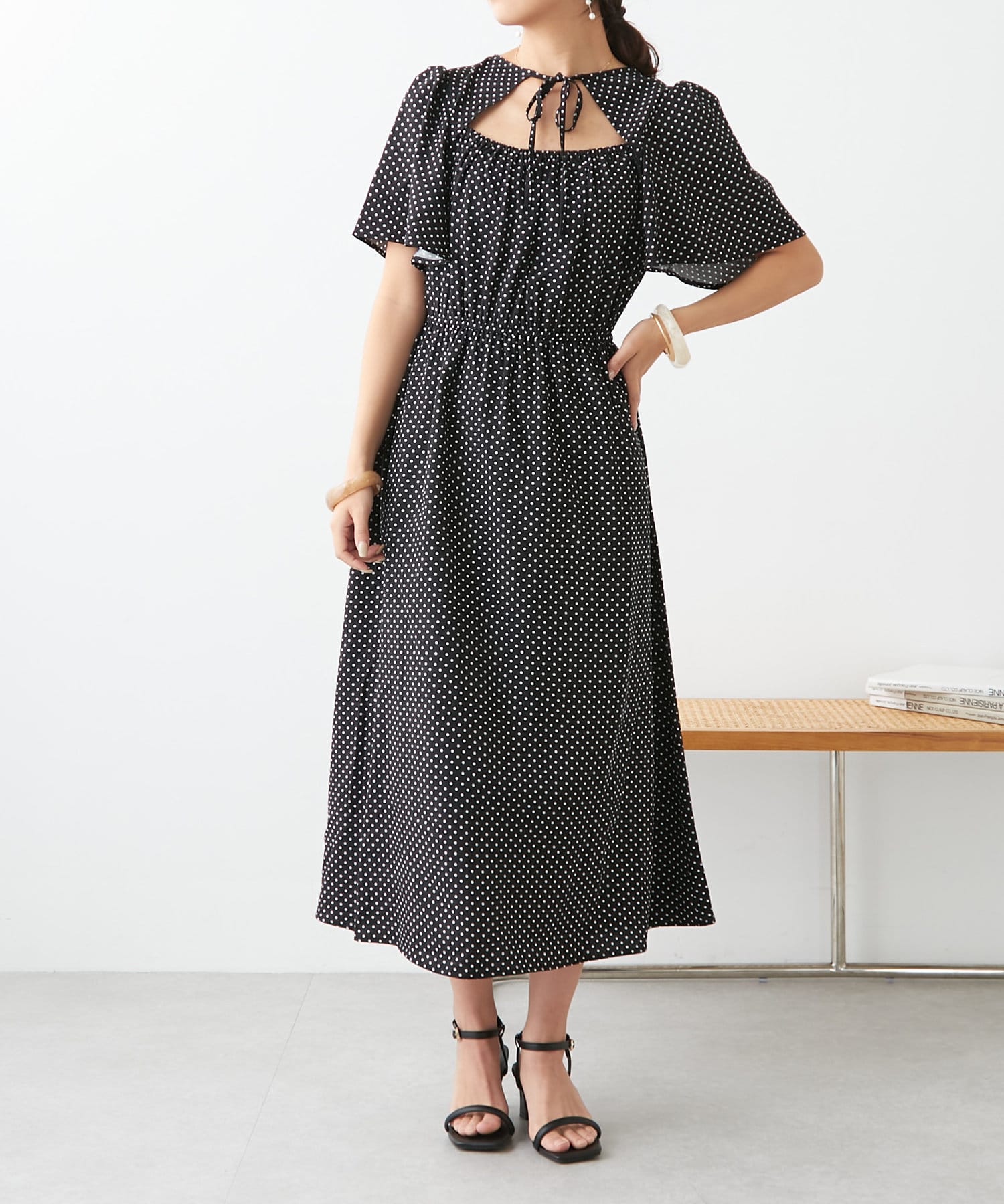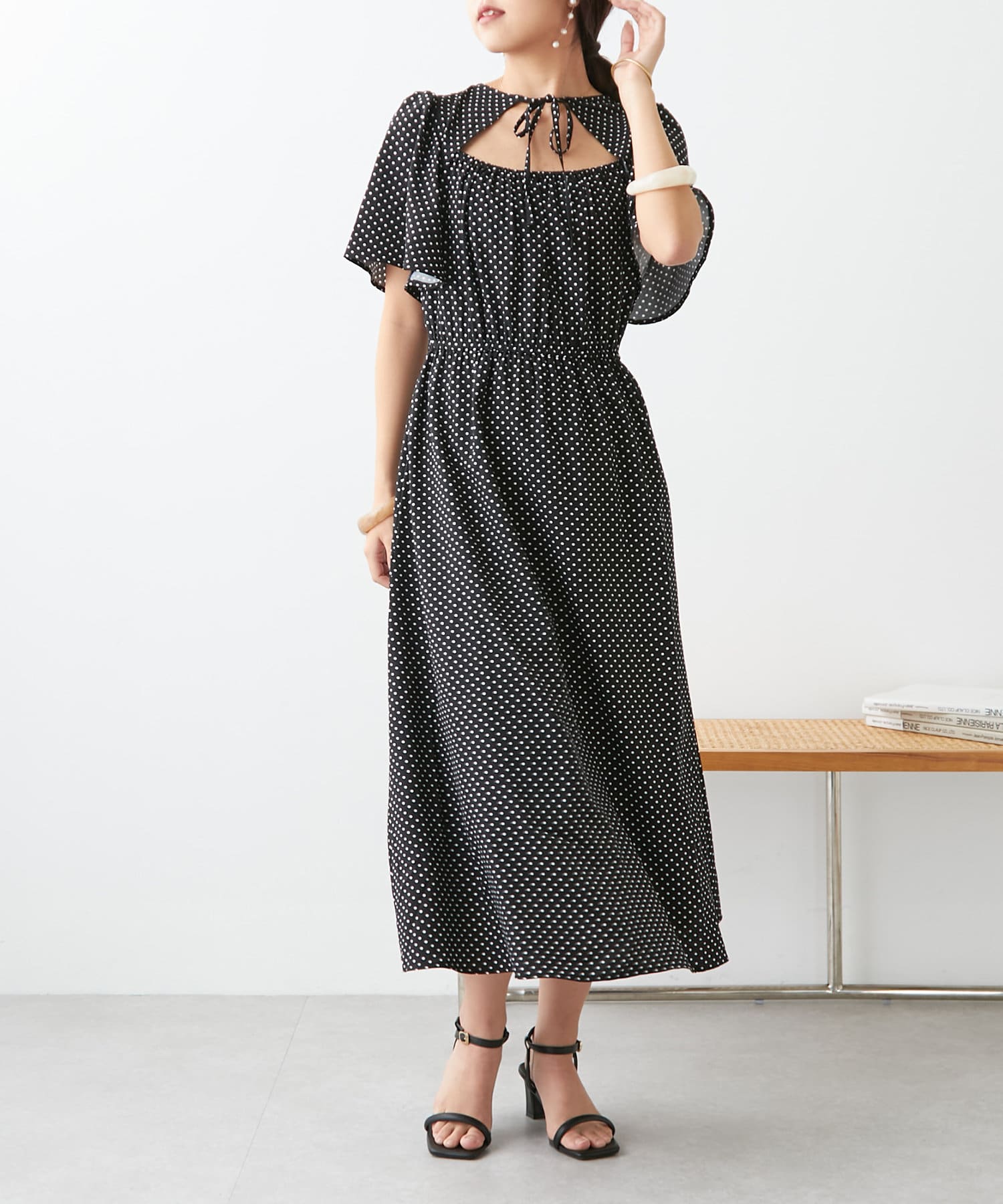 ・胸元が開いたデザインでさりげない肌見せができるワンピース