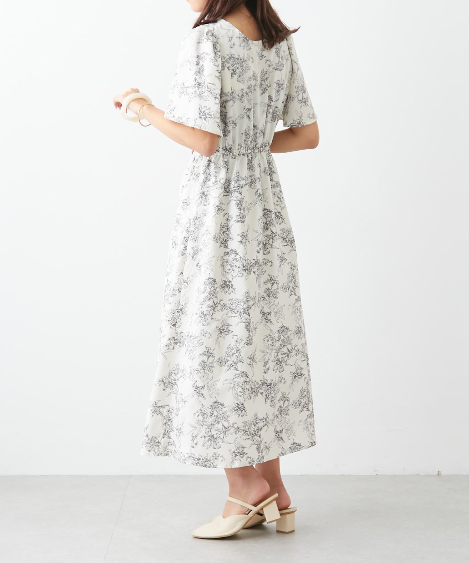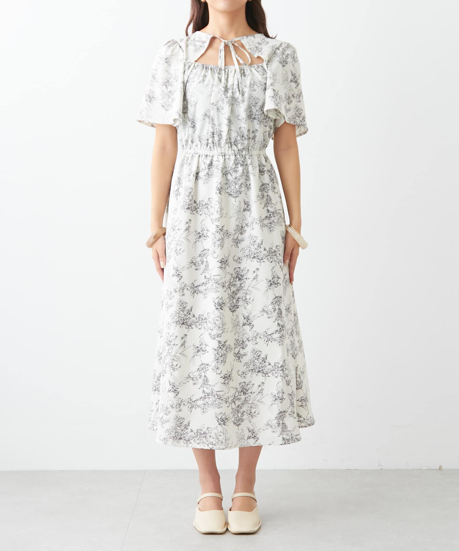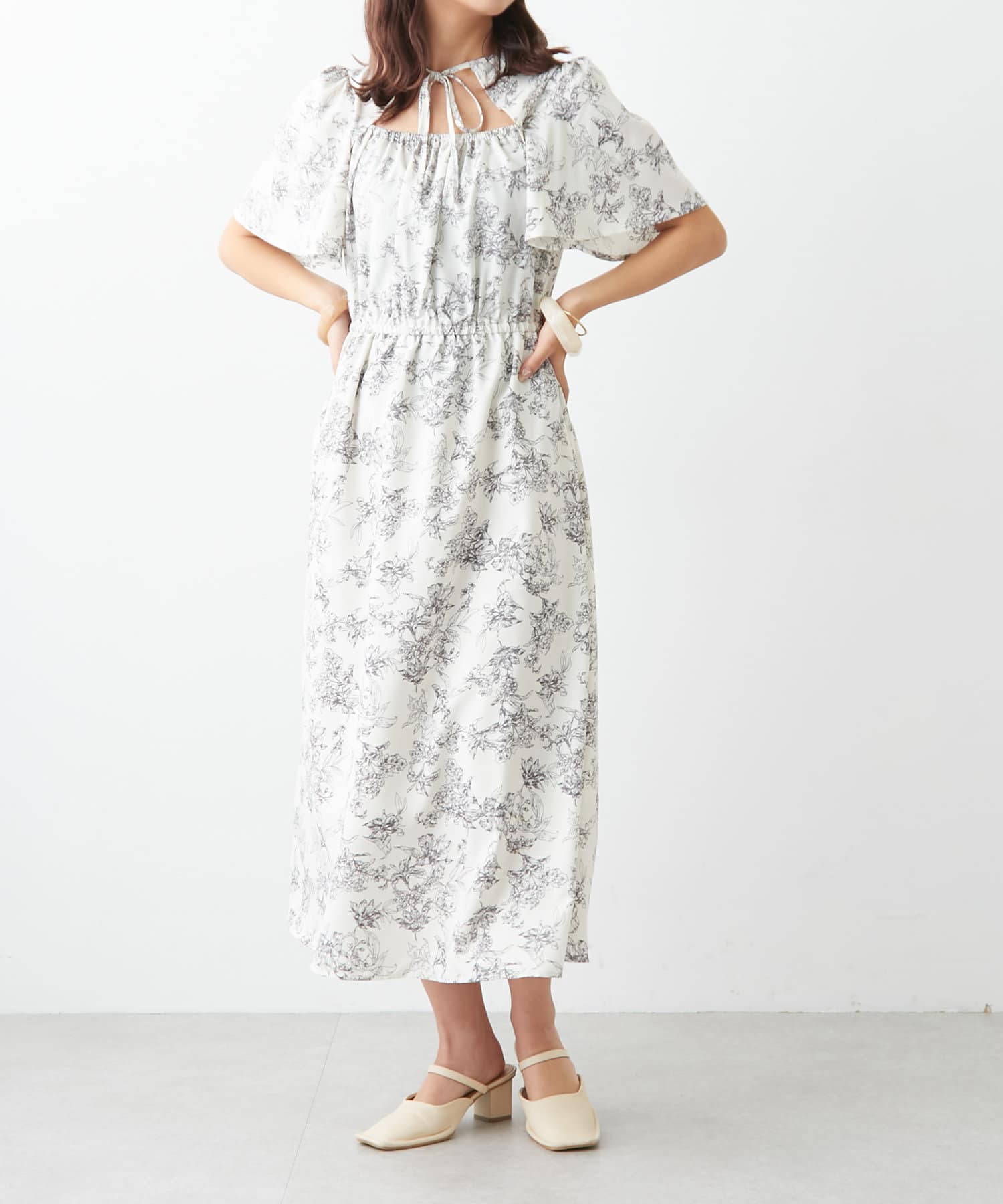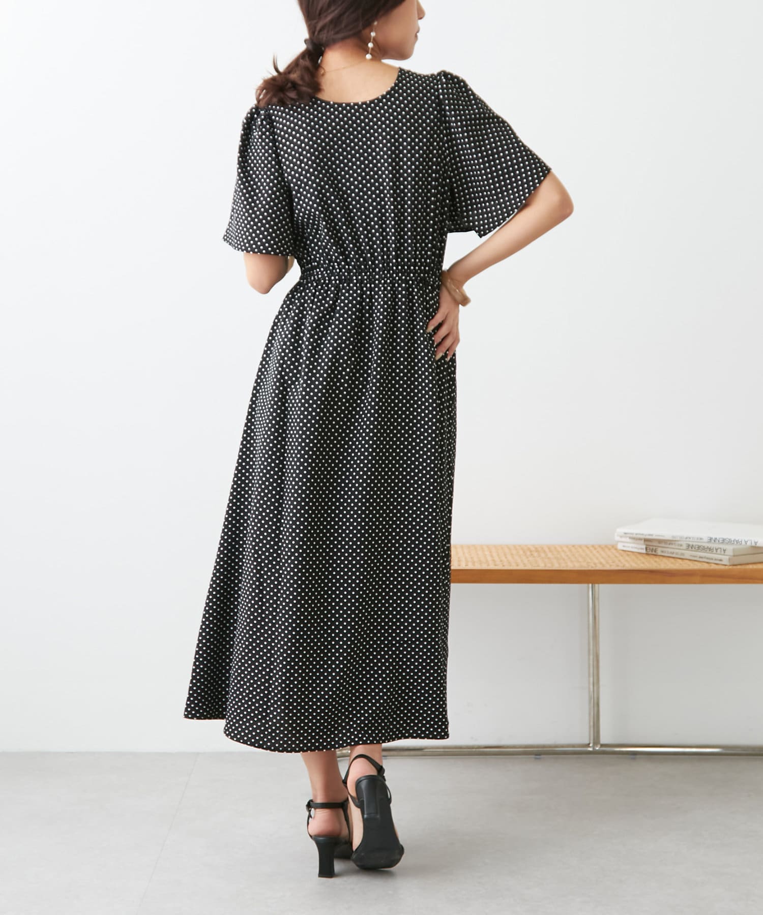・胸元が開いたデザインでさりげない肌見せができるワンピース