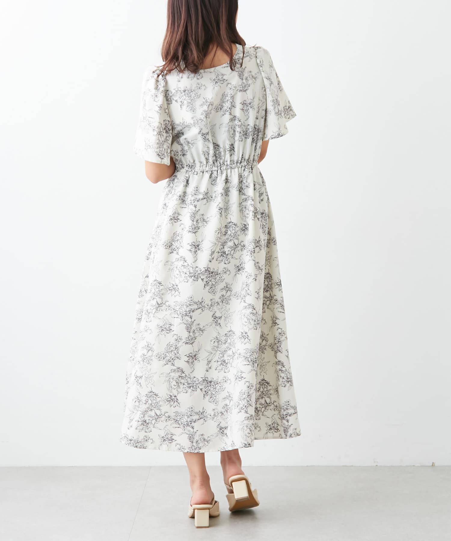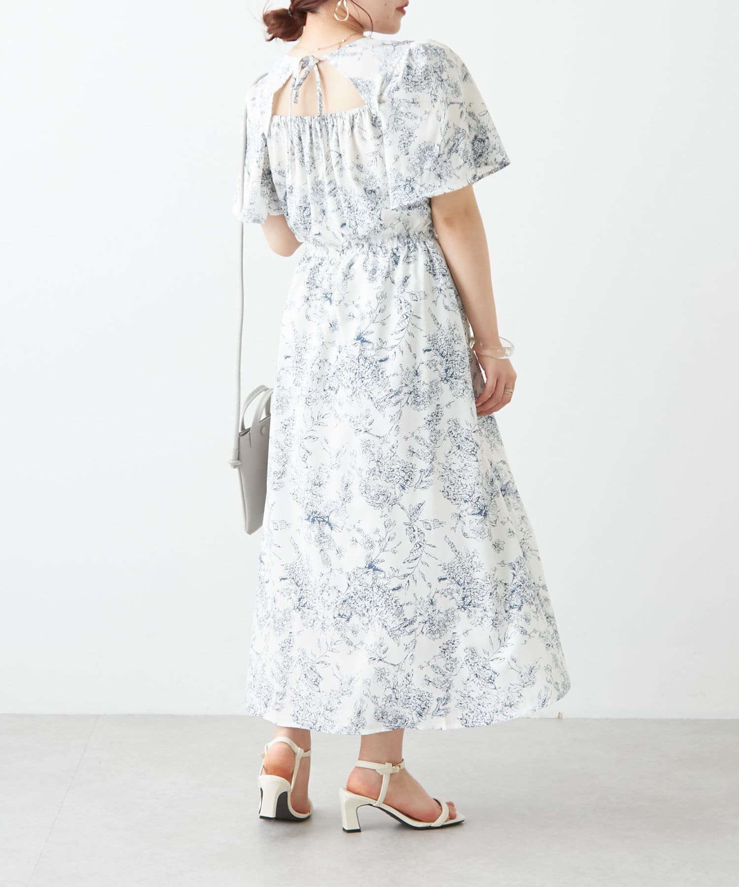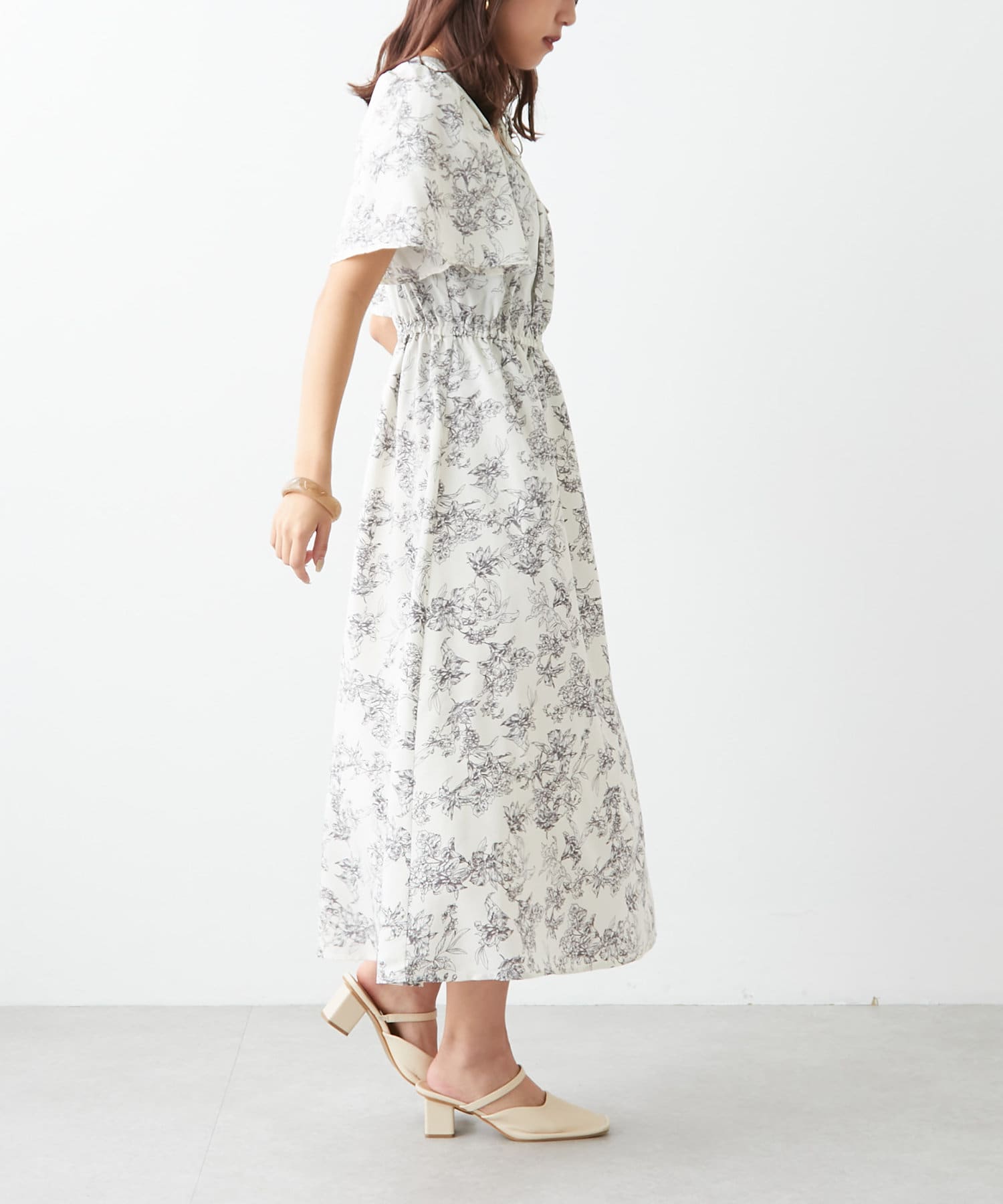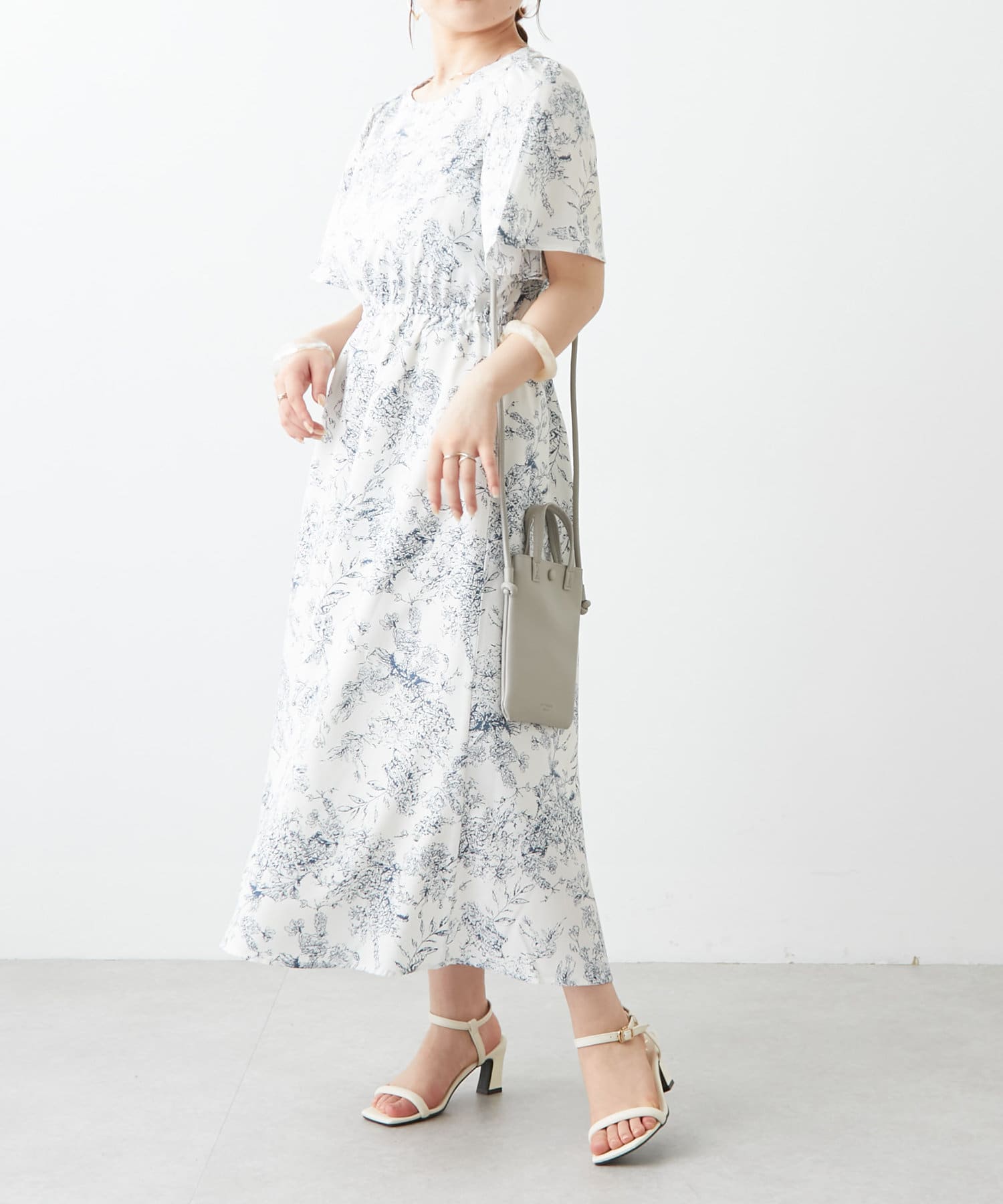 ・胸元が開いたデザインでさりげない肌見せができるワンピース