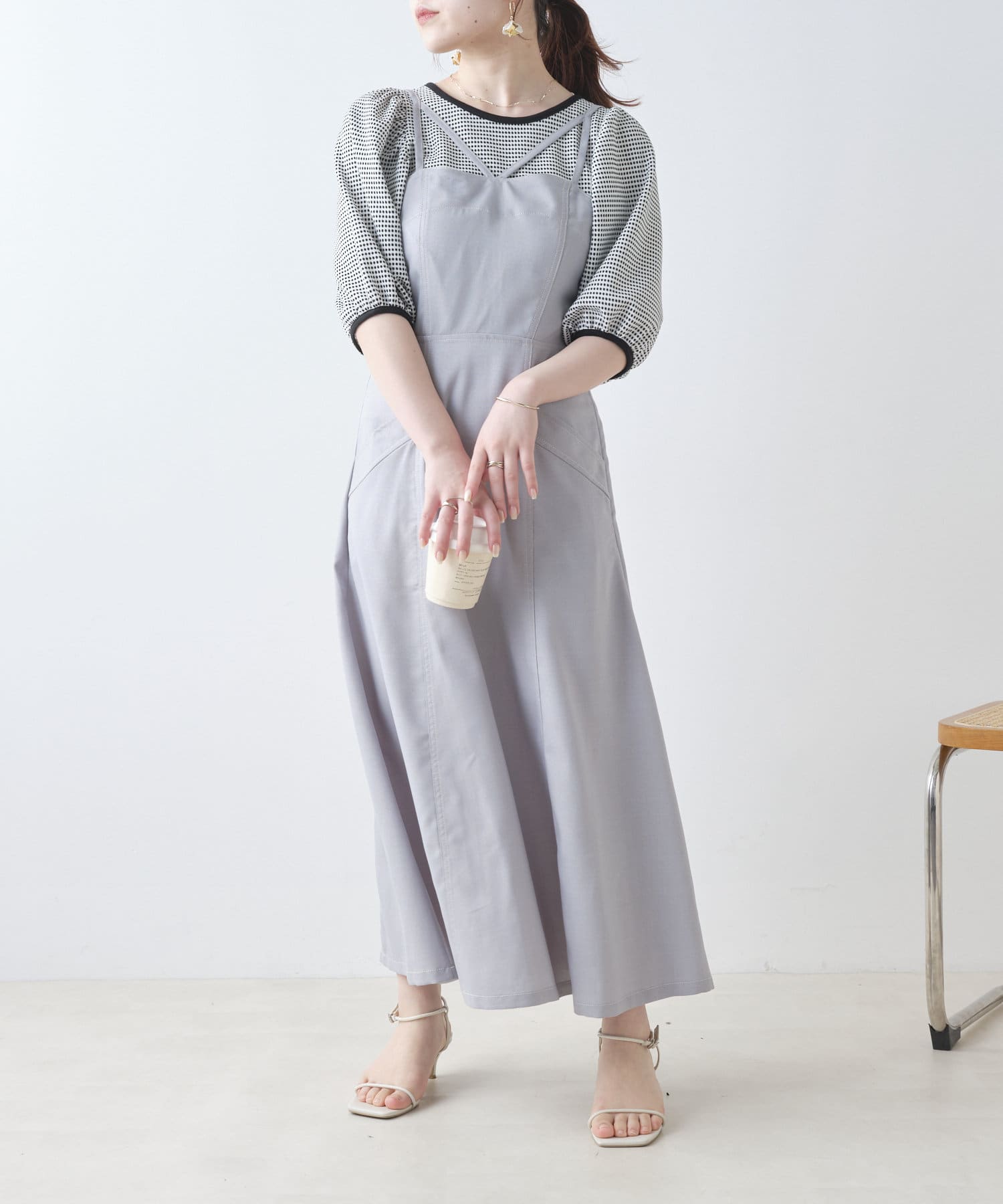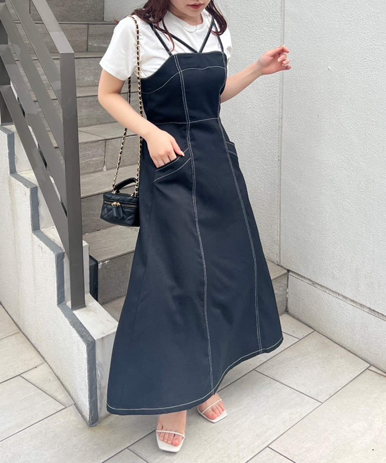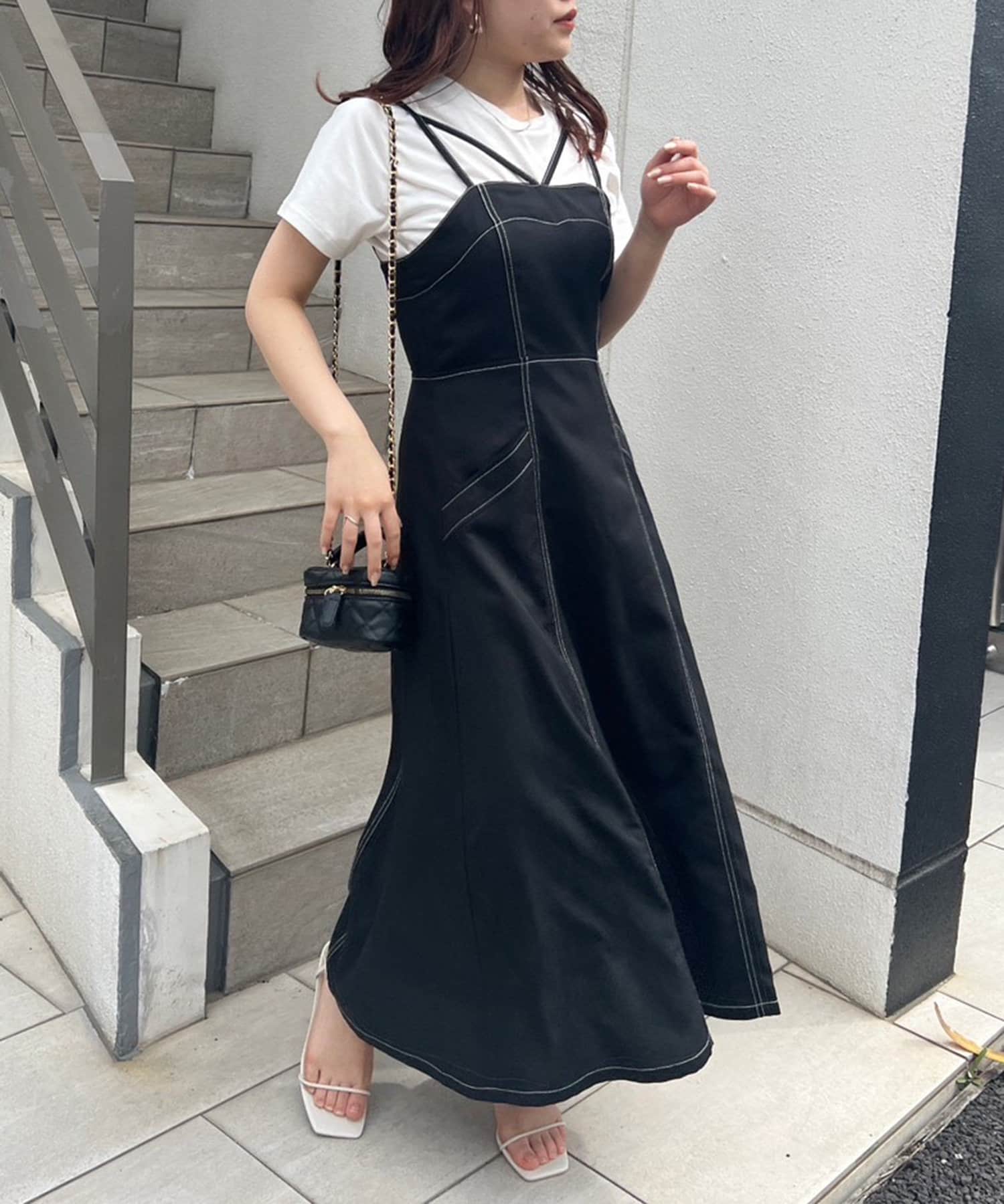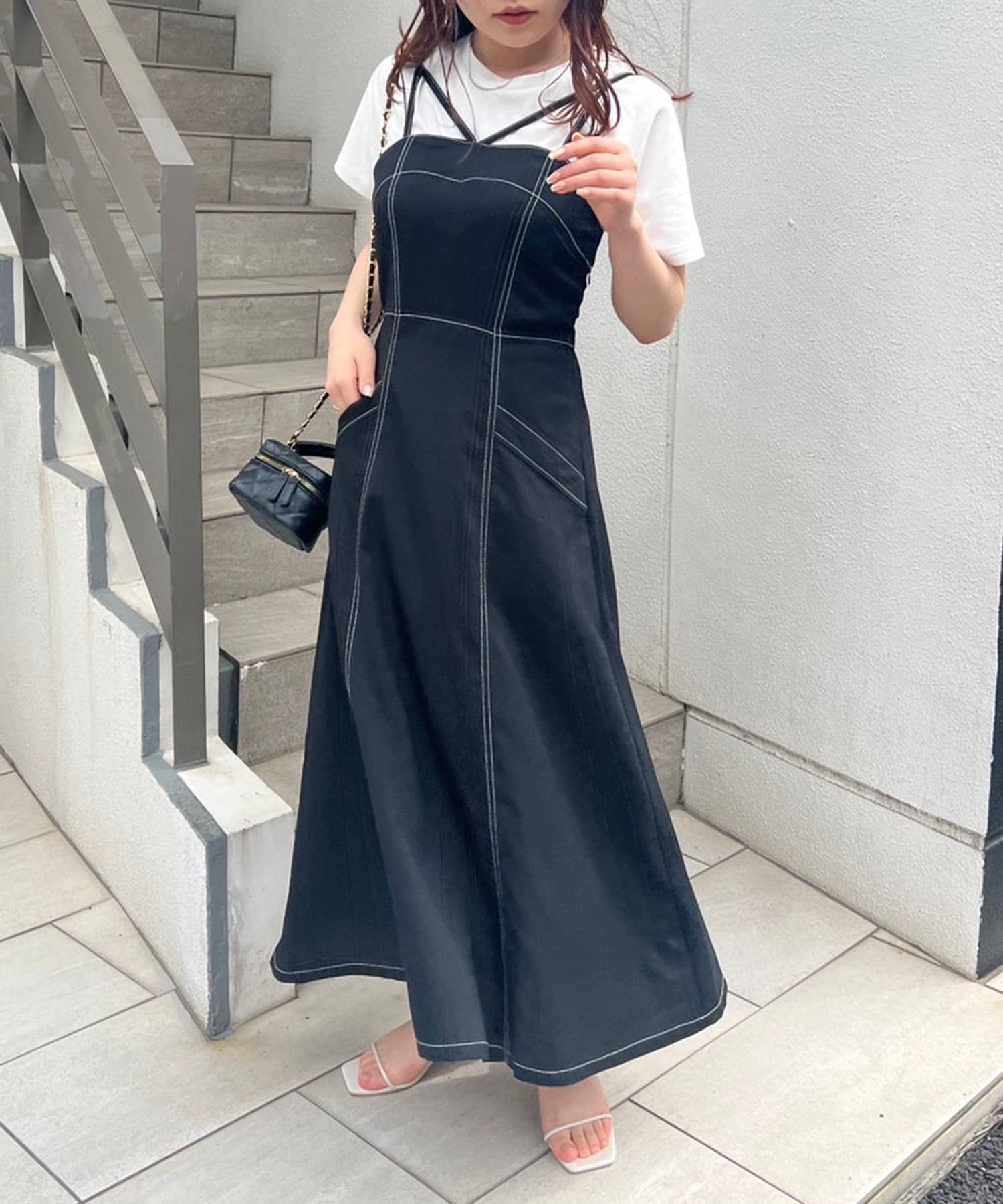 ・メリハリのある美しいシルエットのマーメイドデザインが可愛いキャミソールロングワンピース。