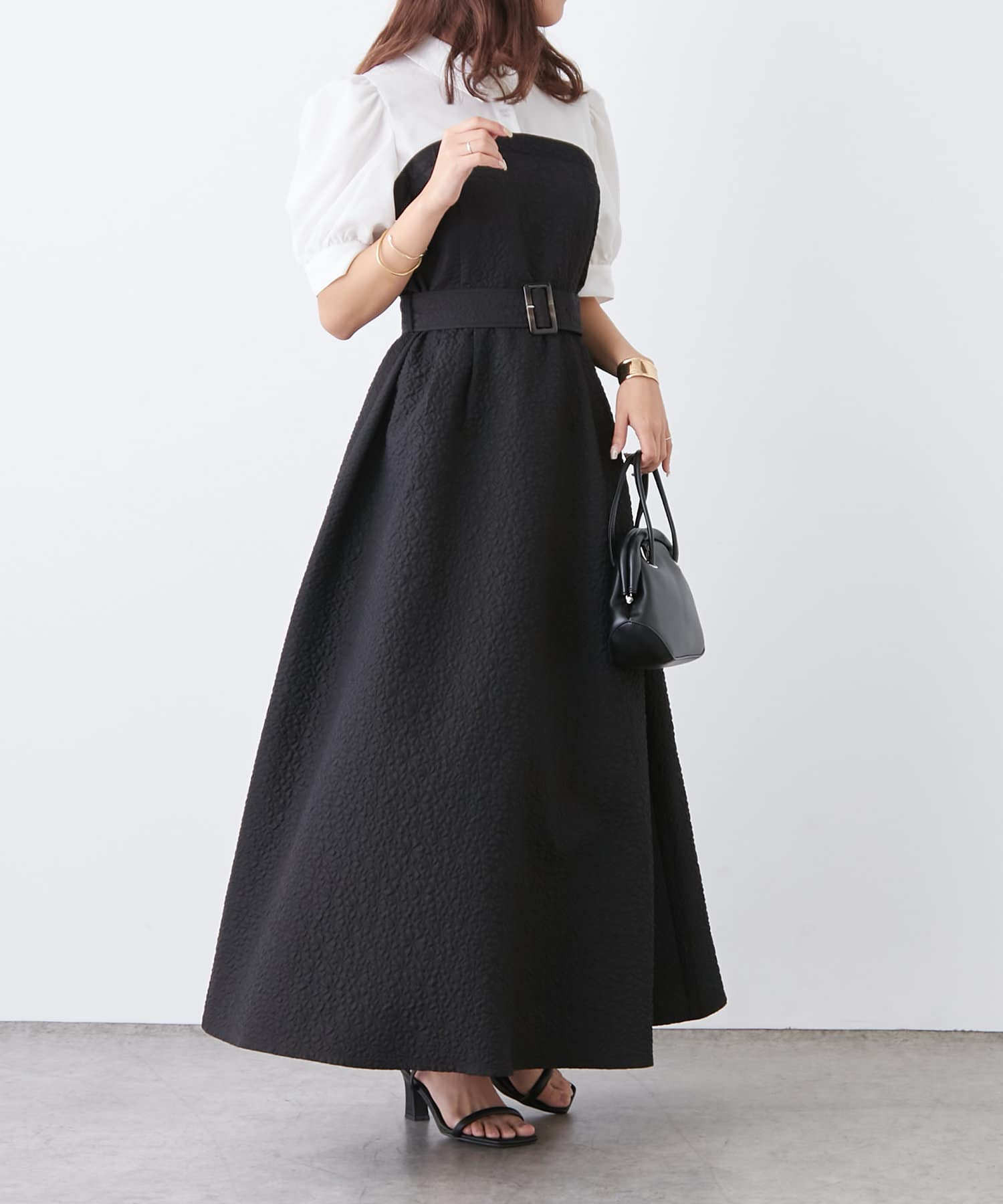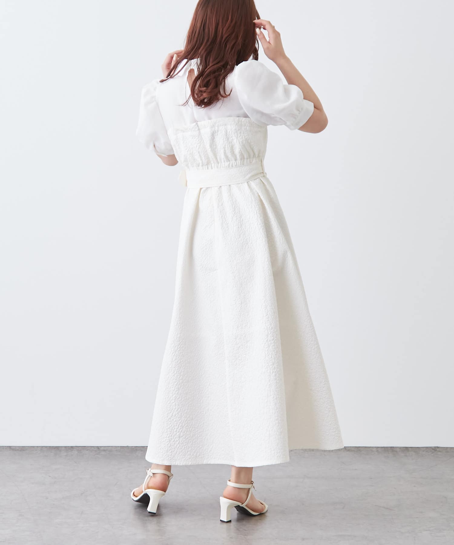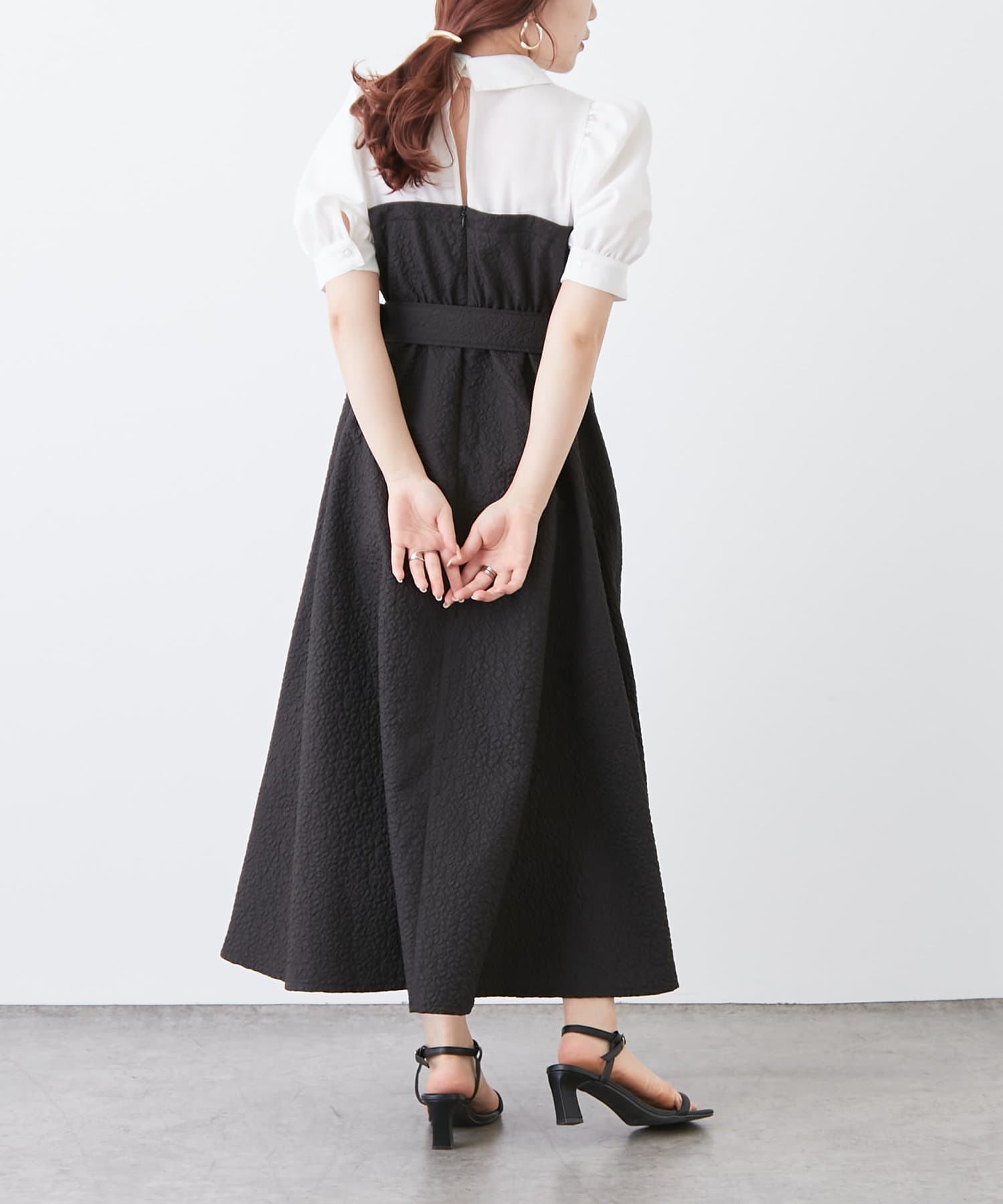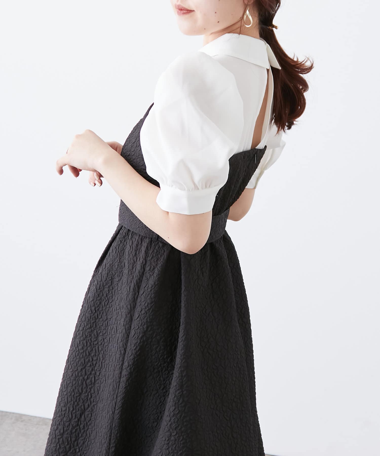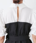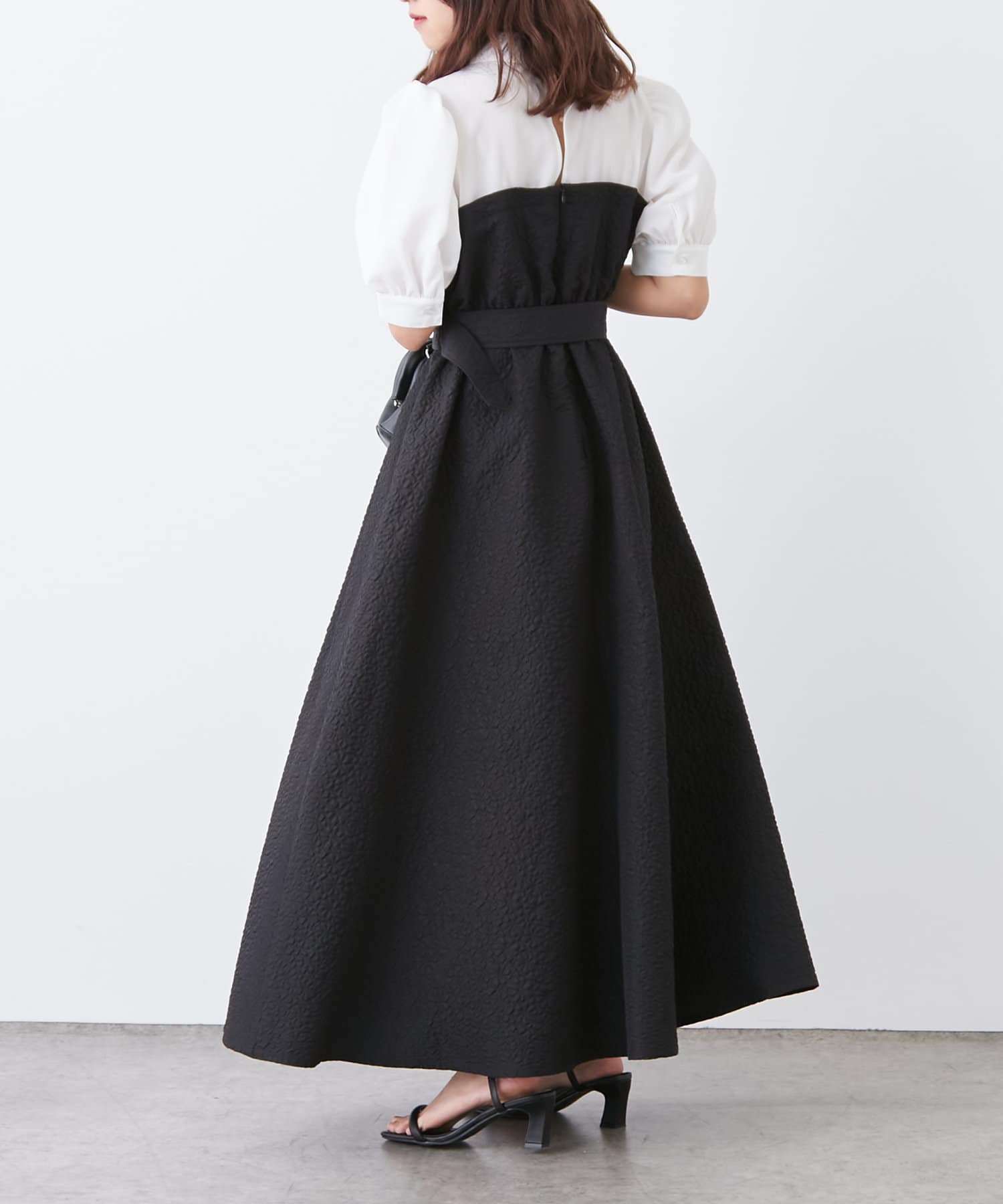 ・サイズごとにコルセットディティールも拘りました。ウエストベルト、袖ボリューム、襟元のバックスリットなど女性らしさを高めるディテールが満載の1枚です。