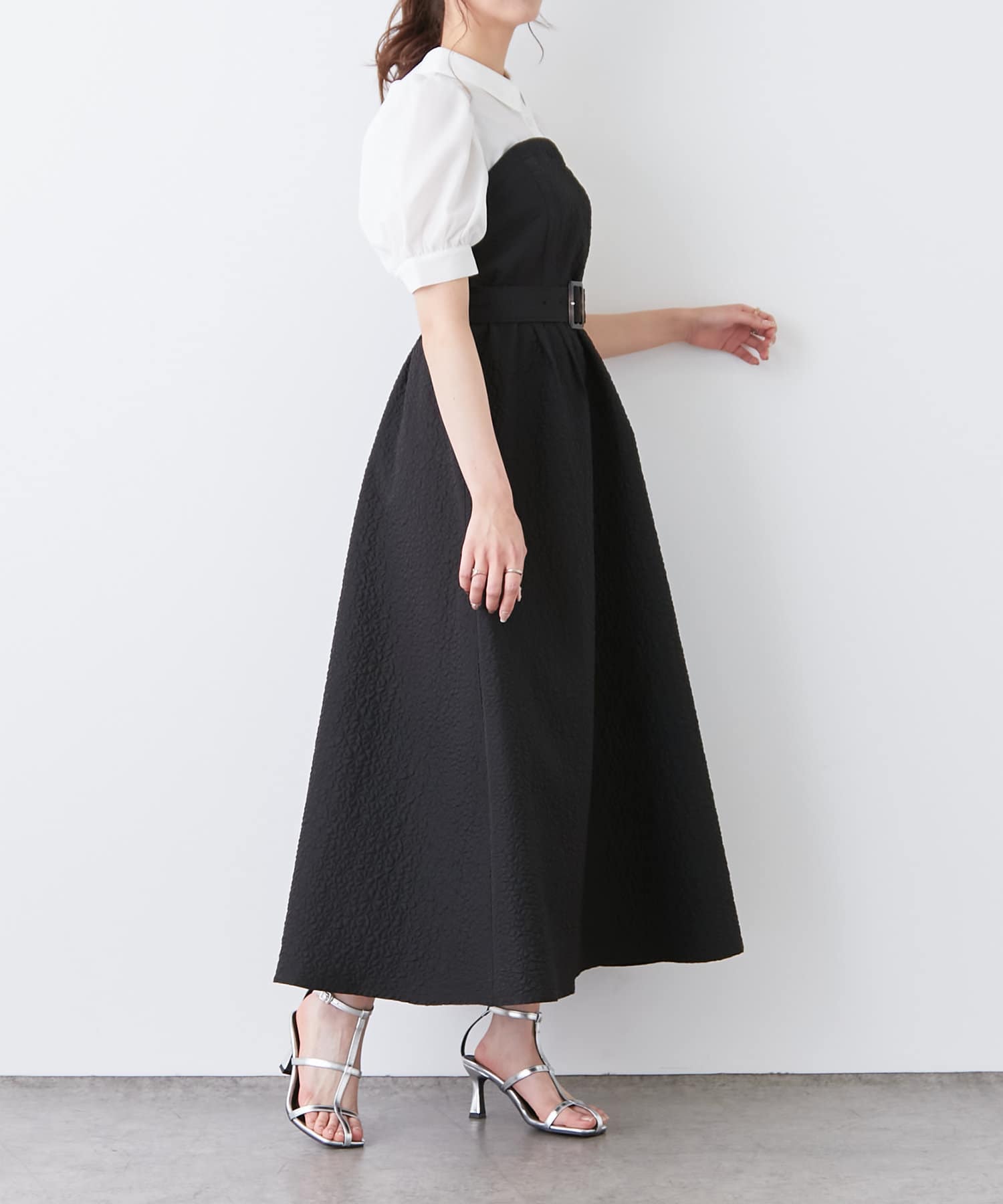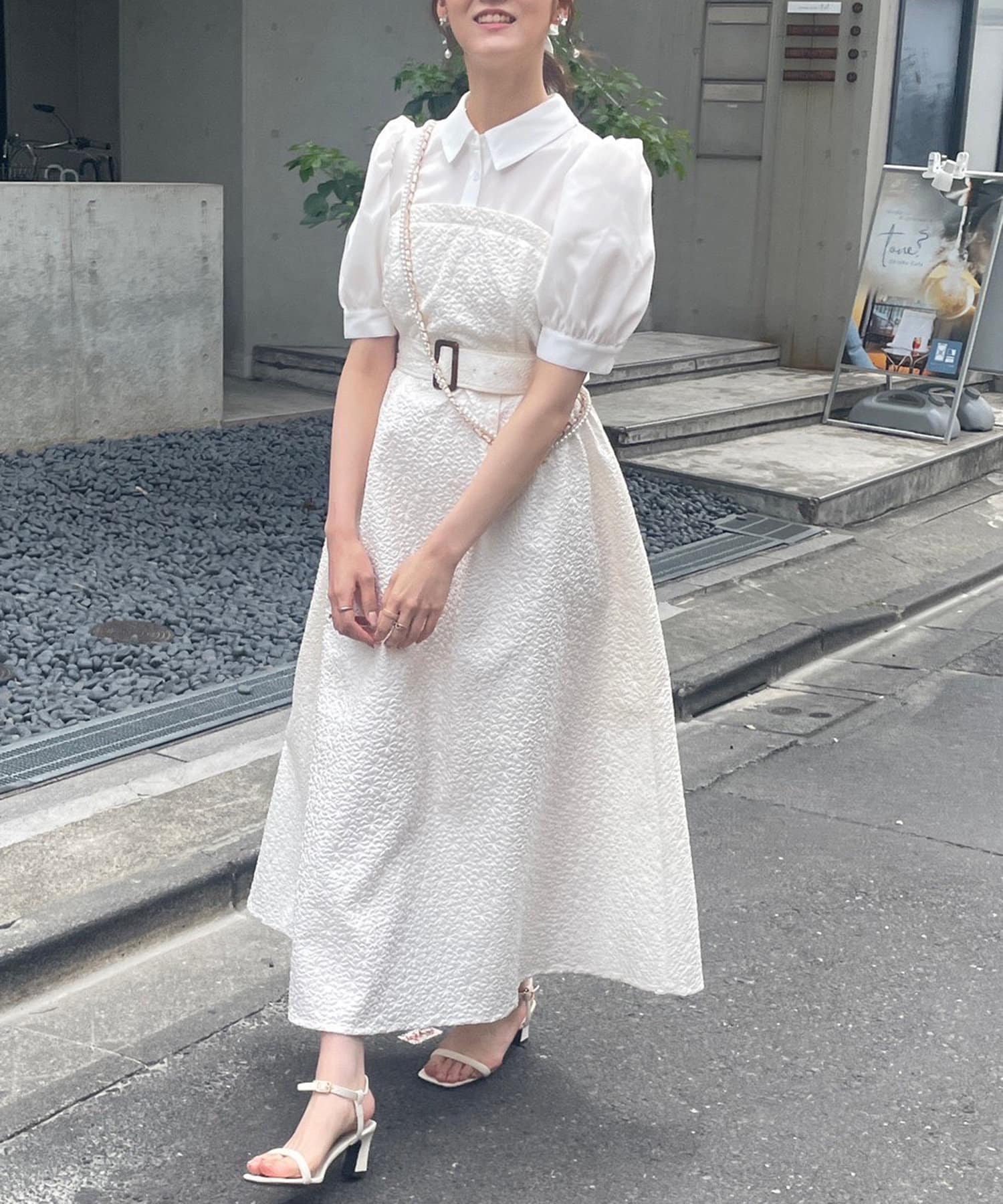 ・ワンピ部分には表情感のある上品なジャガード織りを使用し華やかな印象に。