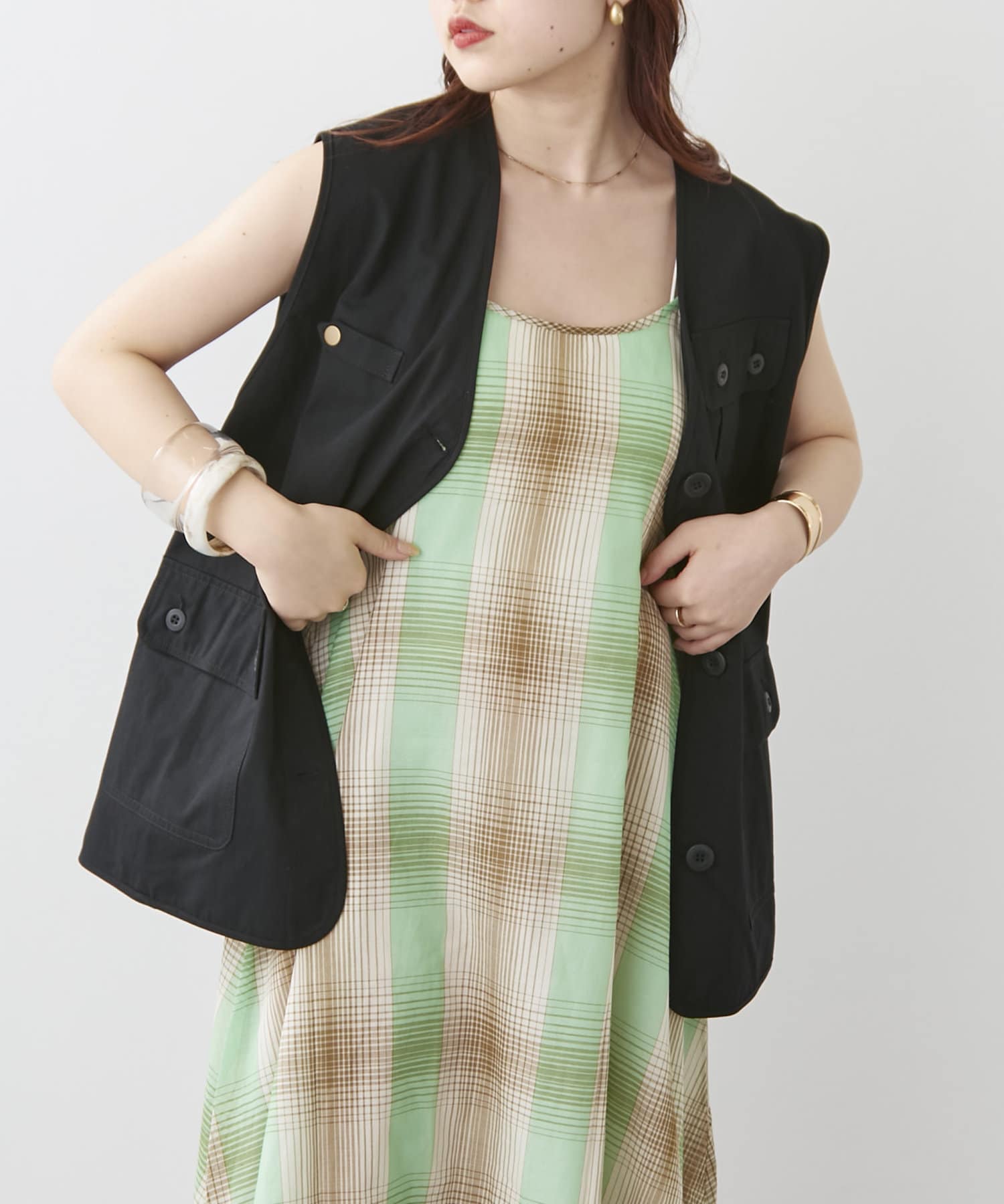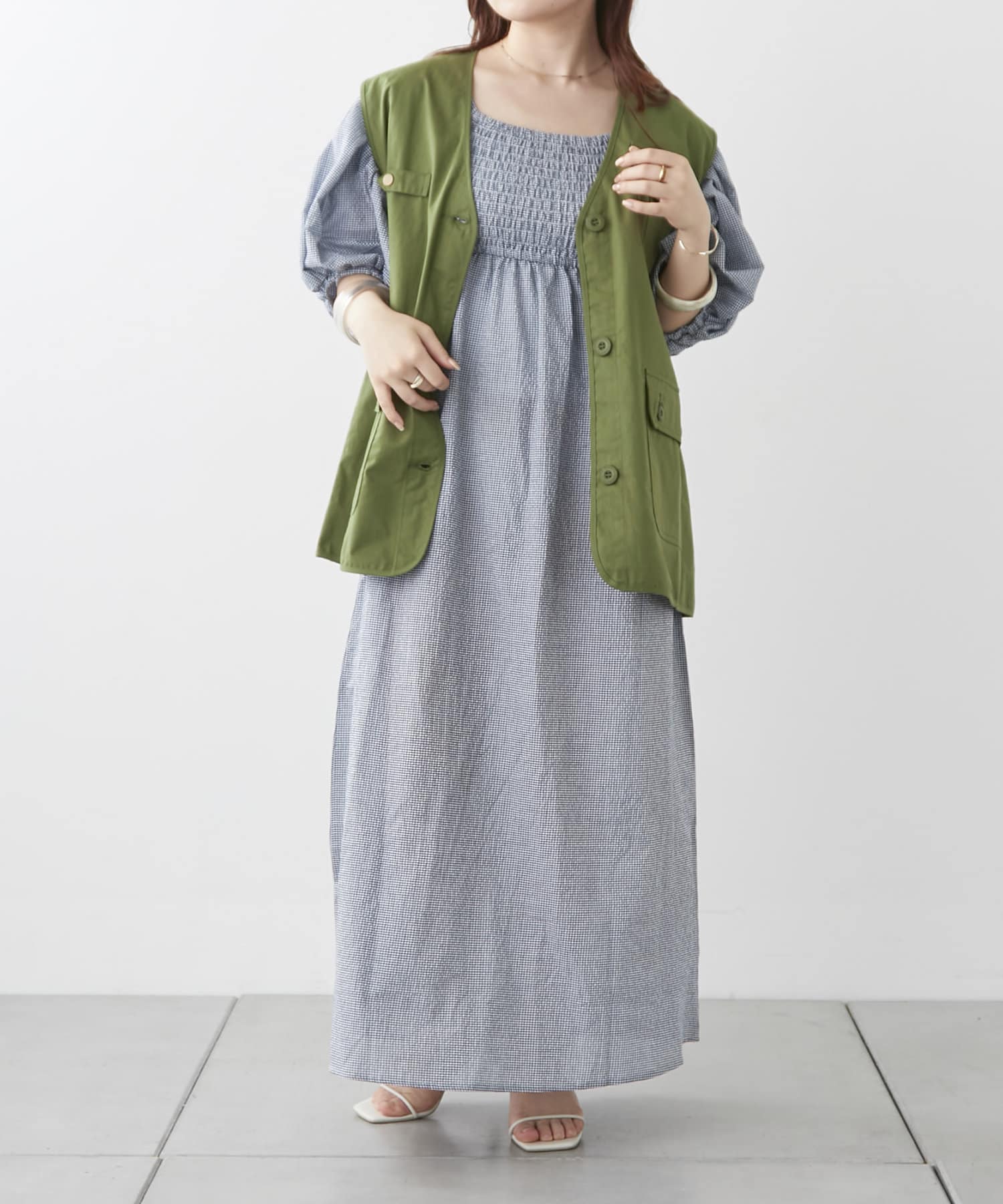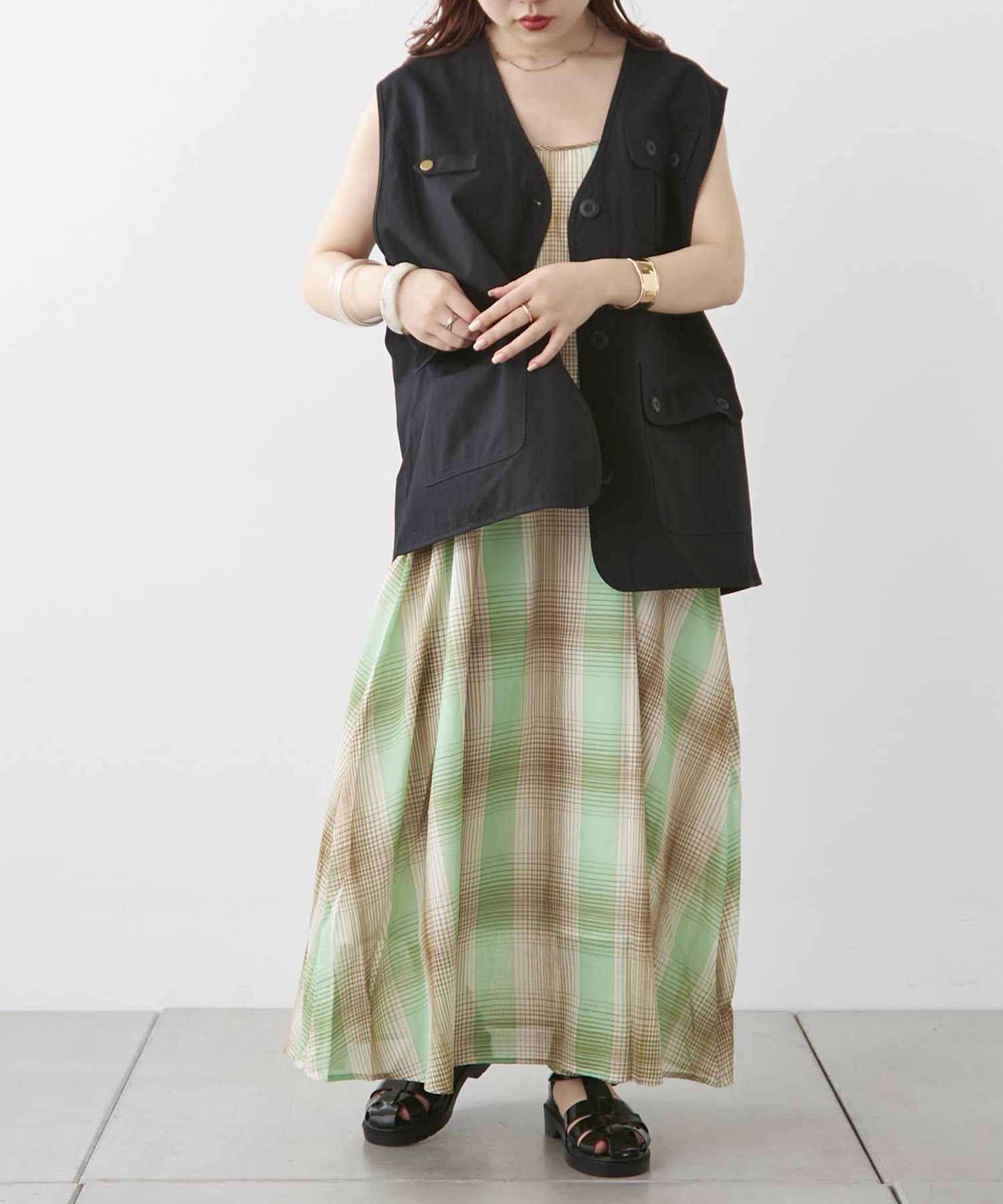 ・女性らしくキャミワンピースにサンダル合わせもワンランクこなれた印象になります。