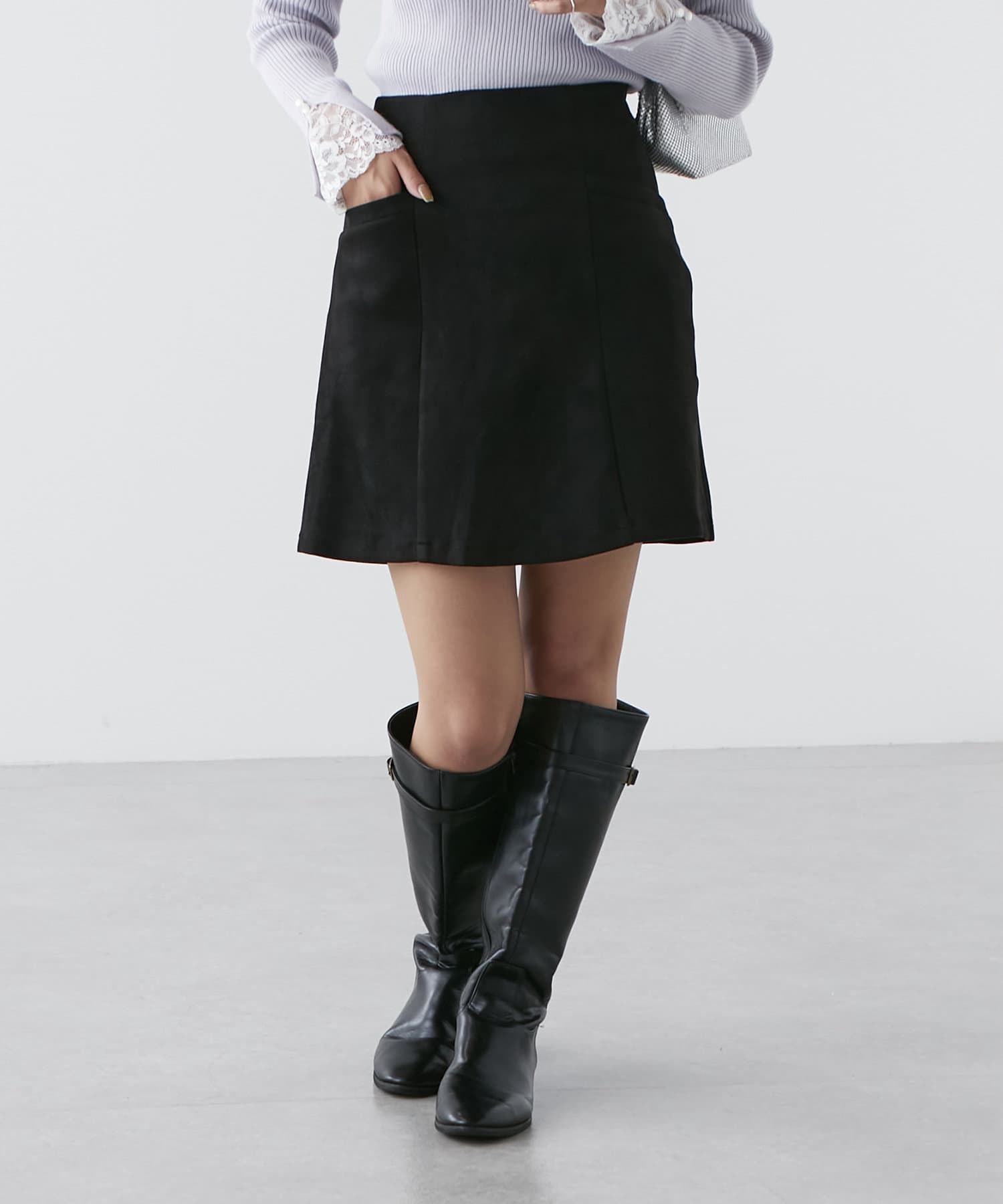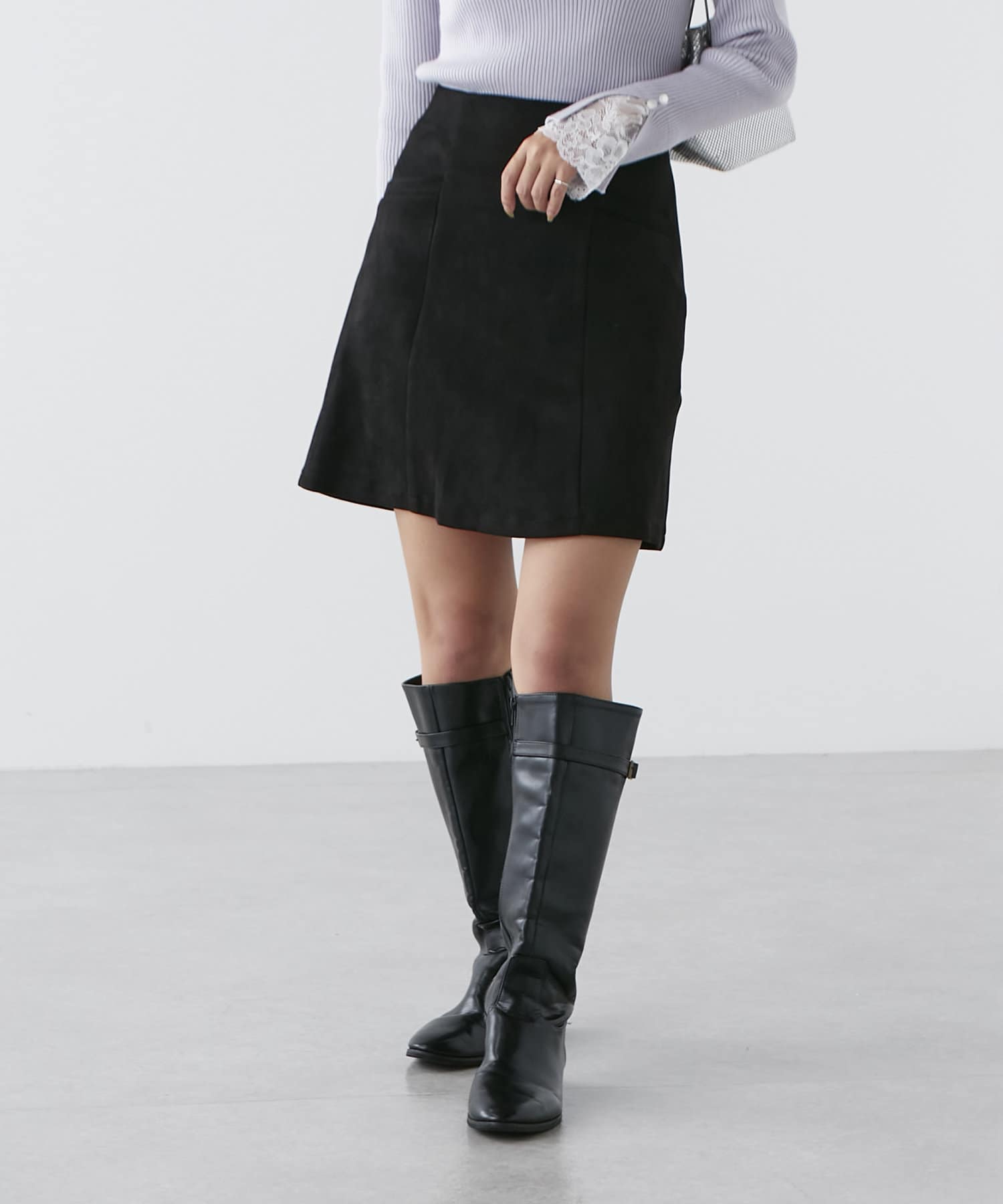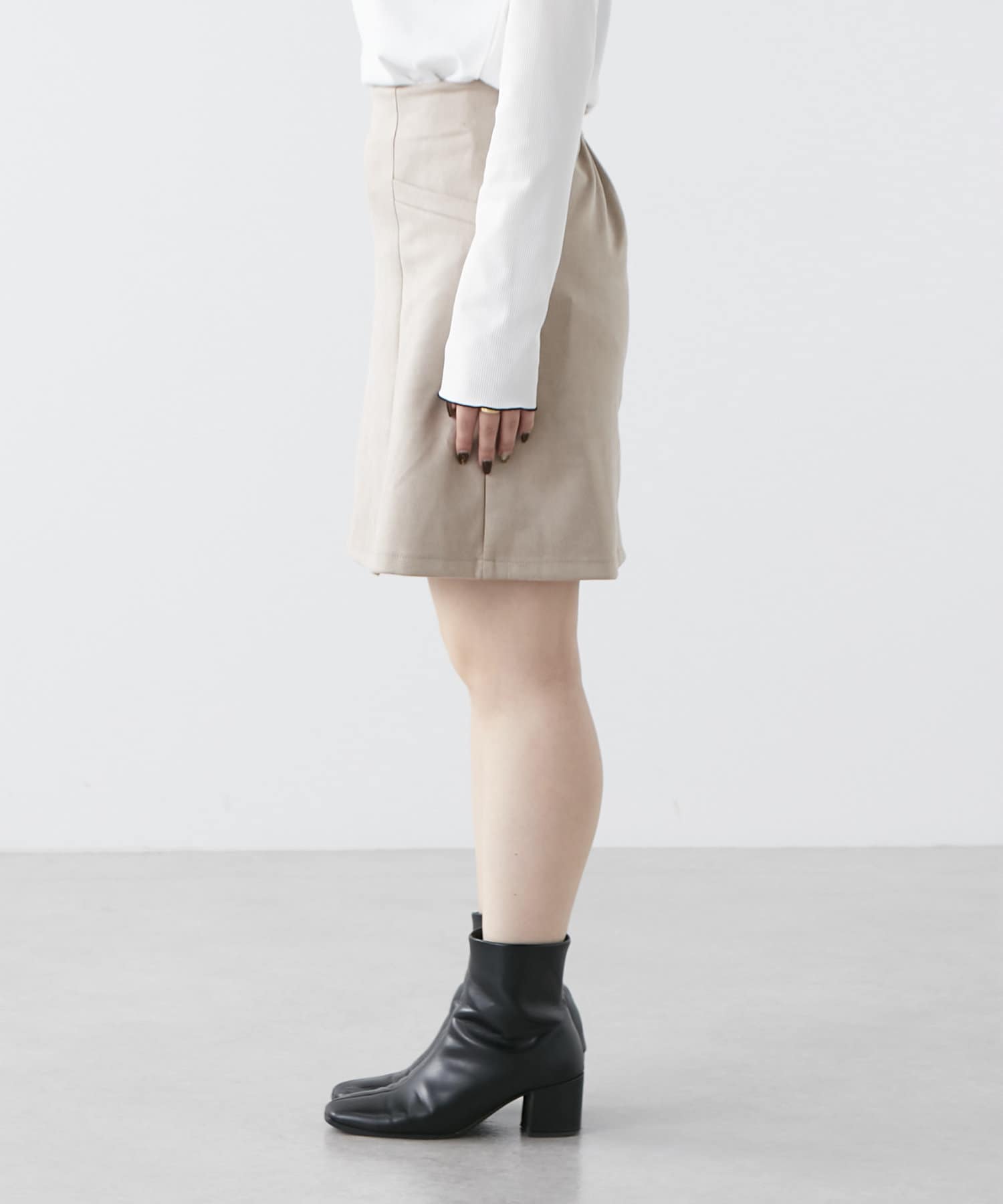 ・秋冬らしい素材感のスエードポンチミニスカート