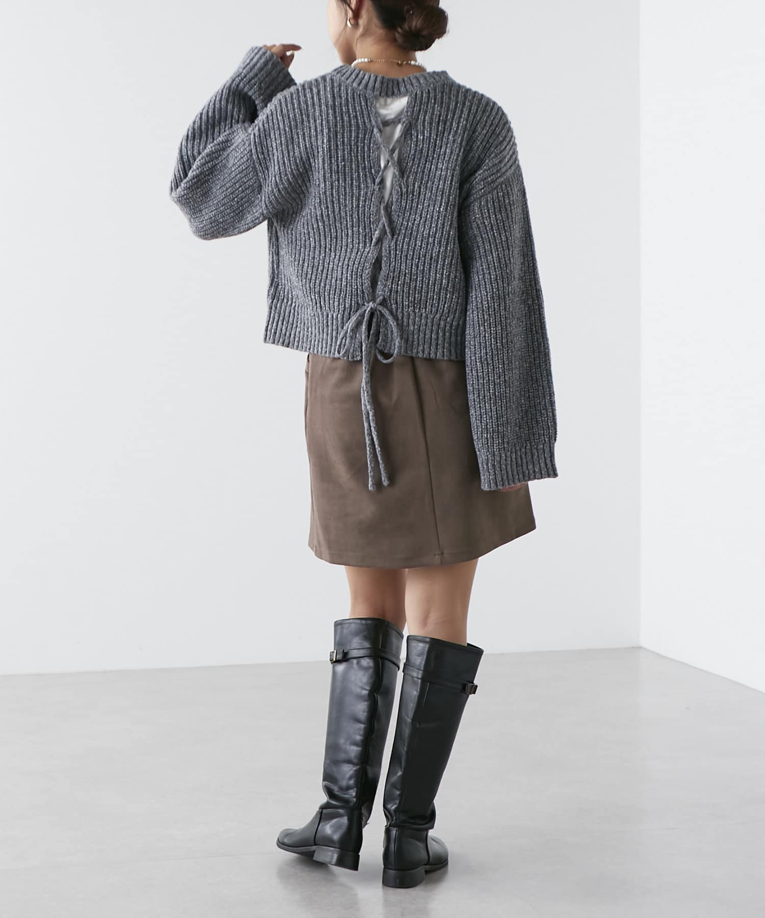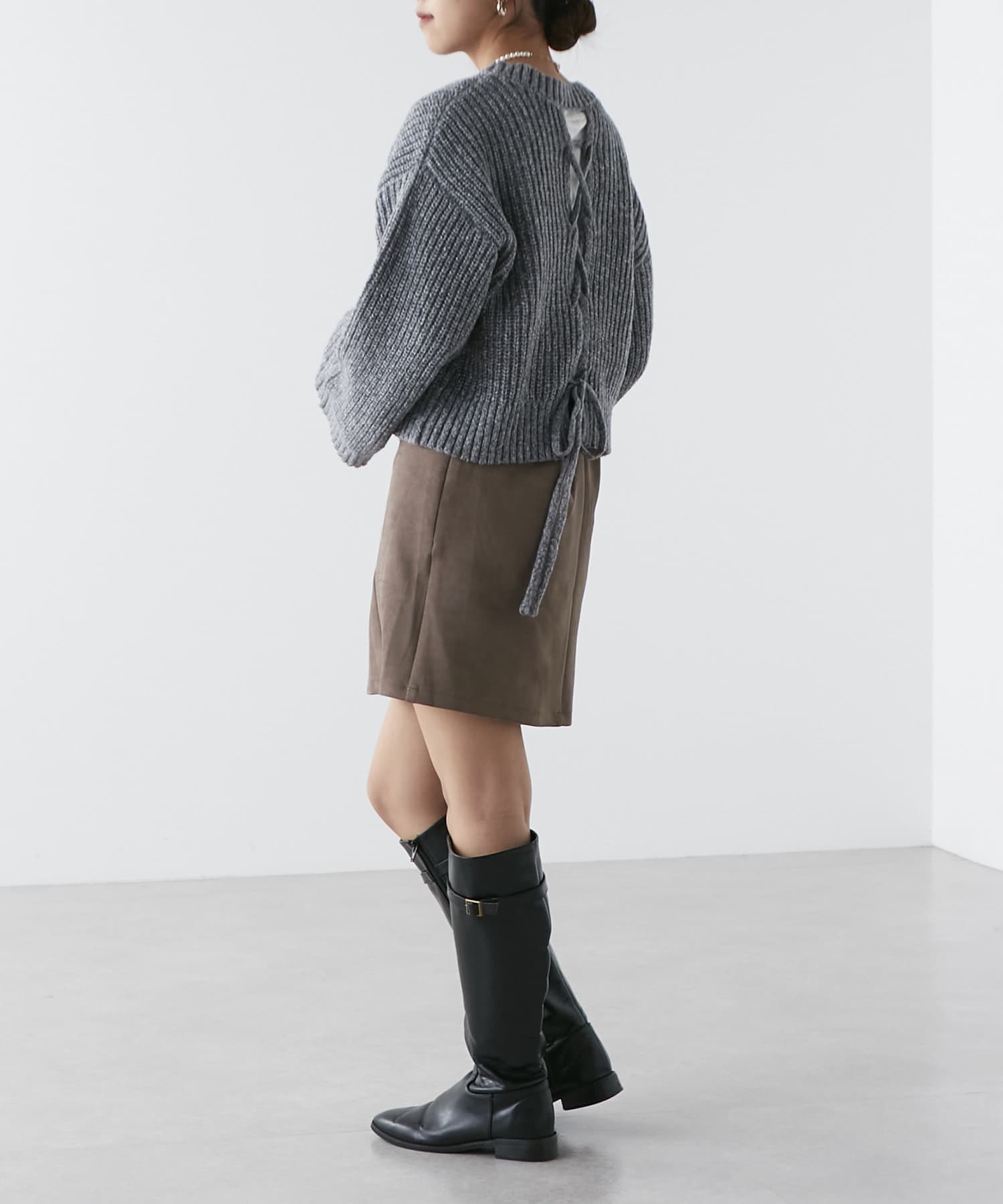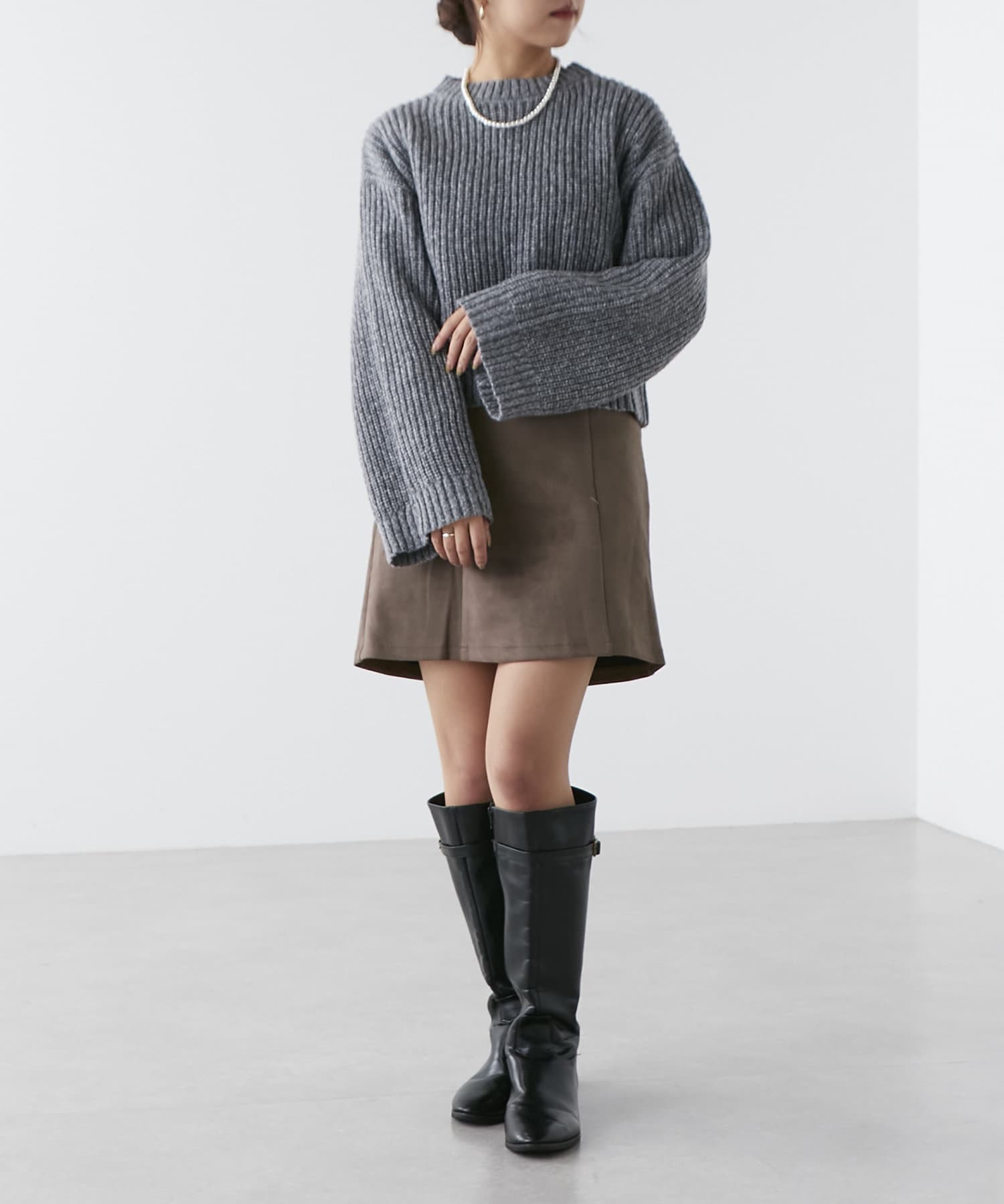 ・秋冬らしい素材感のスエードポンチミニスカート