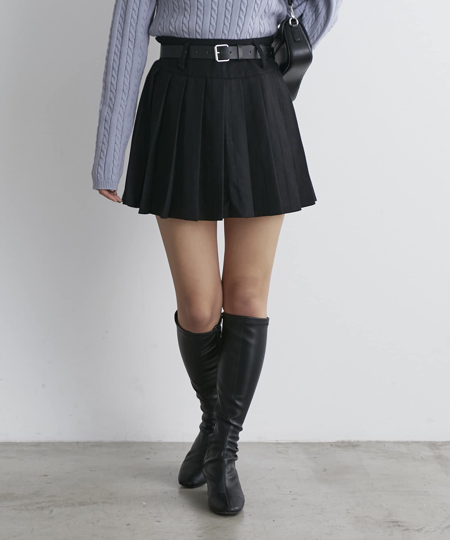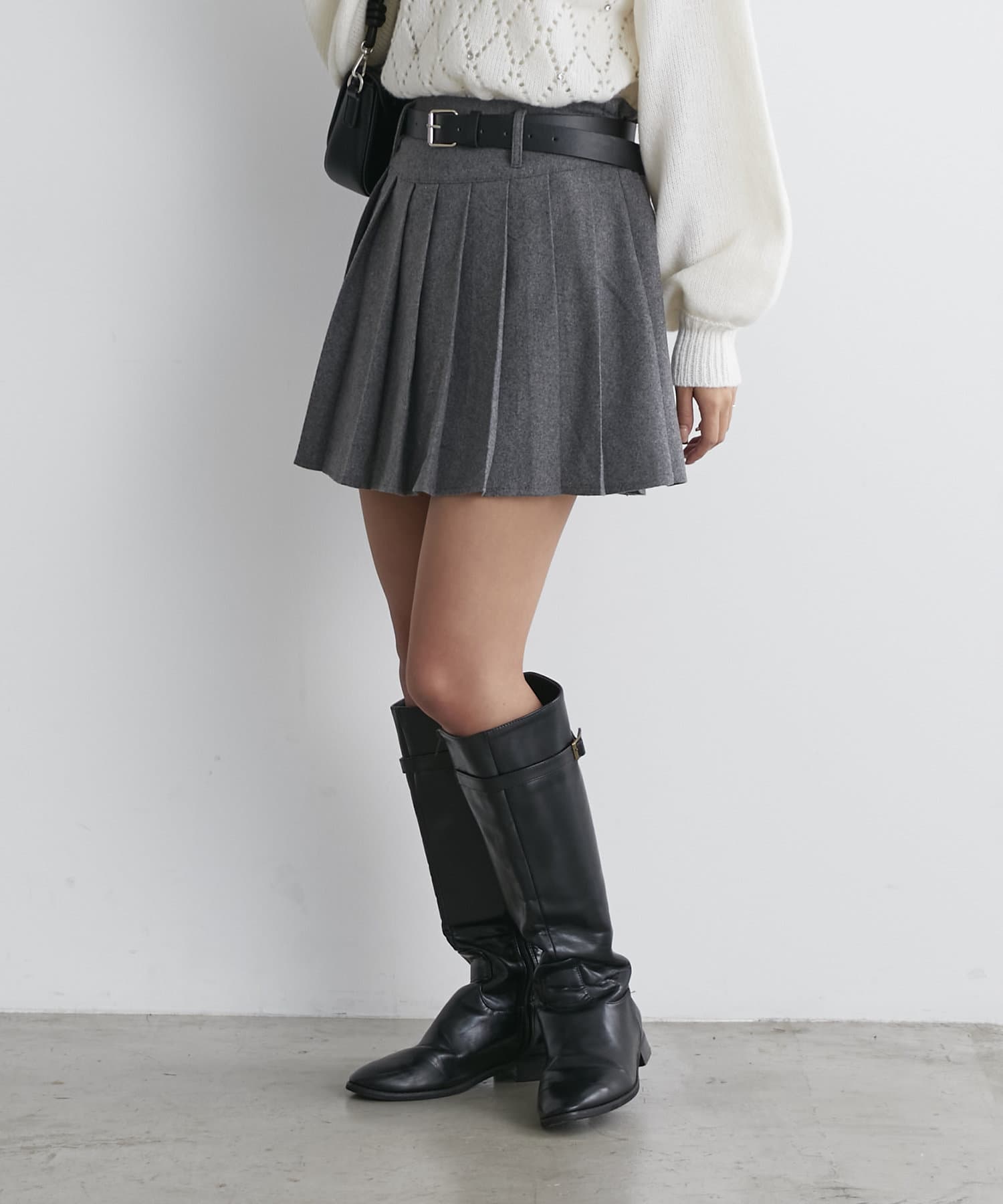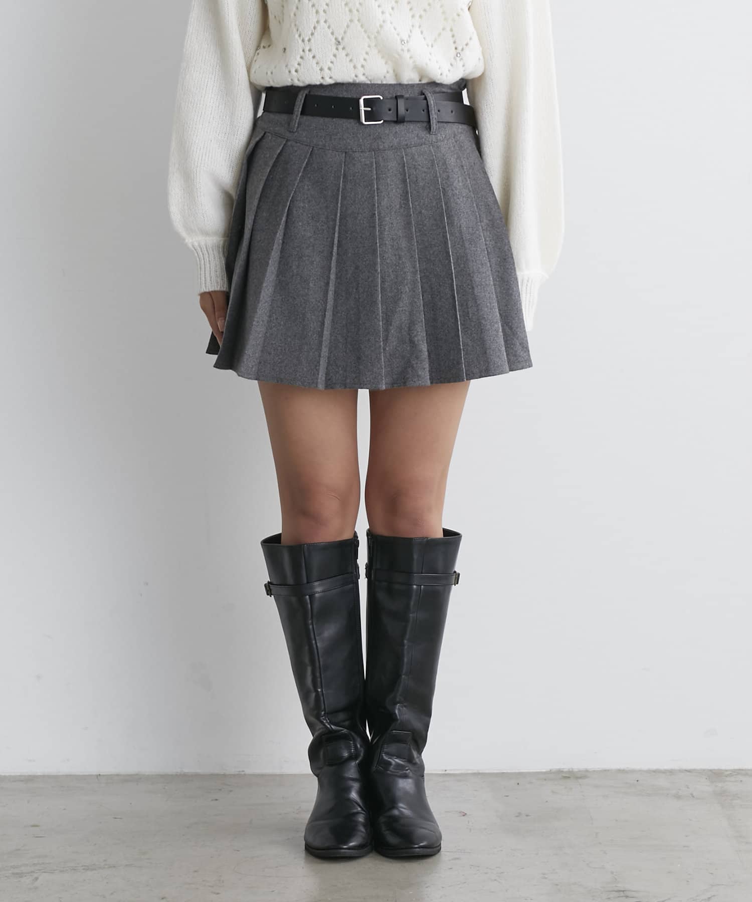ベルト付プリーツミニスカート
