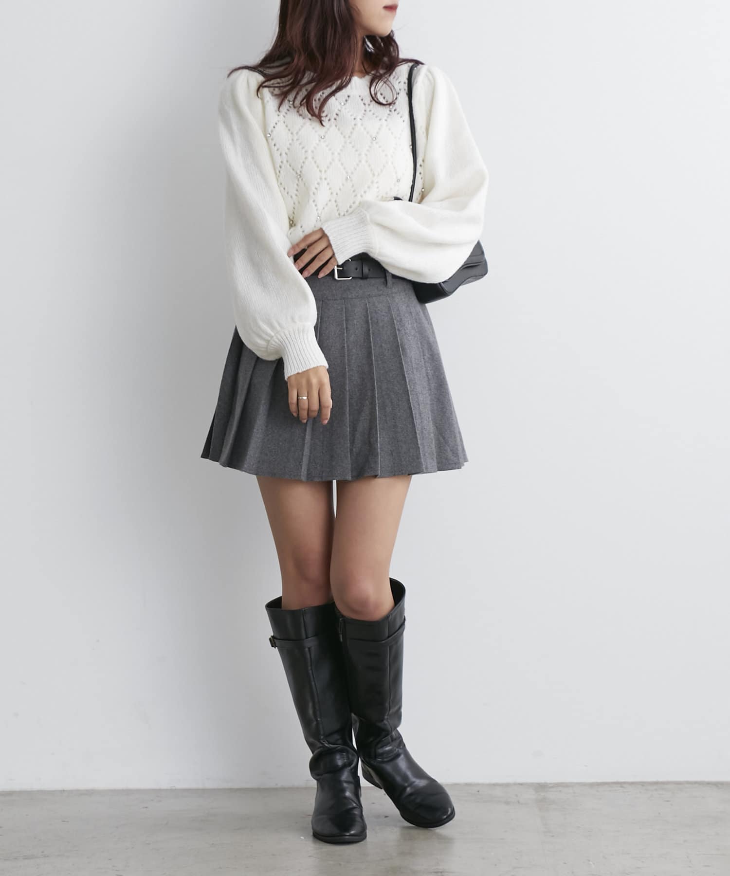 ・使いやすいベルトがセットになった、ミニ丈のプリーツスカート