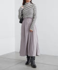 ・ハイウエストデザインなのでトップスインしてすっきり見えコーデがおすすめ