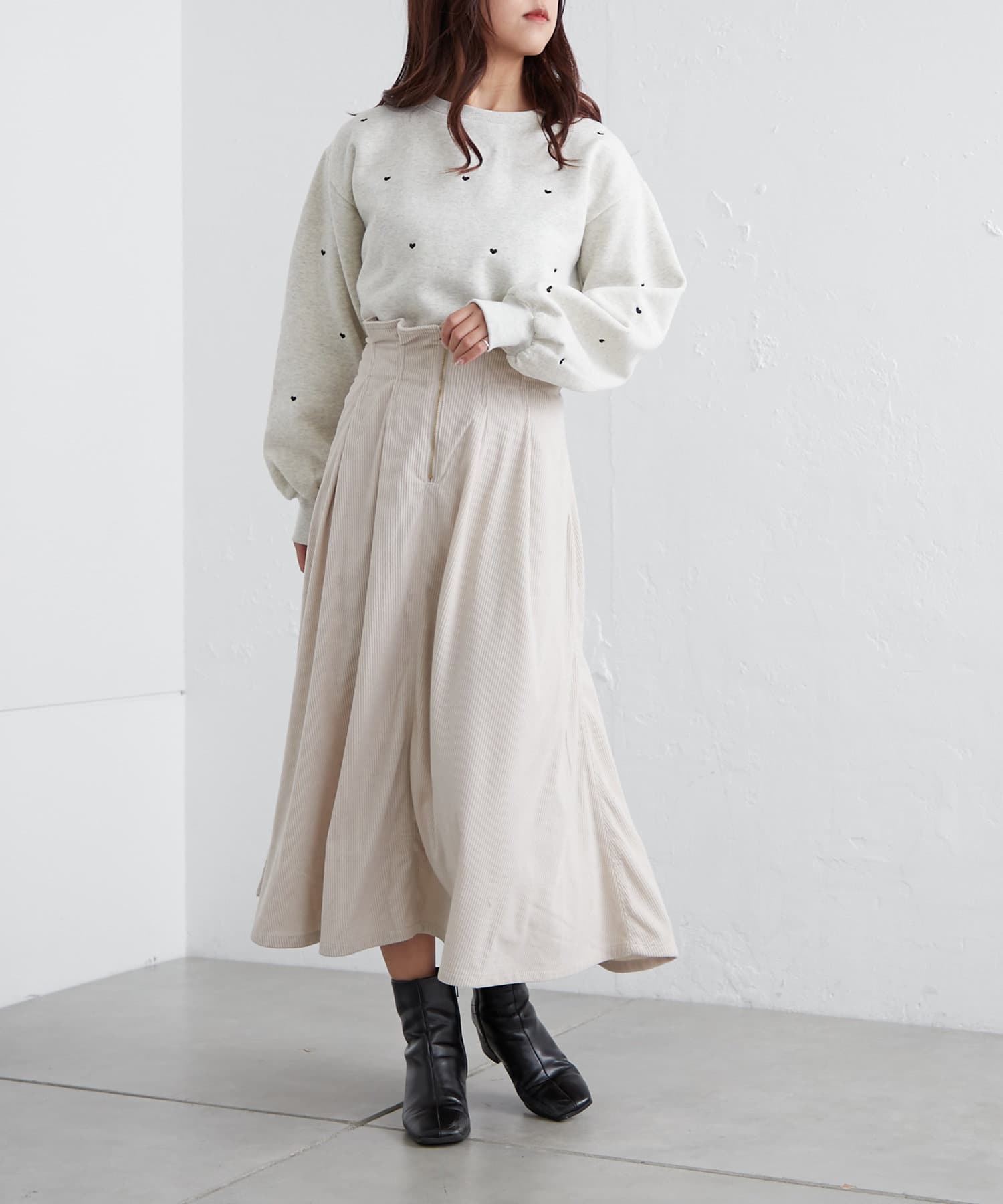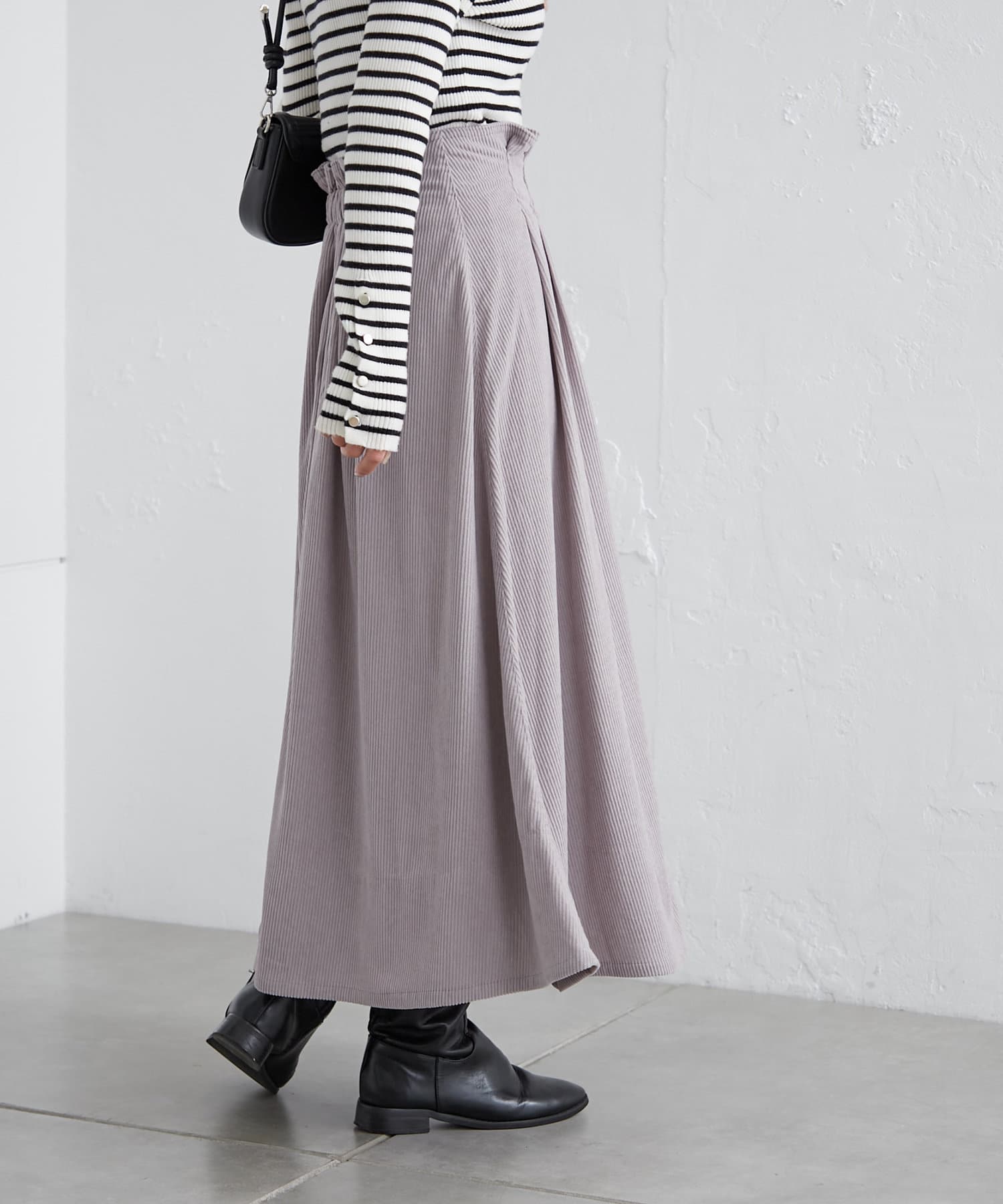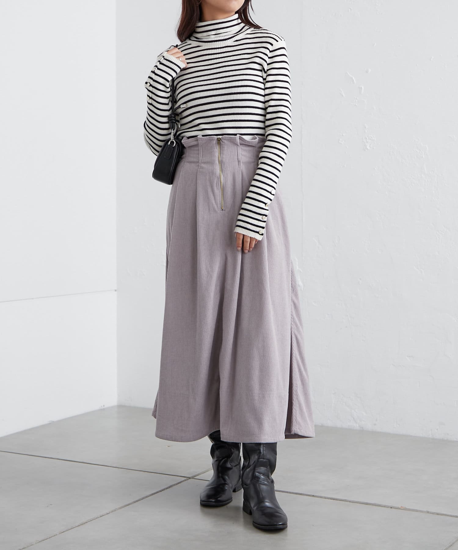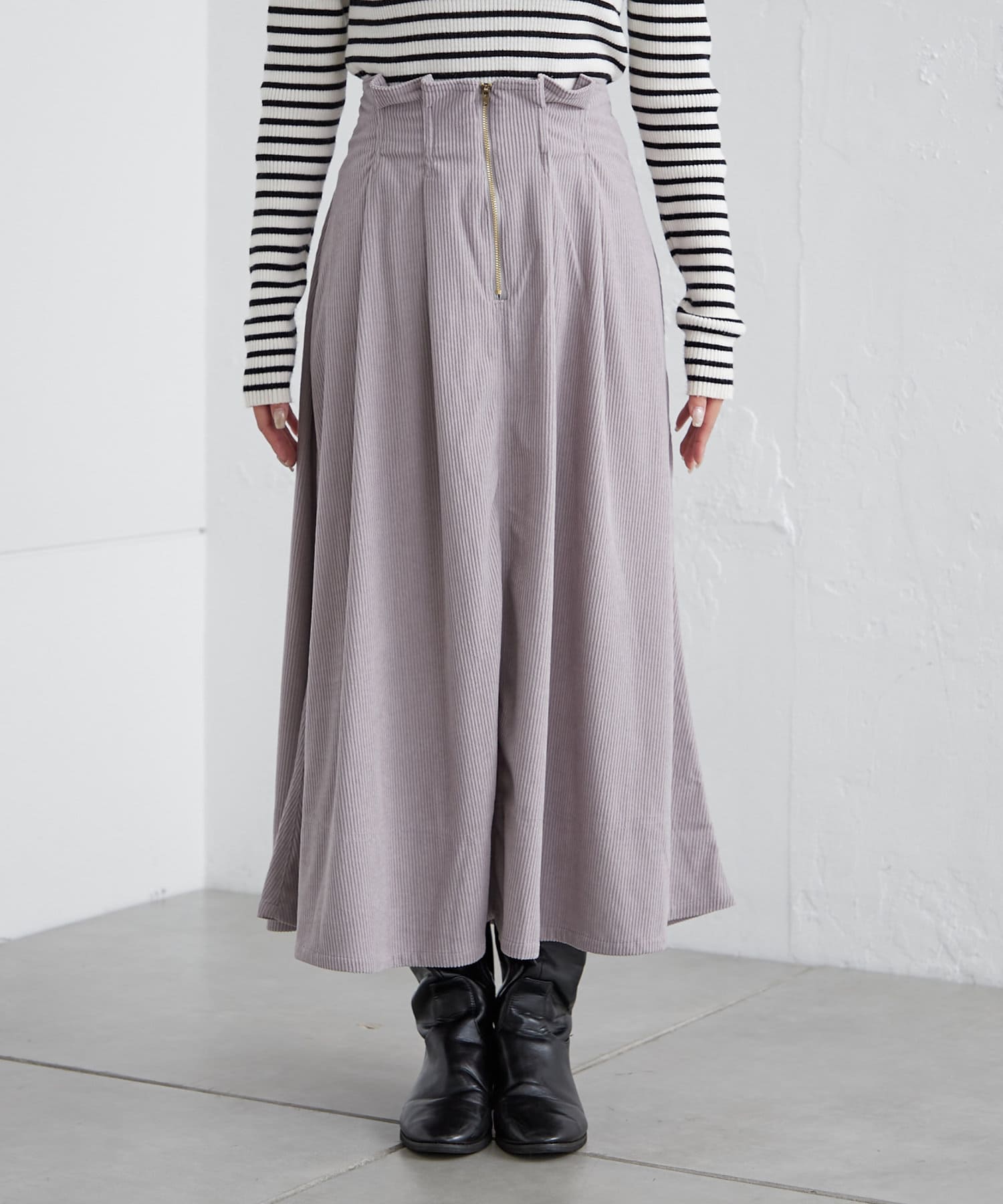 ・人気のフロントZIPデザインのスカートにコーデュロイ素材が登場
