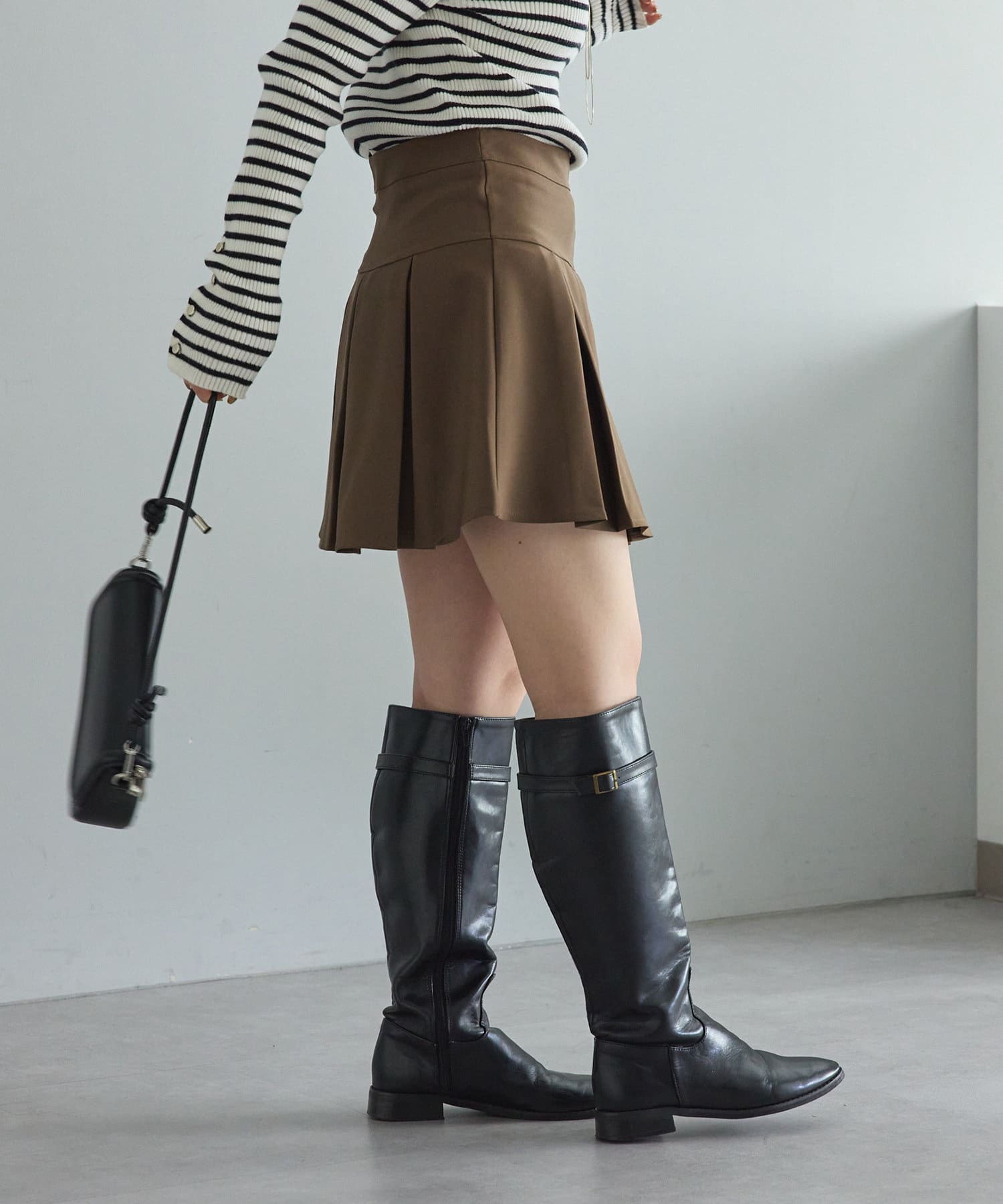 ・今年人気の太めのプリーツがプレッピーな印象に