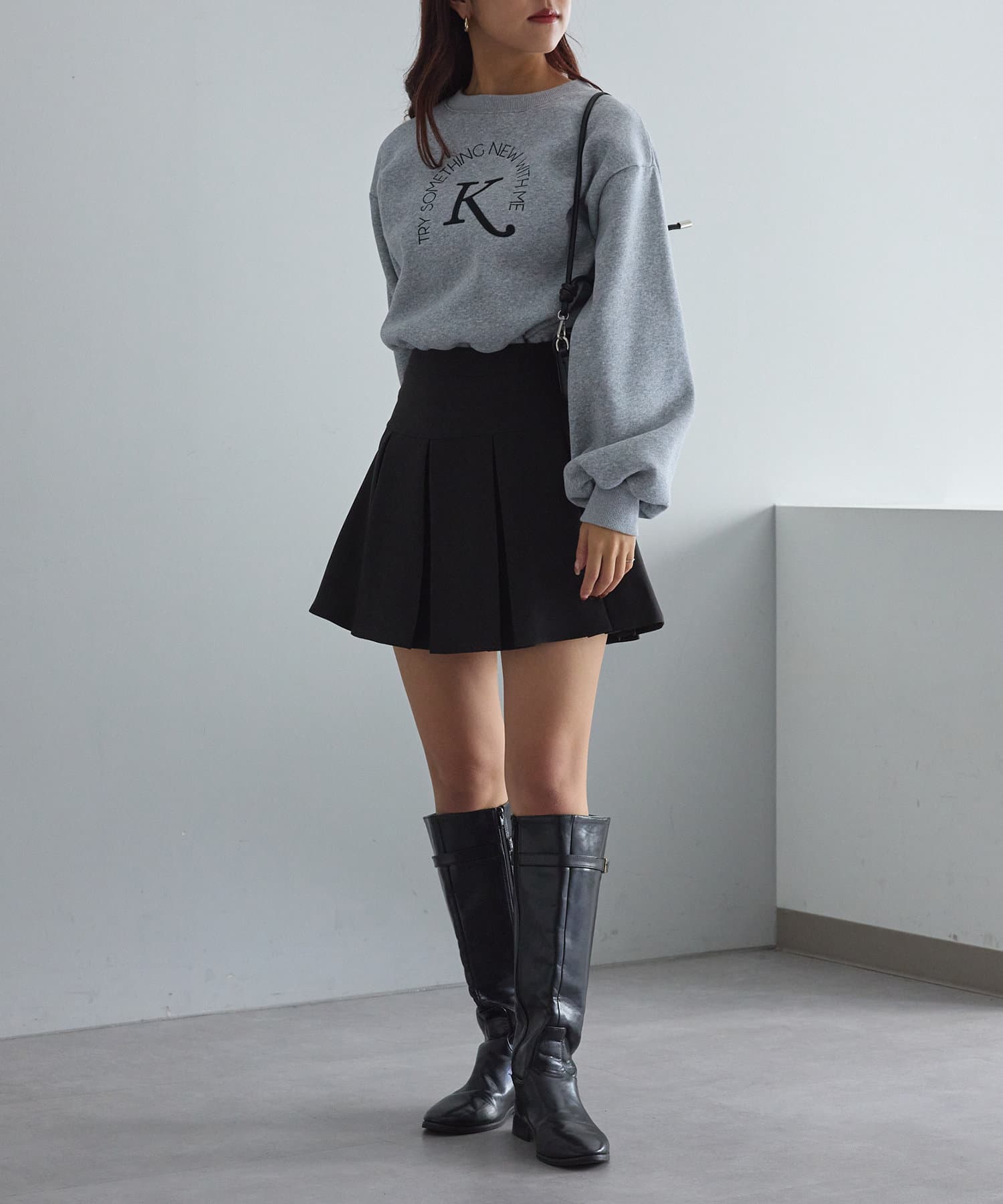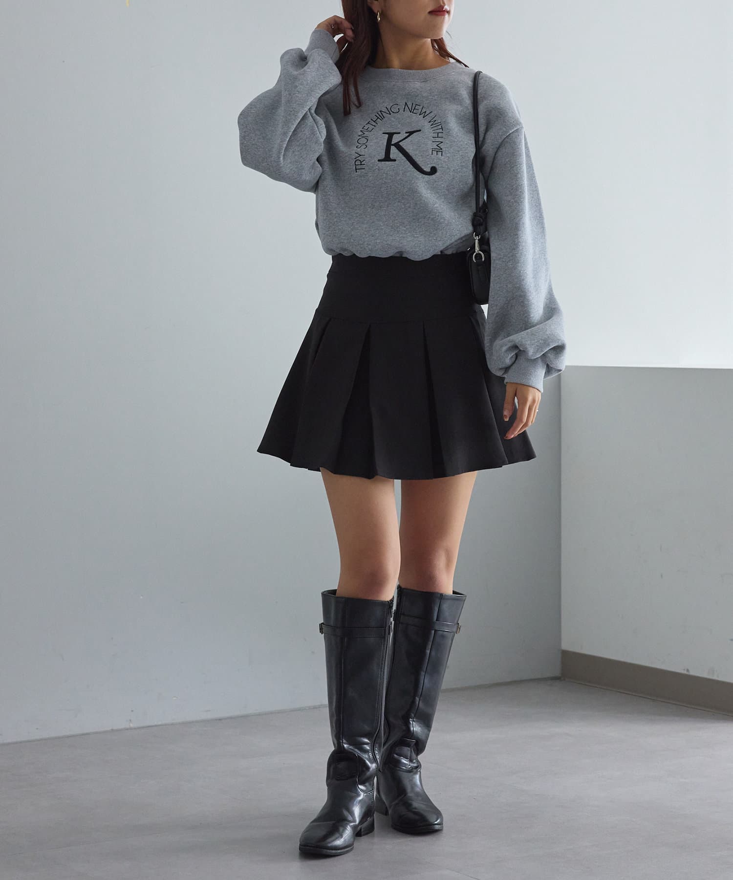 ・ハイウエストアイテムなので、ショート丈でまとめるとバランス良いコーデになります