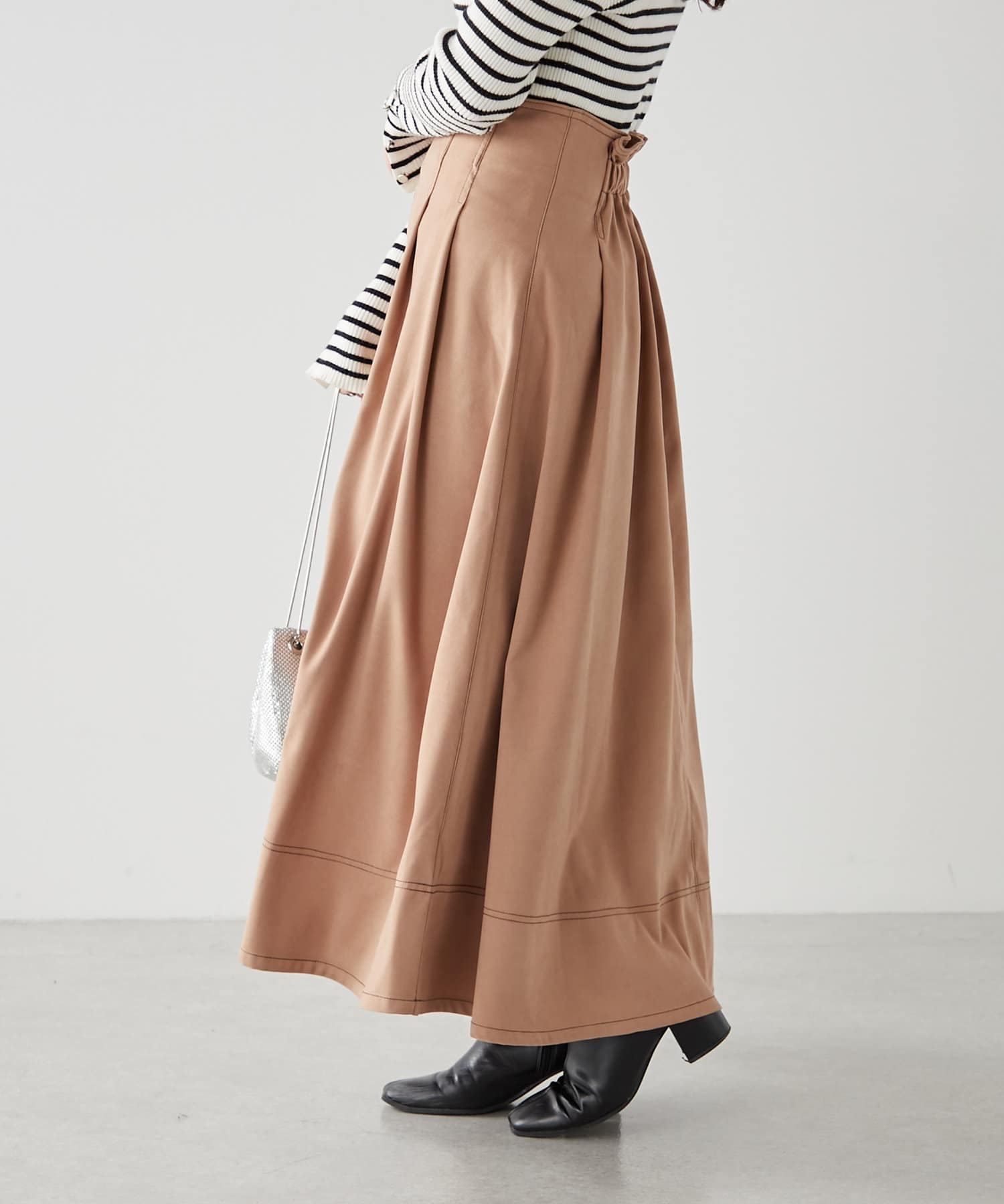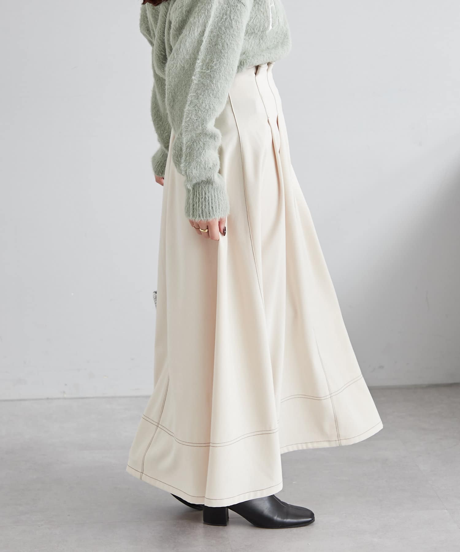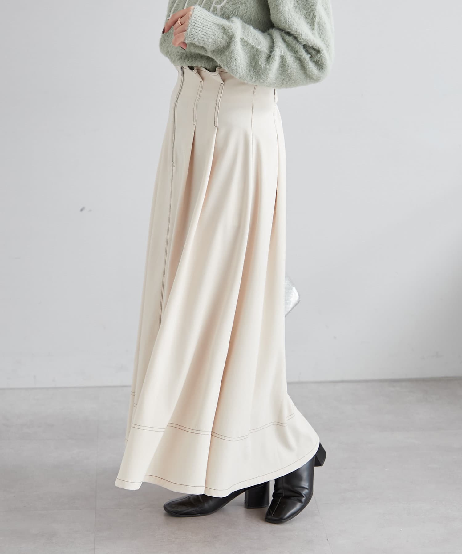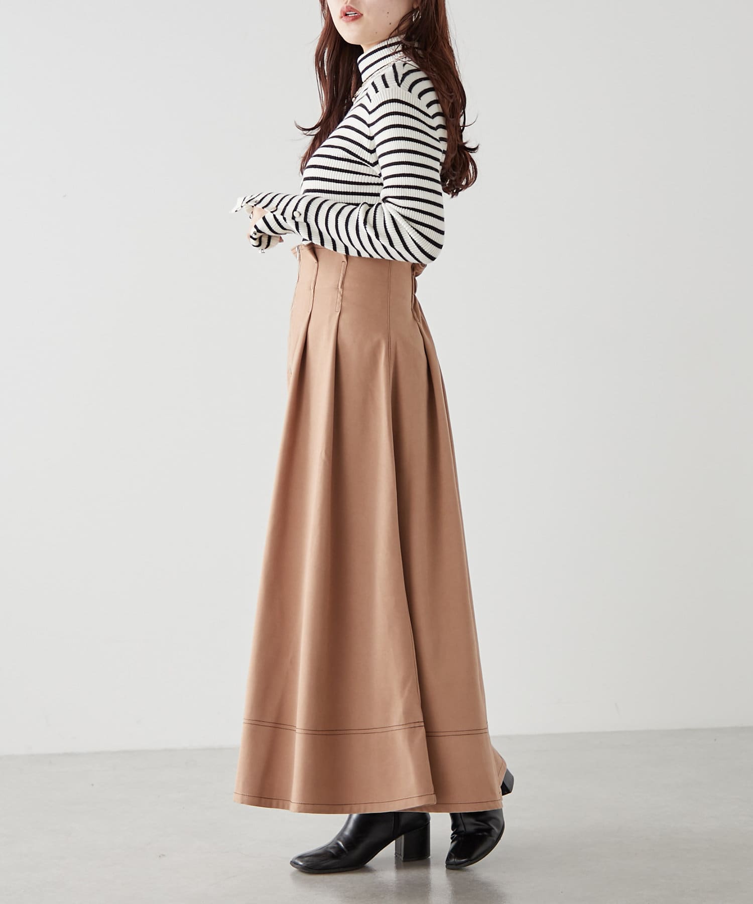 ・ウエスト部分にタックを入れたロング丈のフレアスカート