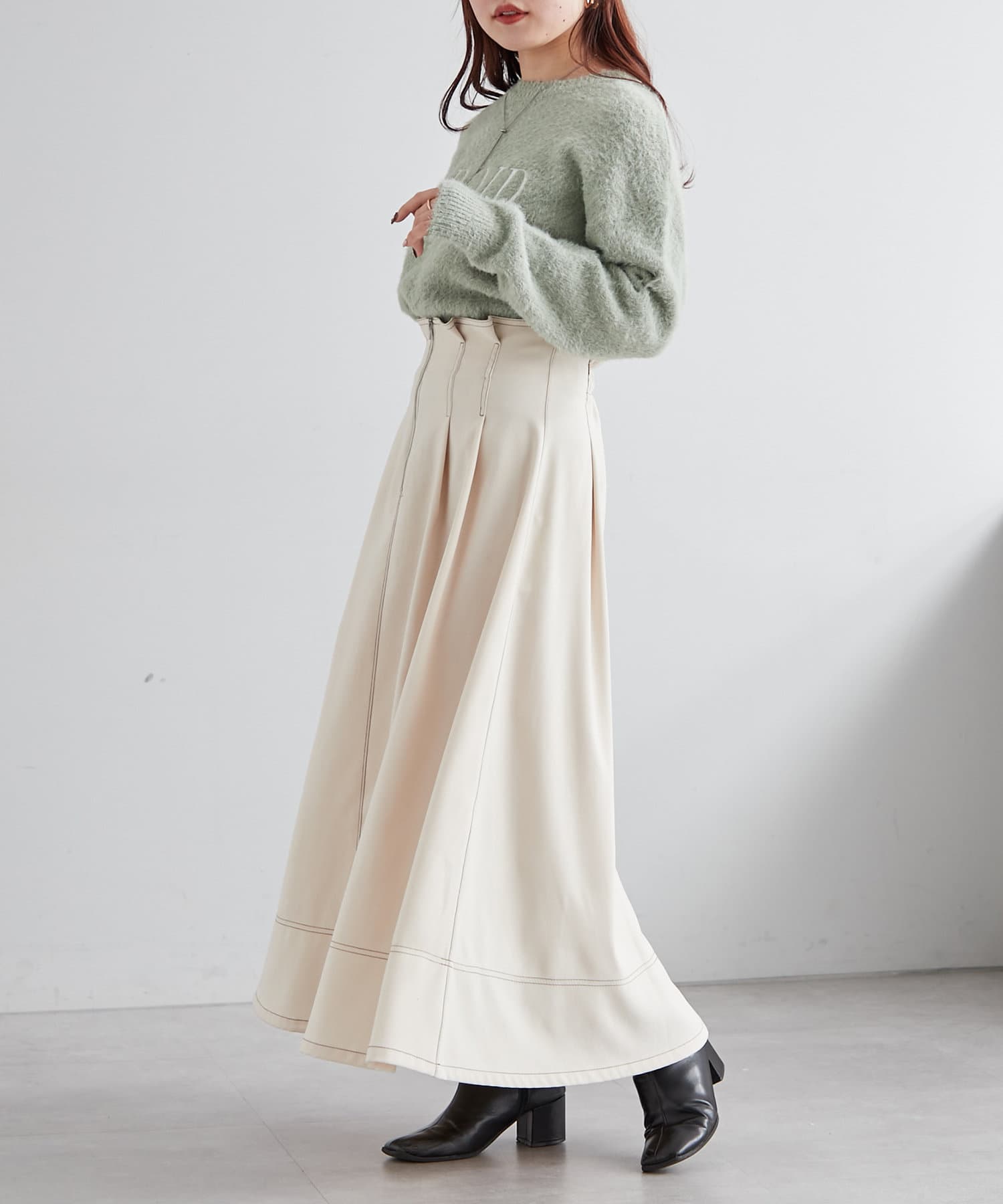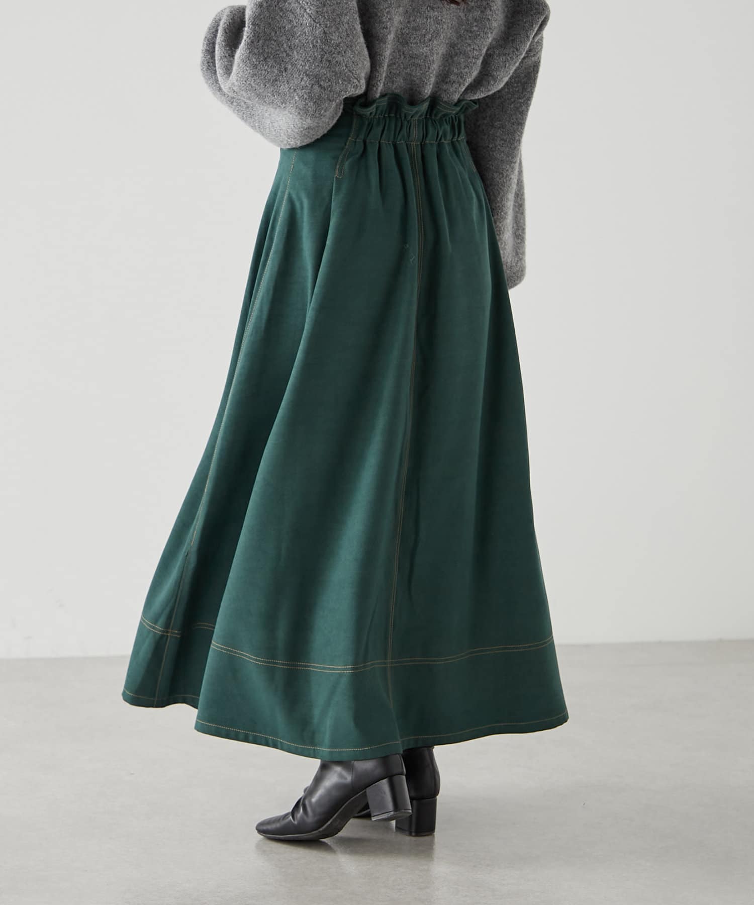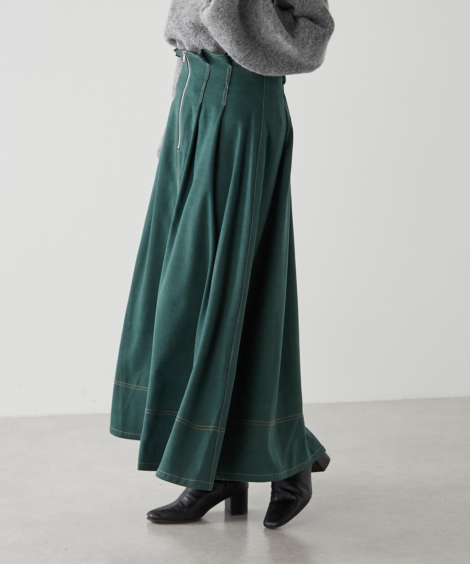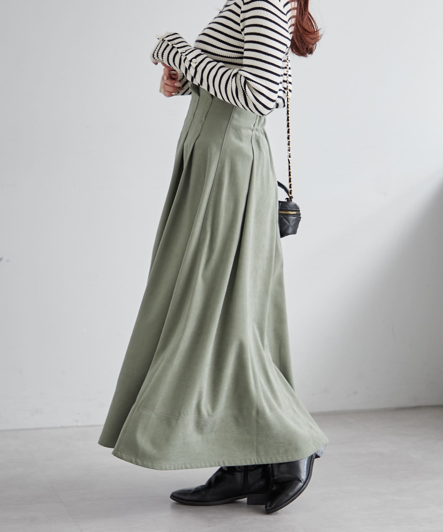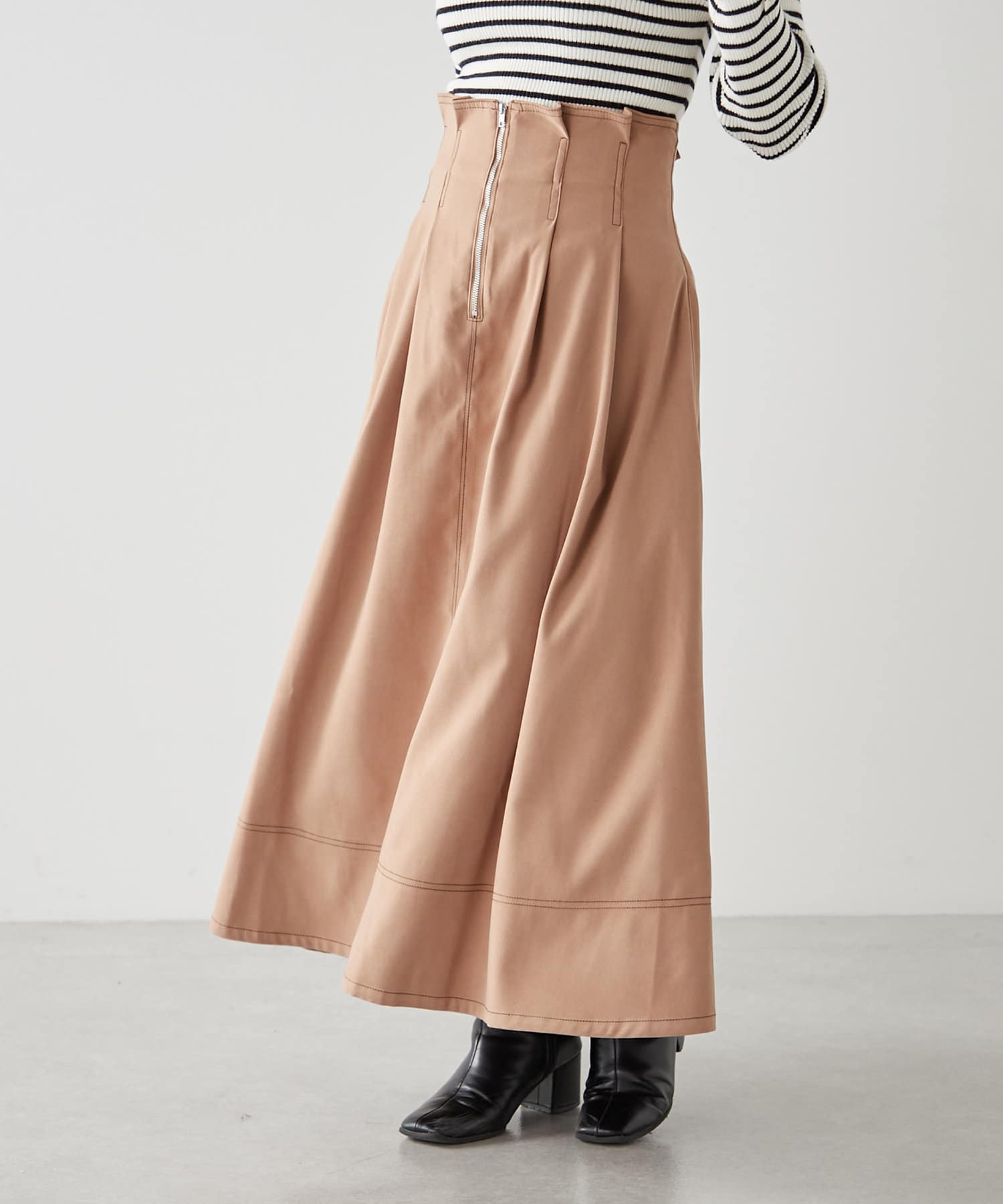 ・ウエスト部分にタックを入れたロング丈のフレアスカート