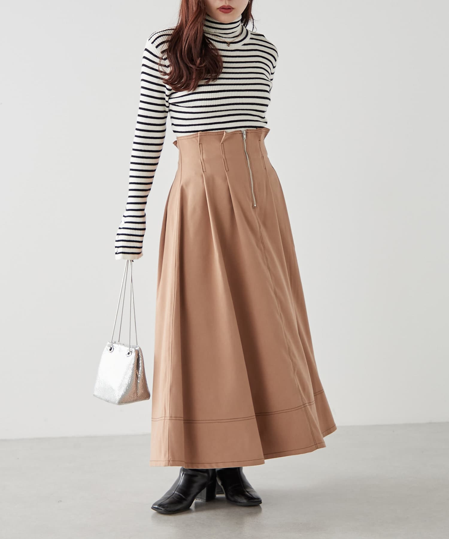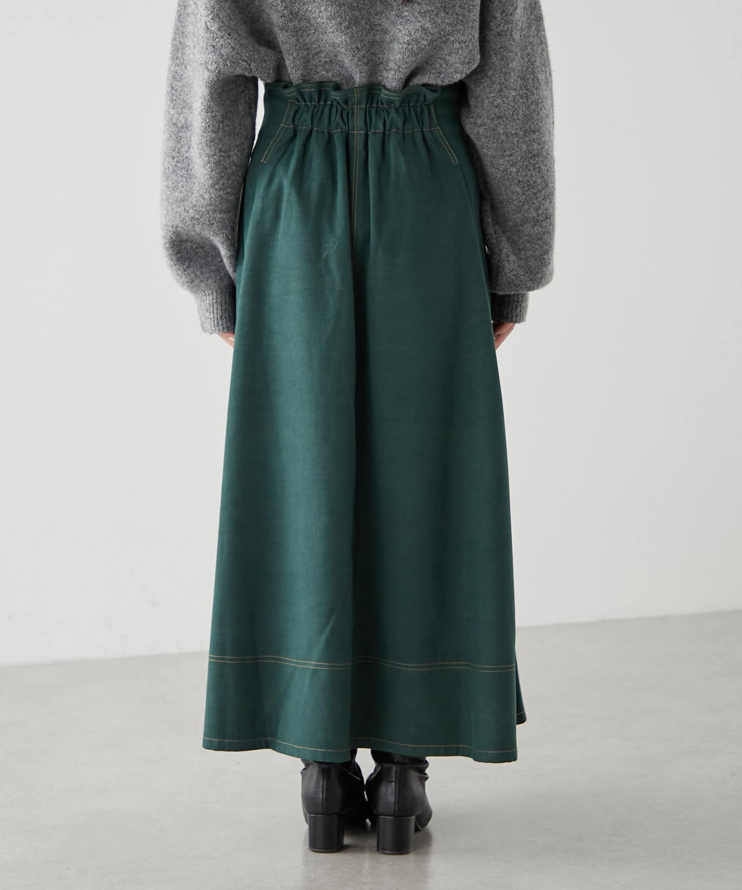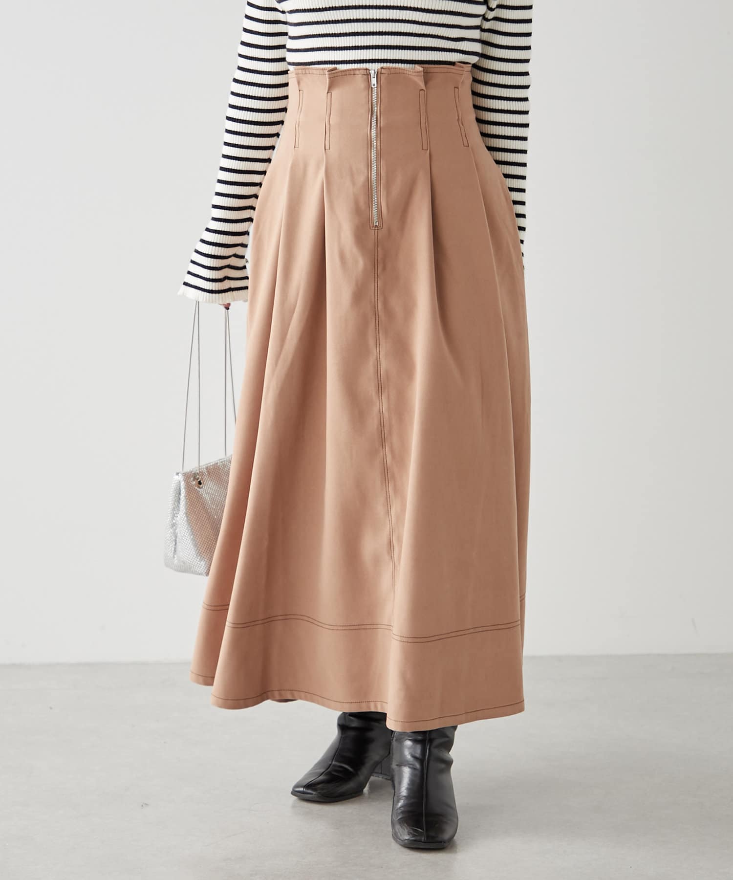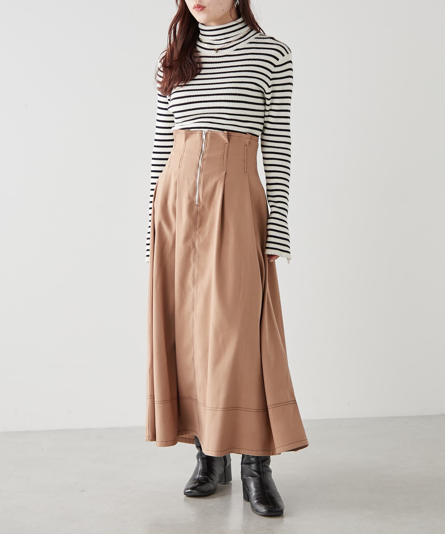 ・ウエスト部分にタックを入れたロング丈のフレアスカート