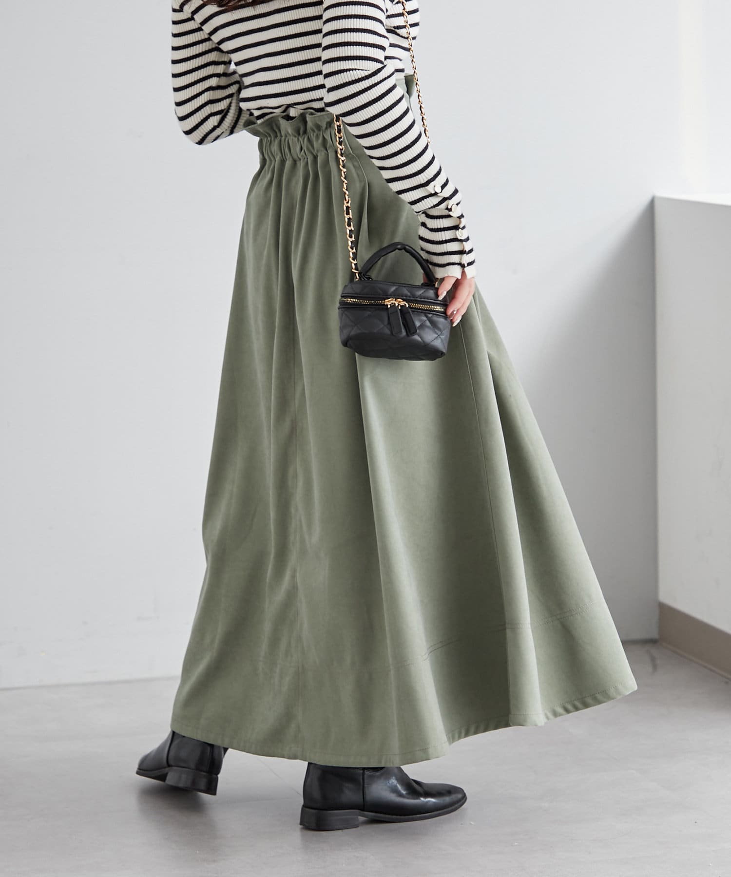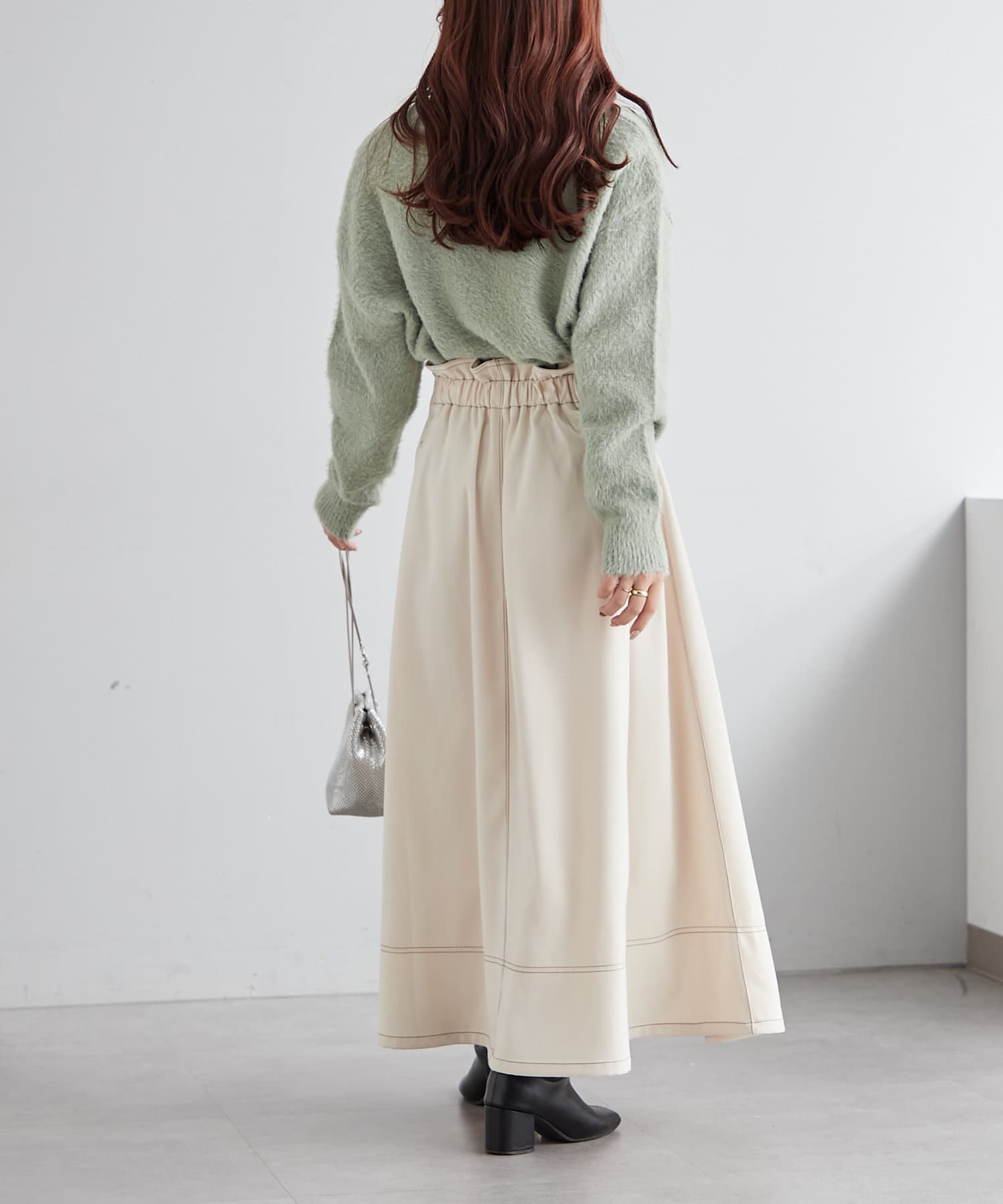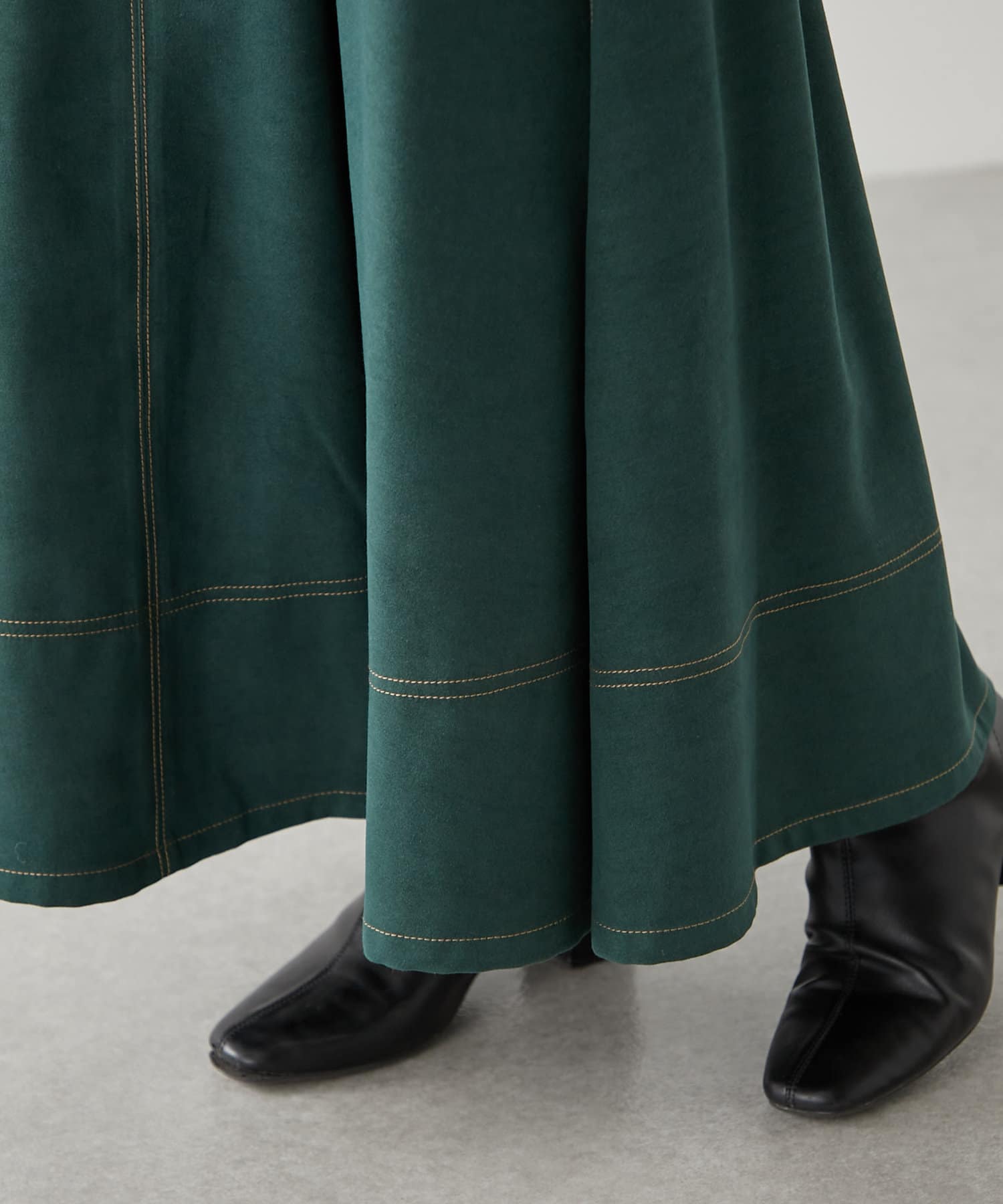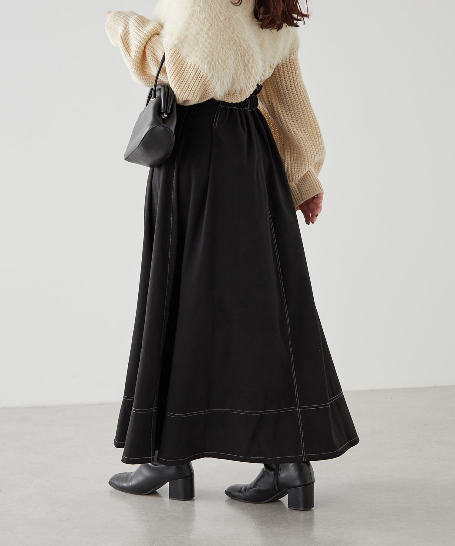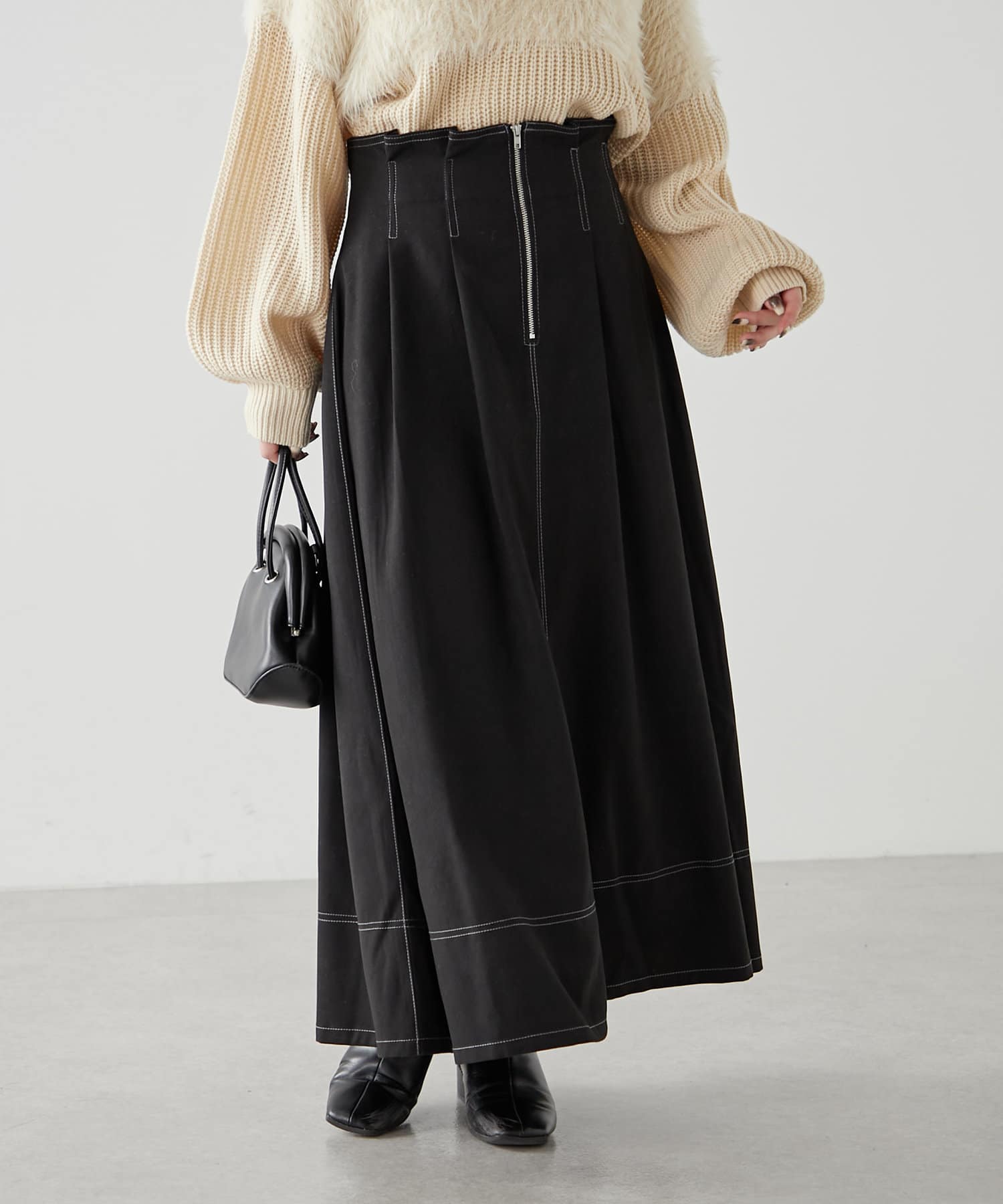 ・ウエスト部分にタックを入れたロング丈のフレアスカート