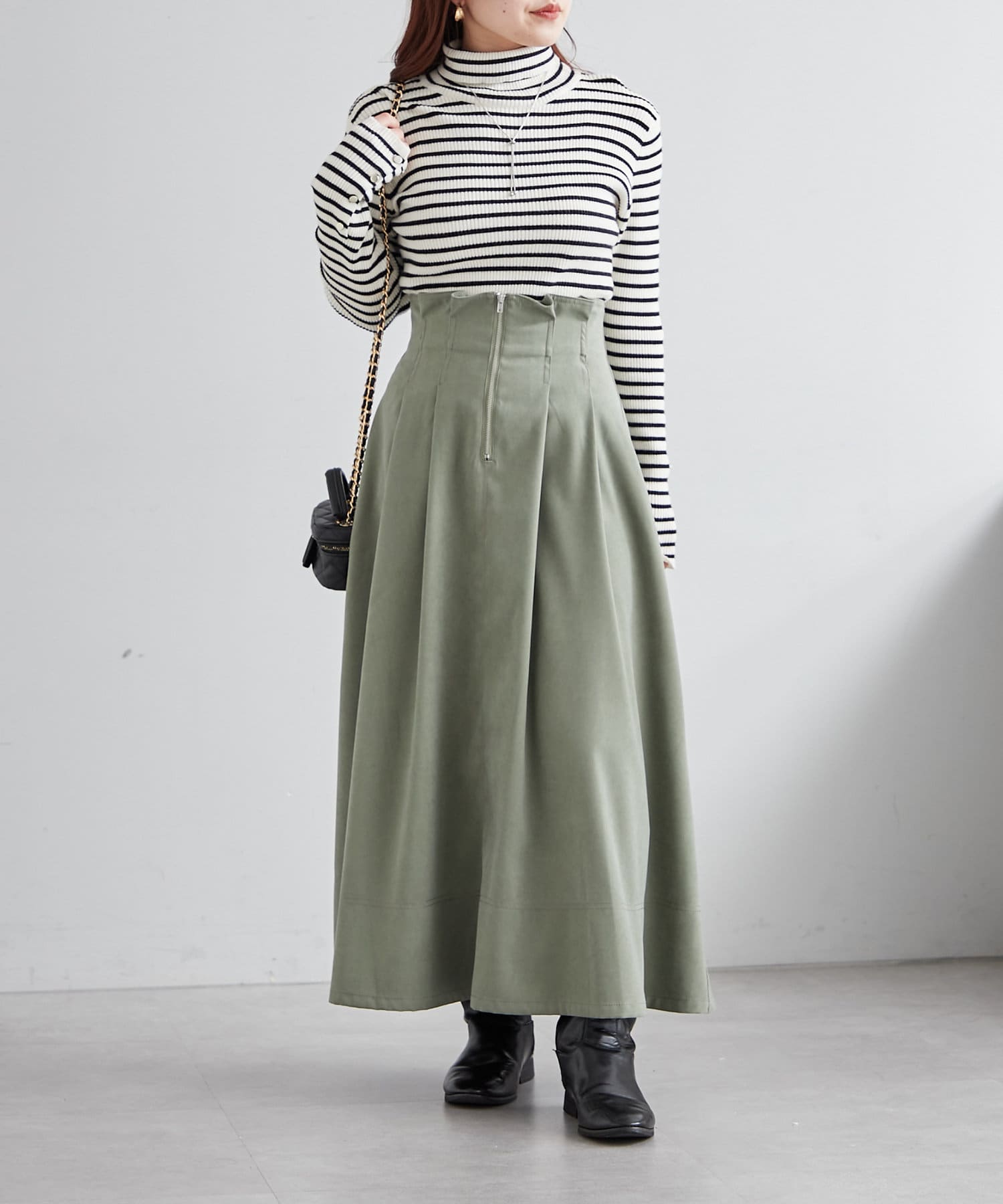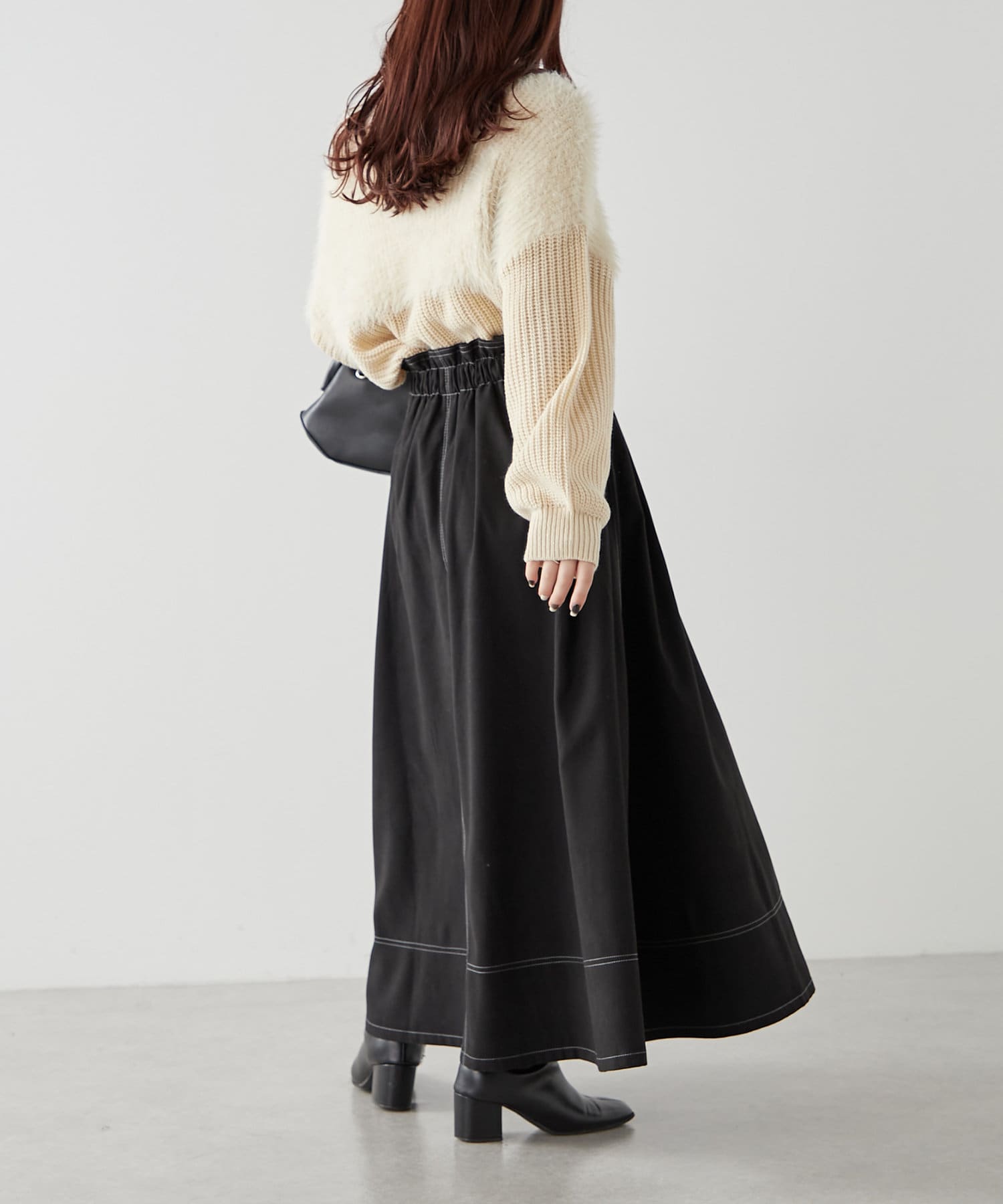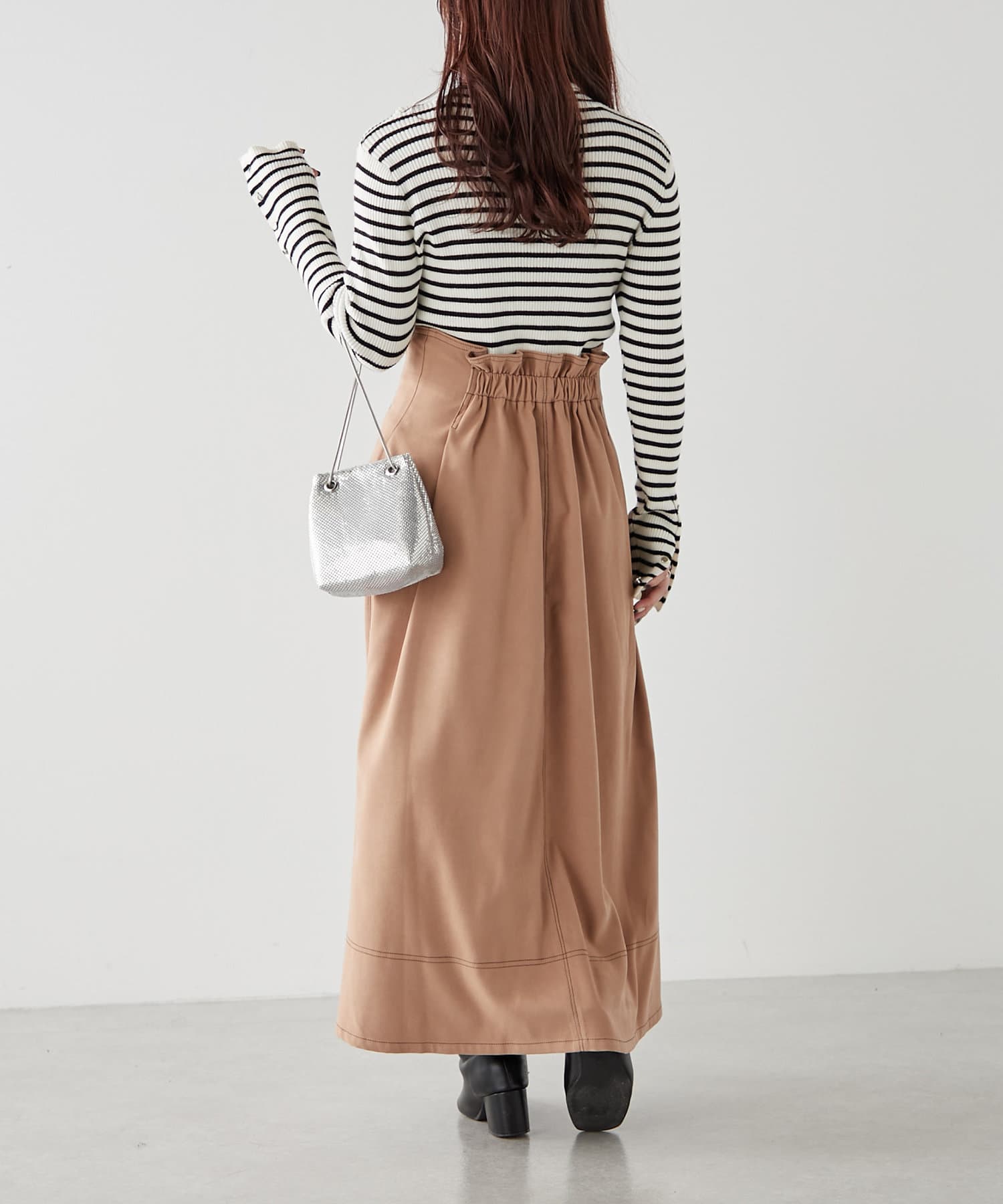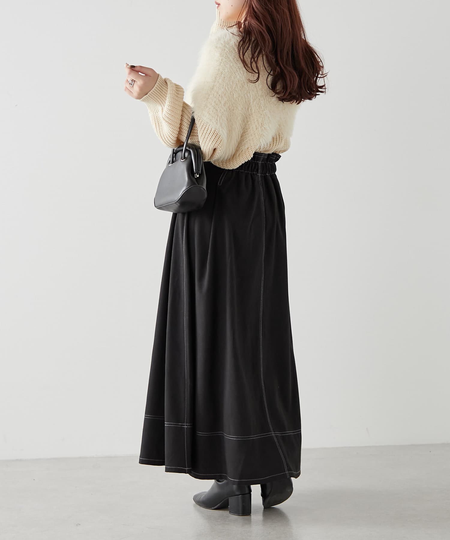 ・ウエスト部分にタックを入れたロング丈のフレアスカート