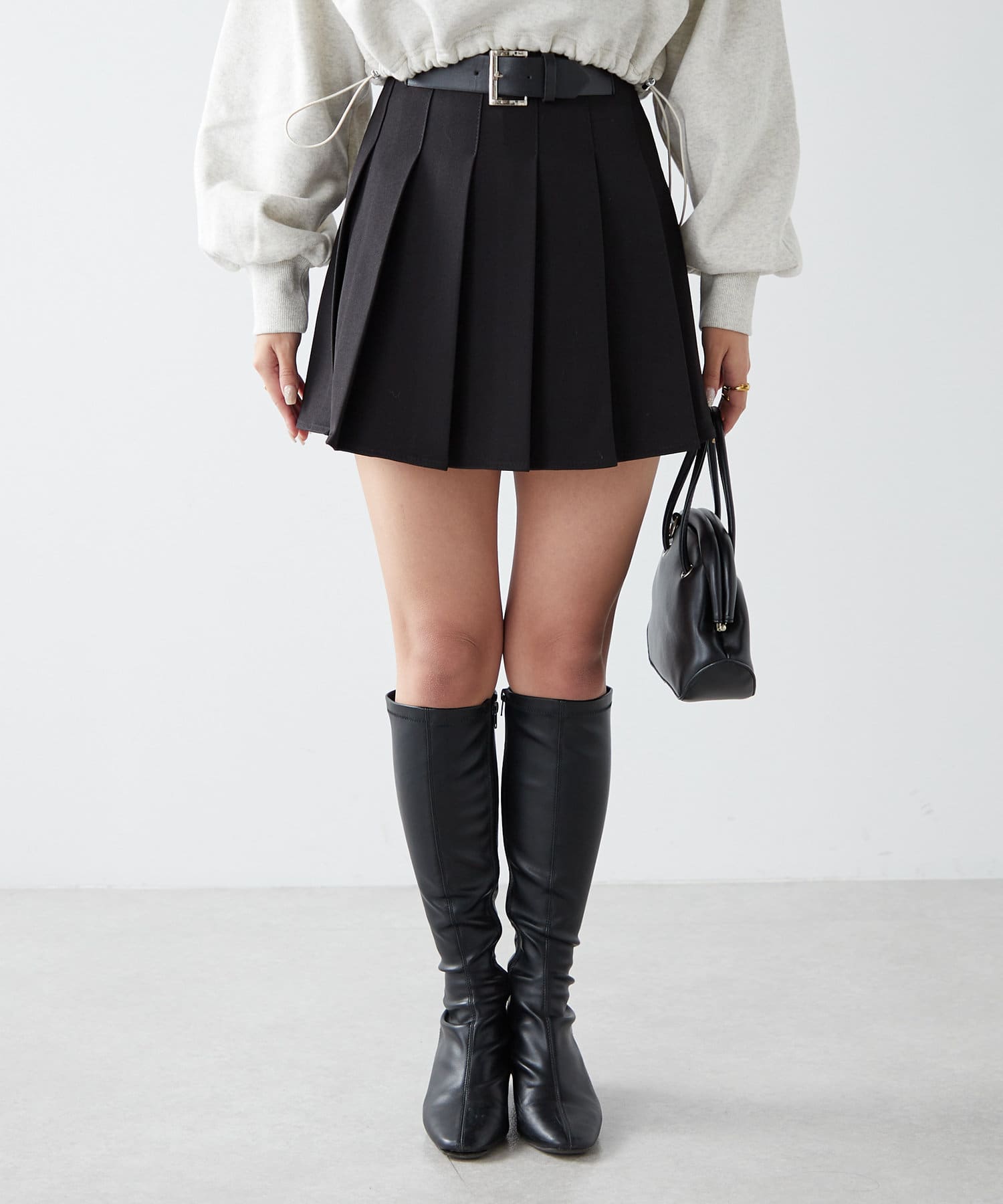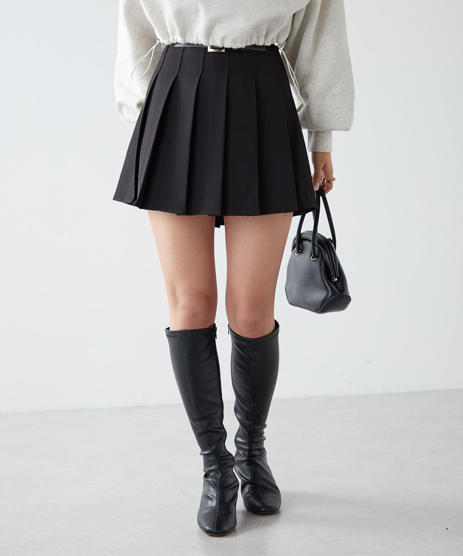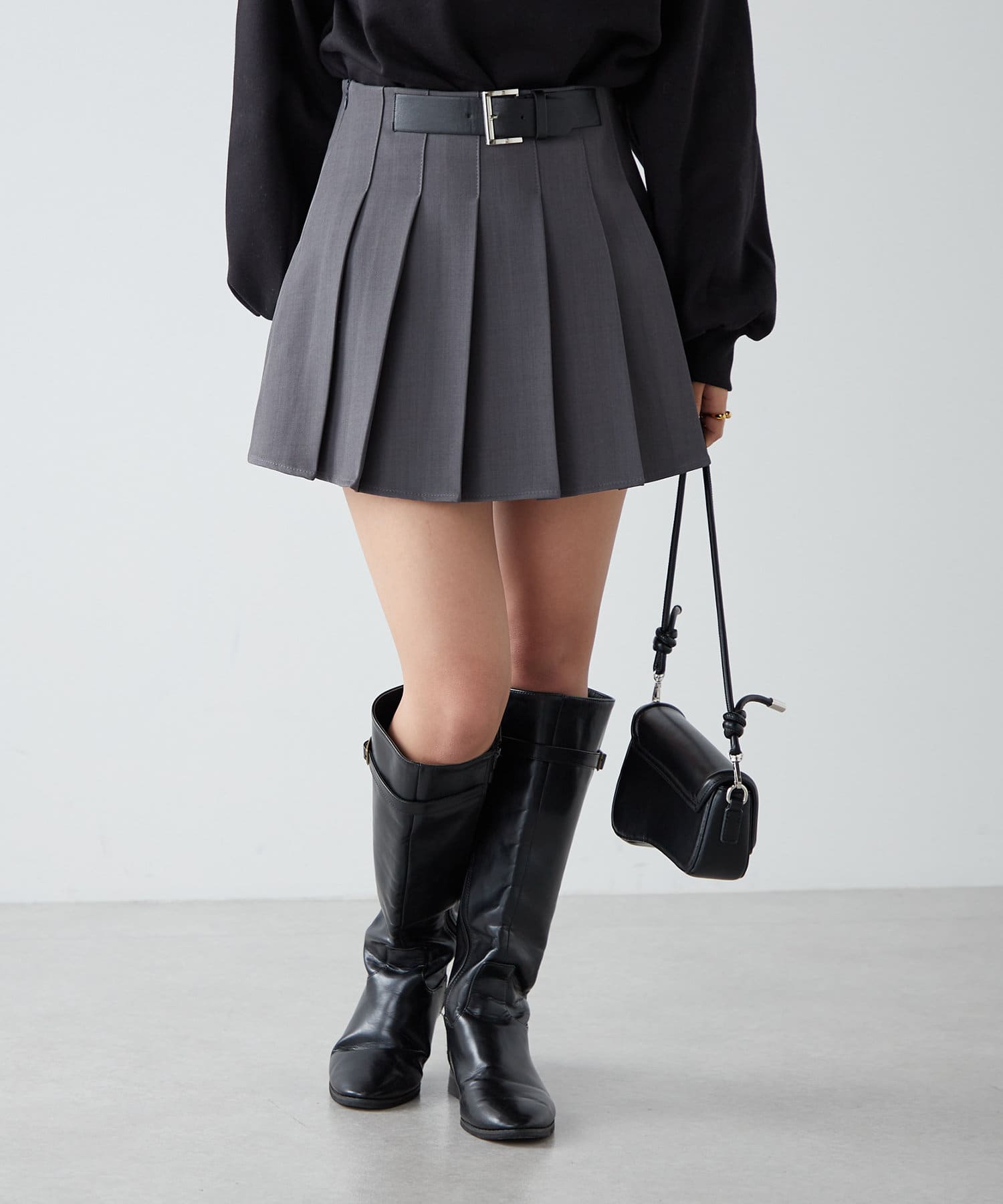 ・太めのベルトでウエストマークすることでスタイルアップ効果◎