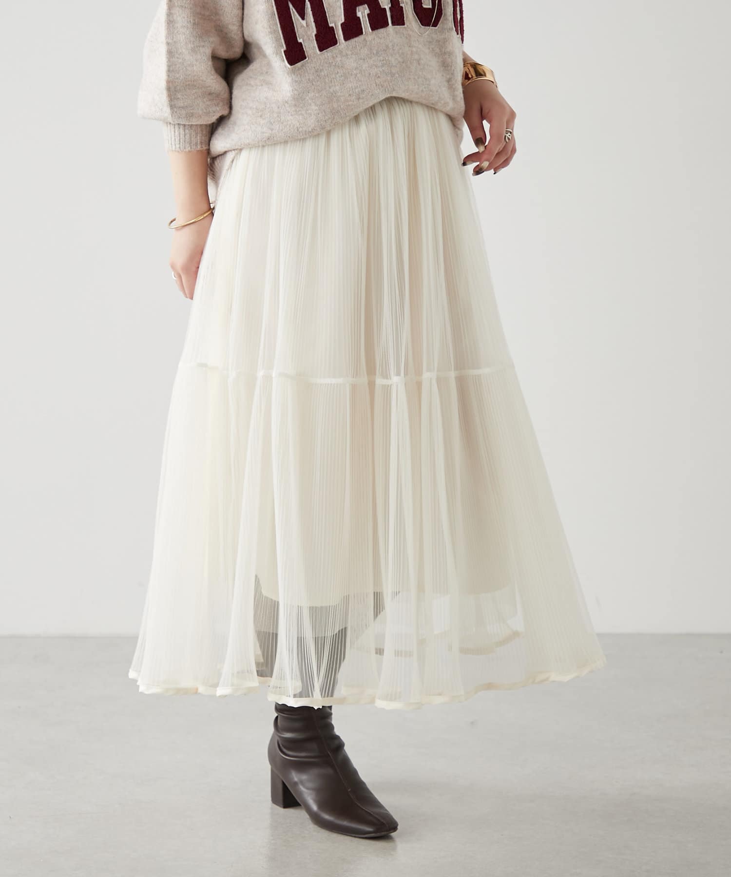 ・ボウタイブラウスと組み合わせれば、フェミニンなお出かけコーデに