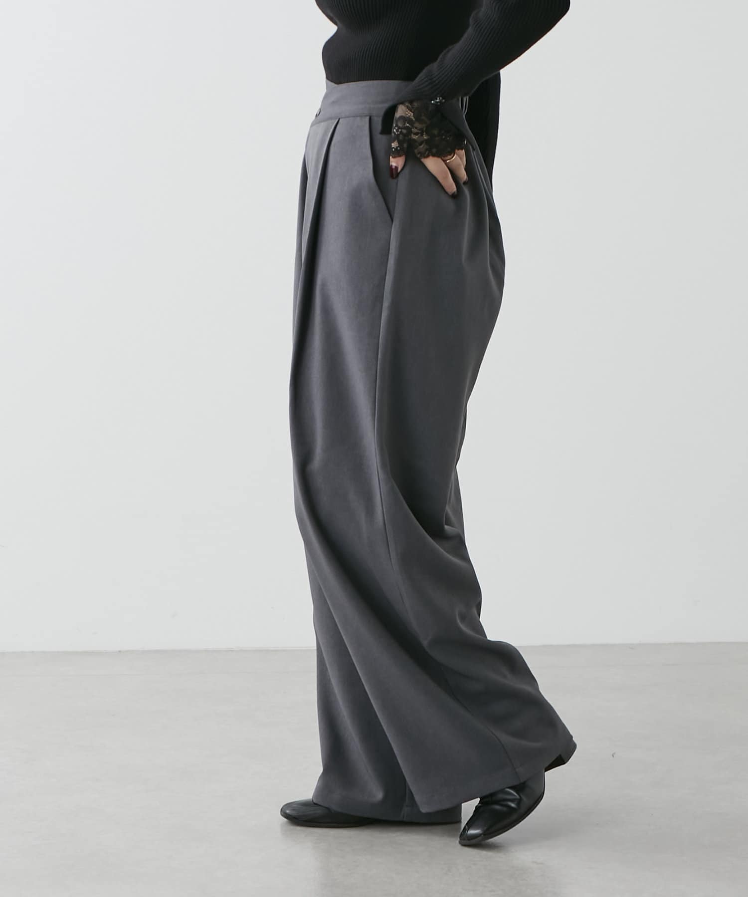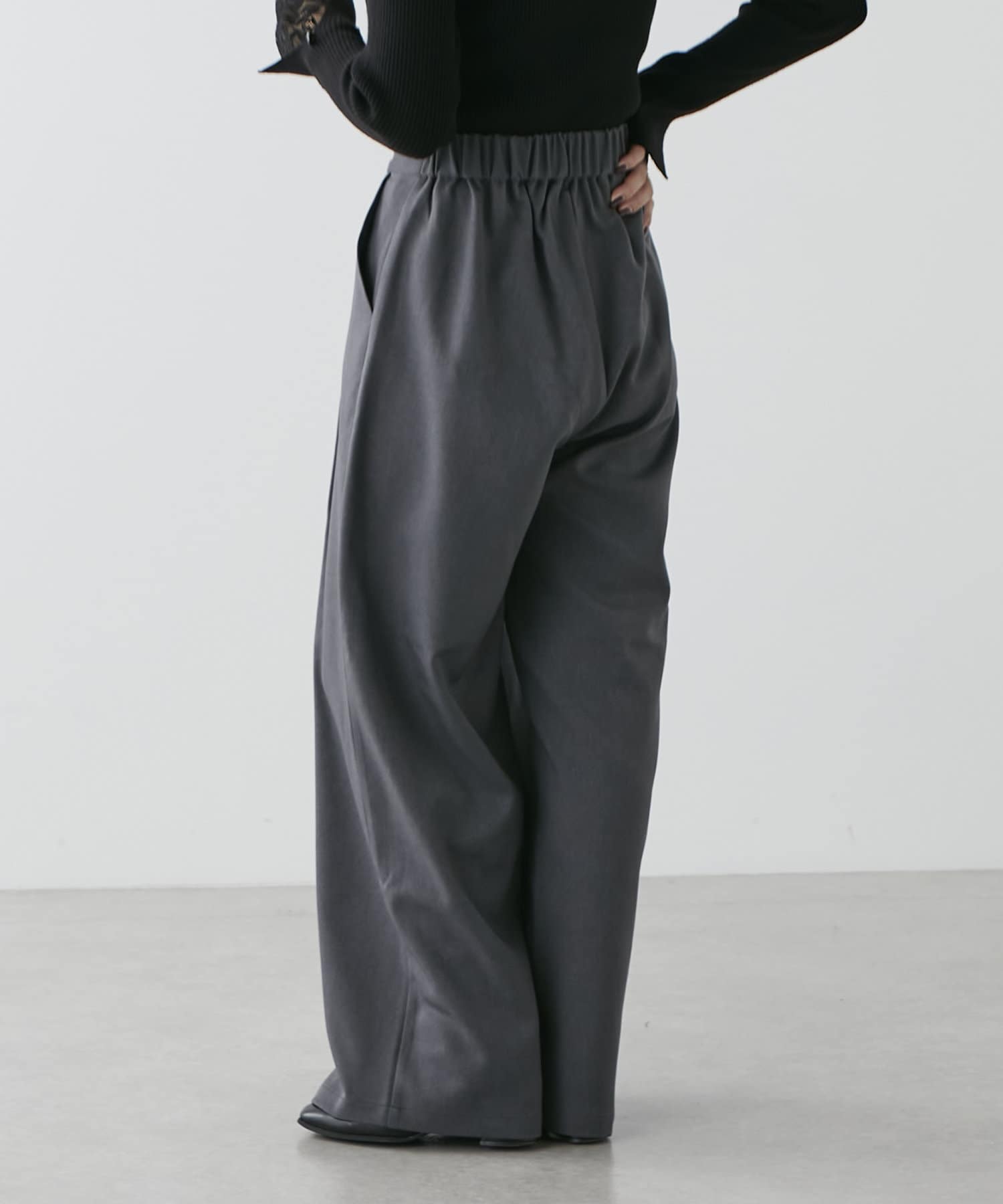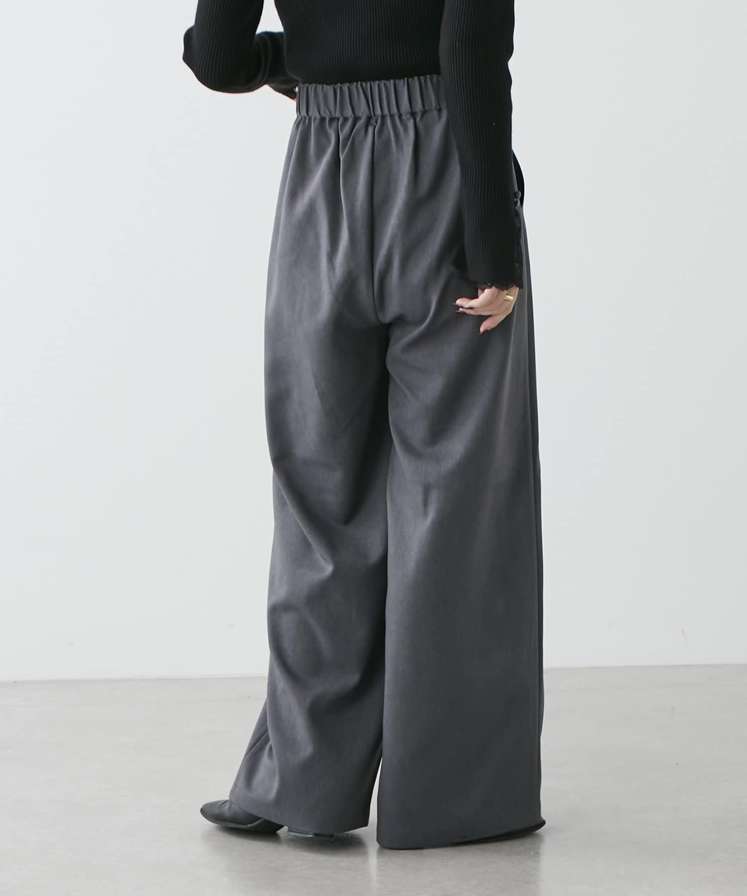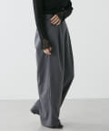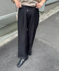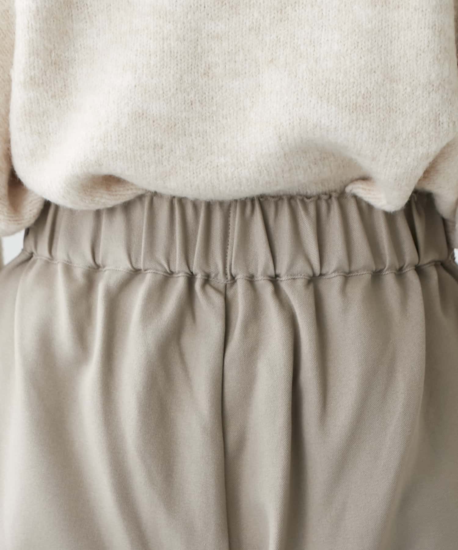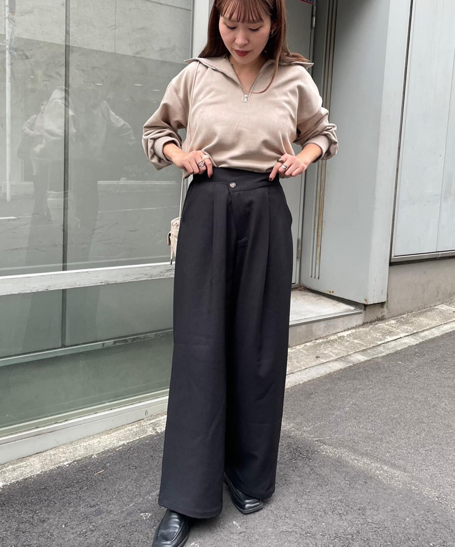 ・ウエストにアシンメトリーデザインが施されたパンツ。