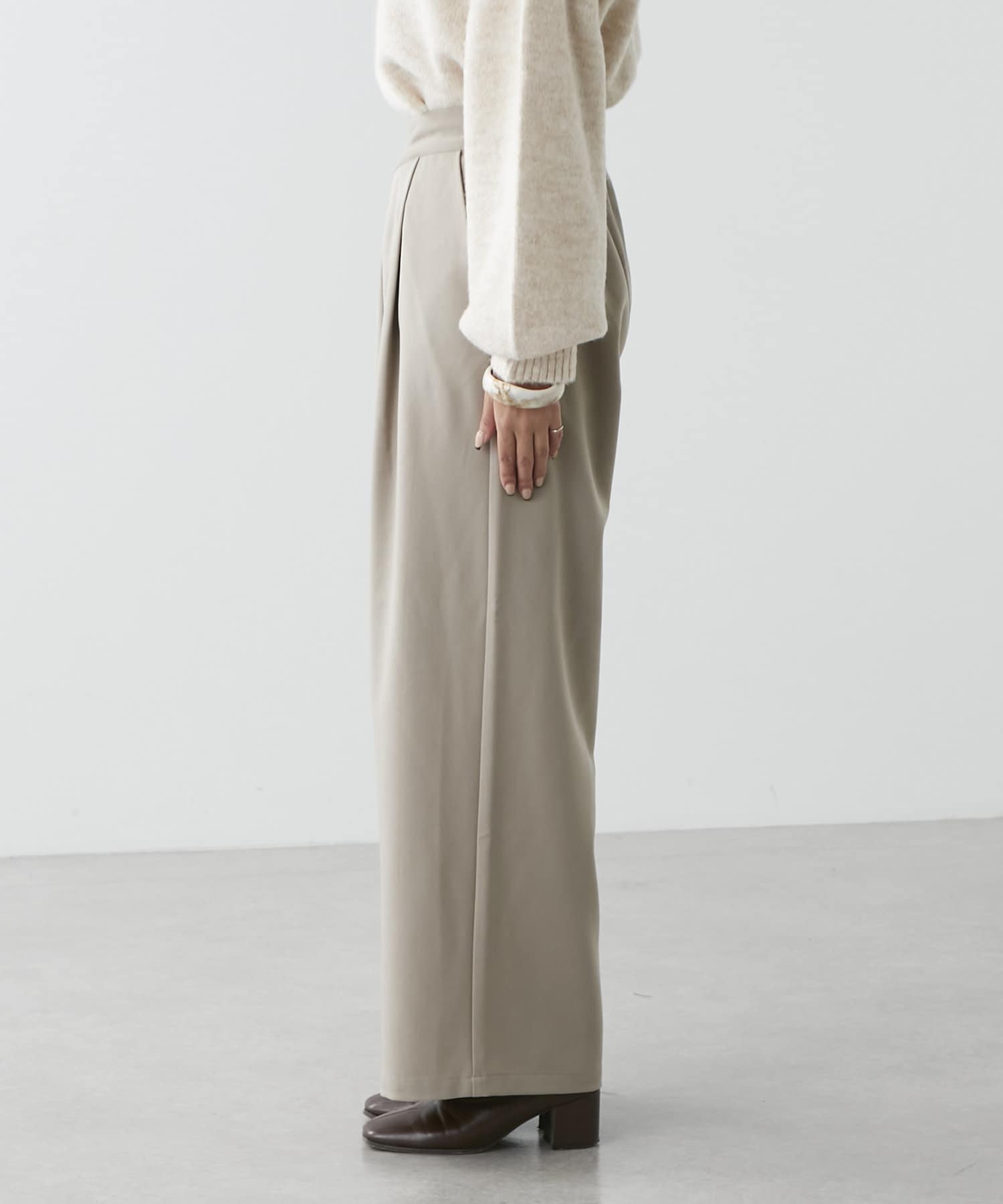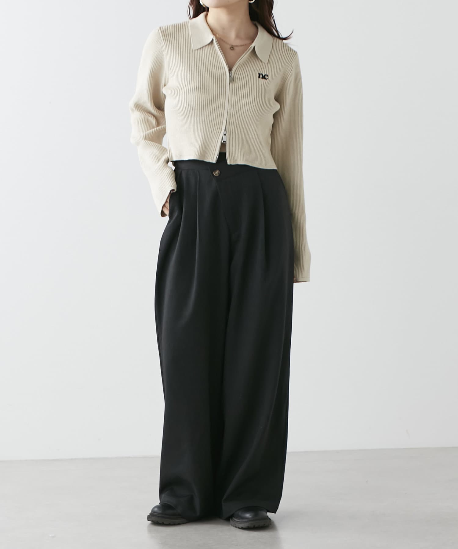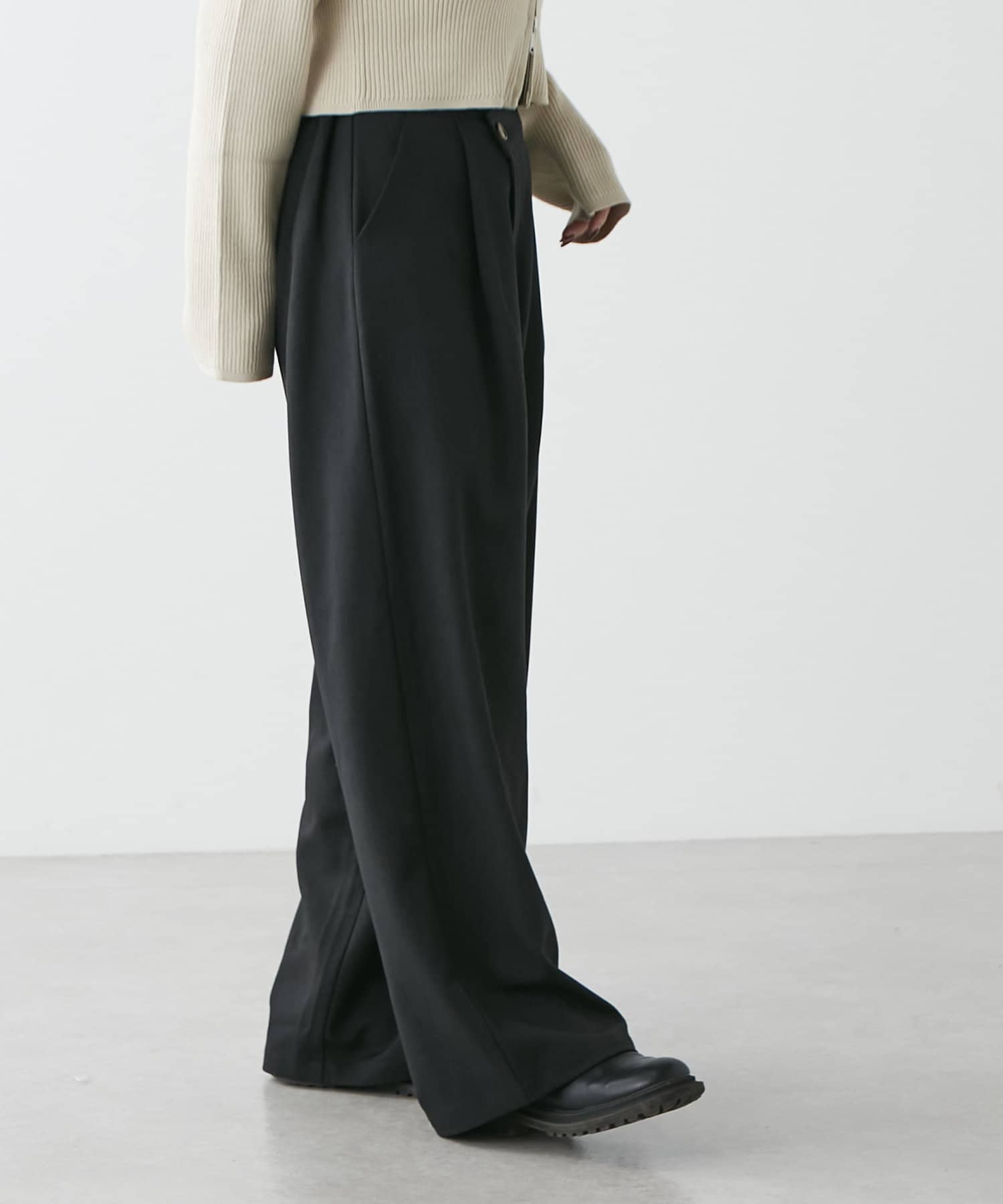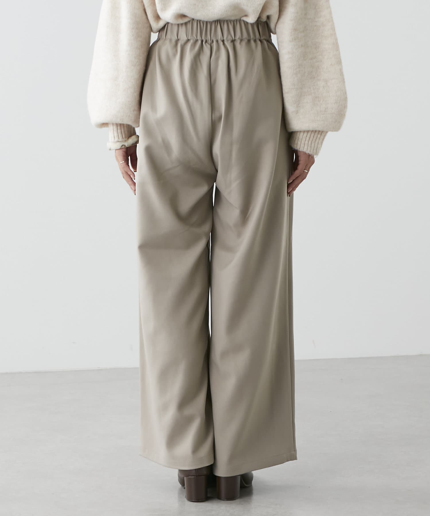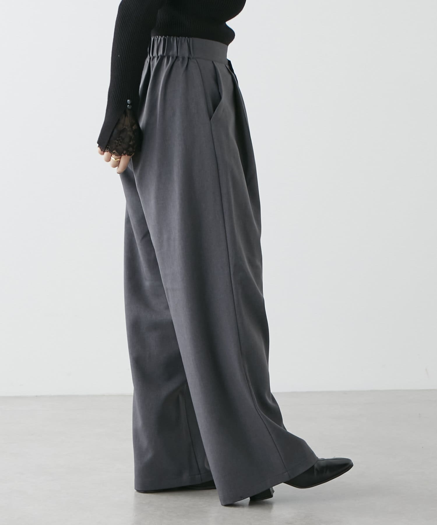 ・ウエストにアシンメトリーデザインが施されたパンツ。