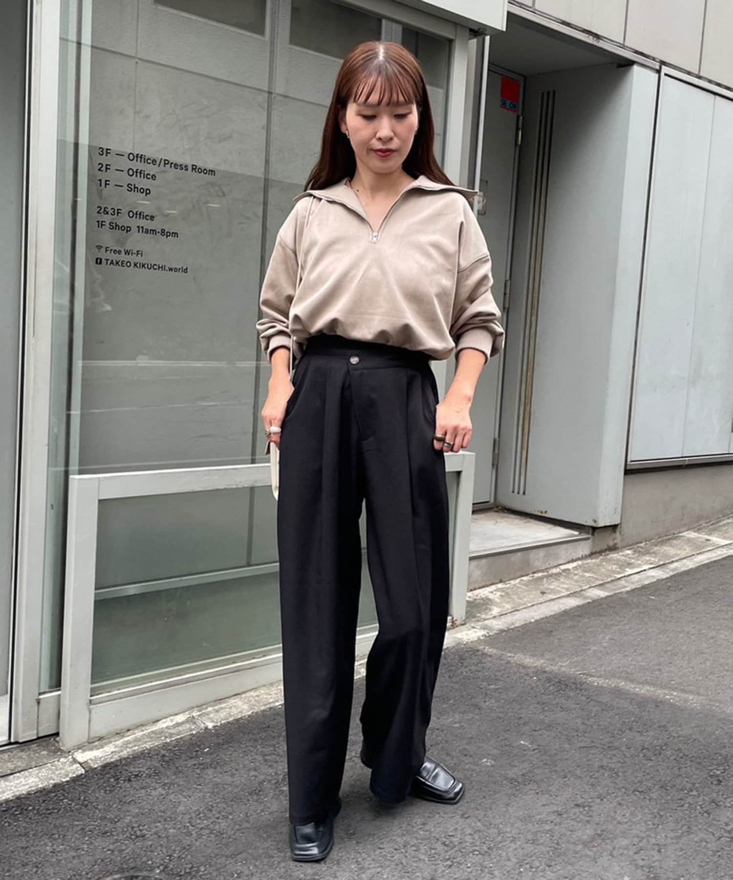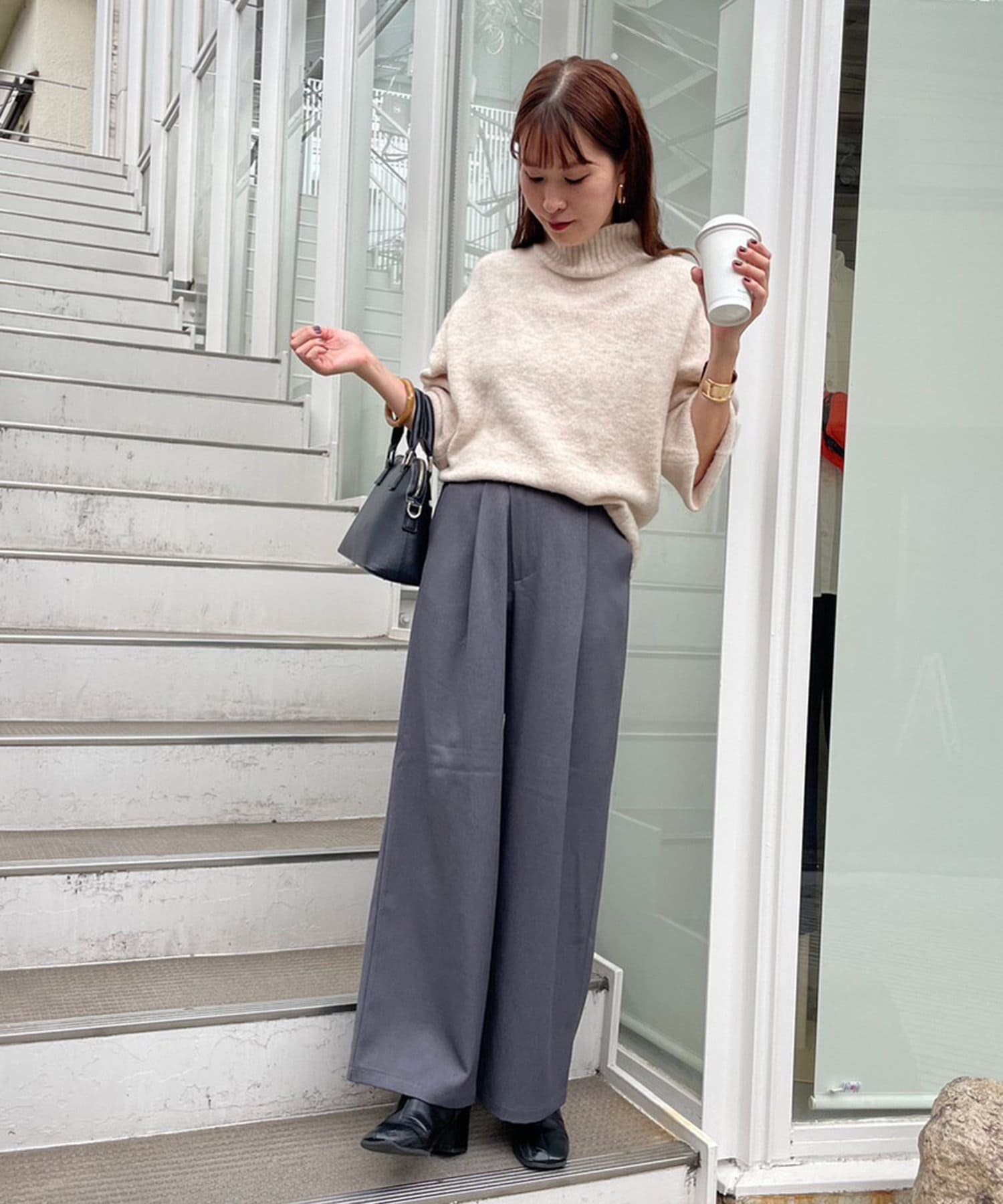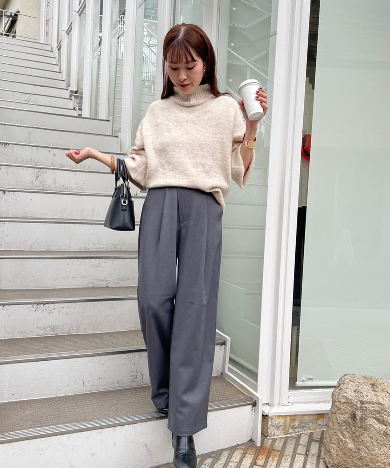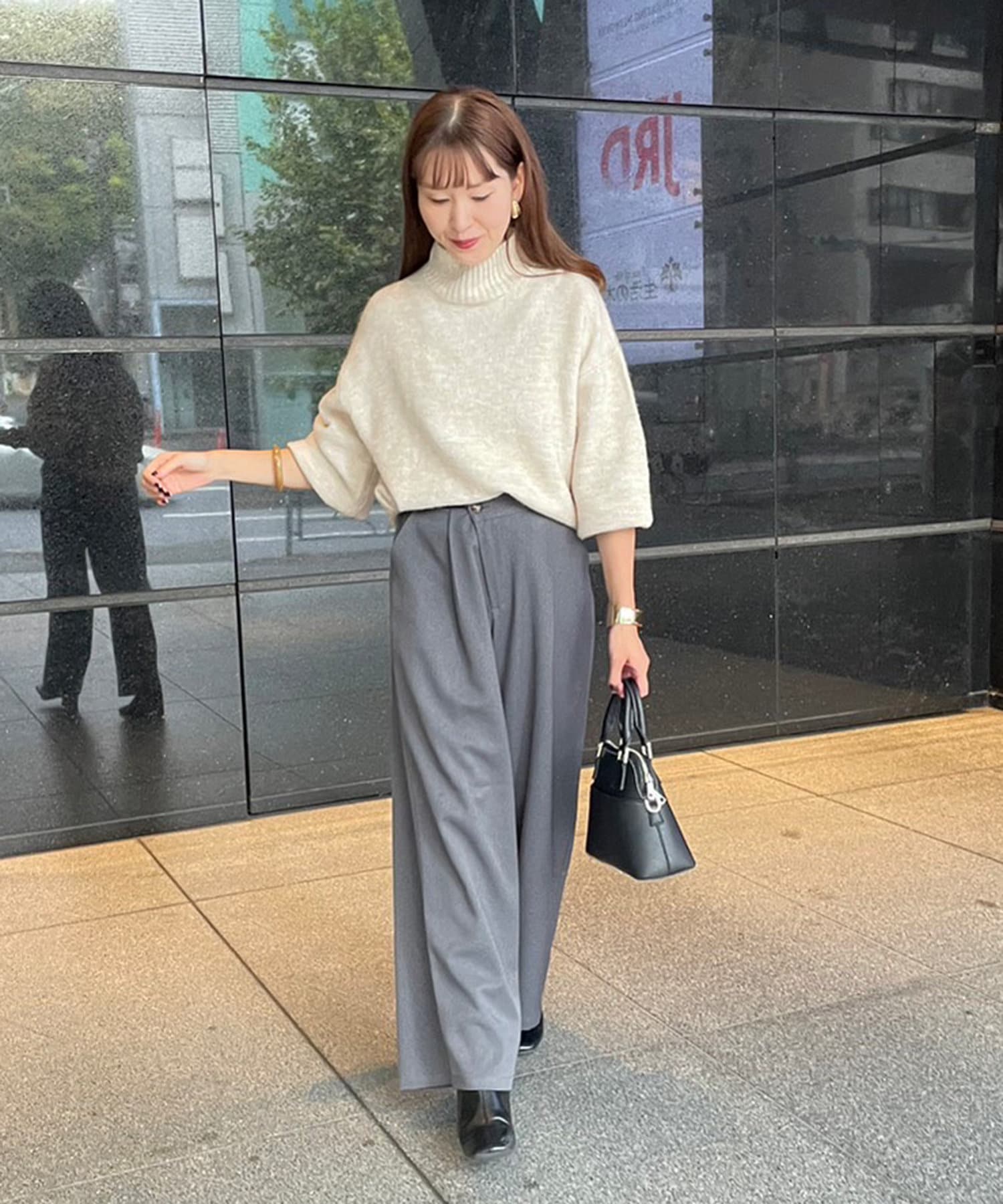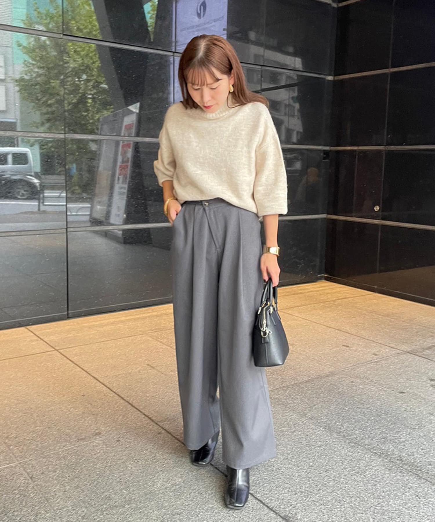 ・タイトめなトップスニットと合わせてオフィスカジュアルスタイリングも叶います。